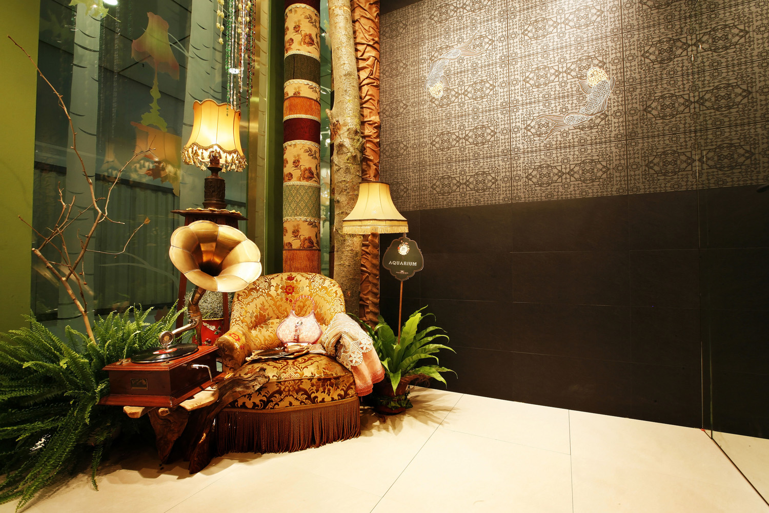 Un angolo di relax nella zona Samsara, arricchita dall’inserto Aquarium. Il vecchio grammofono, acquistato come non funzionante, ma forse rivitalizzato dall’atmosfera familiare, ha sorprendentemente risposto positivamente ai tentativi di utilizzo da parte di qualche visitatore particolarmente intraprendente, gracchiando qualche nota di un vecchio disco di chansonnier francesi.