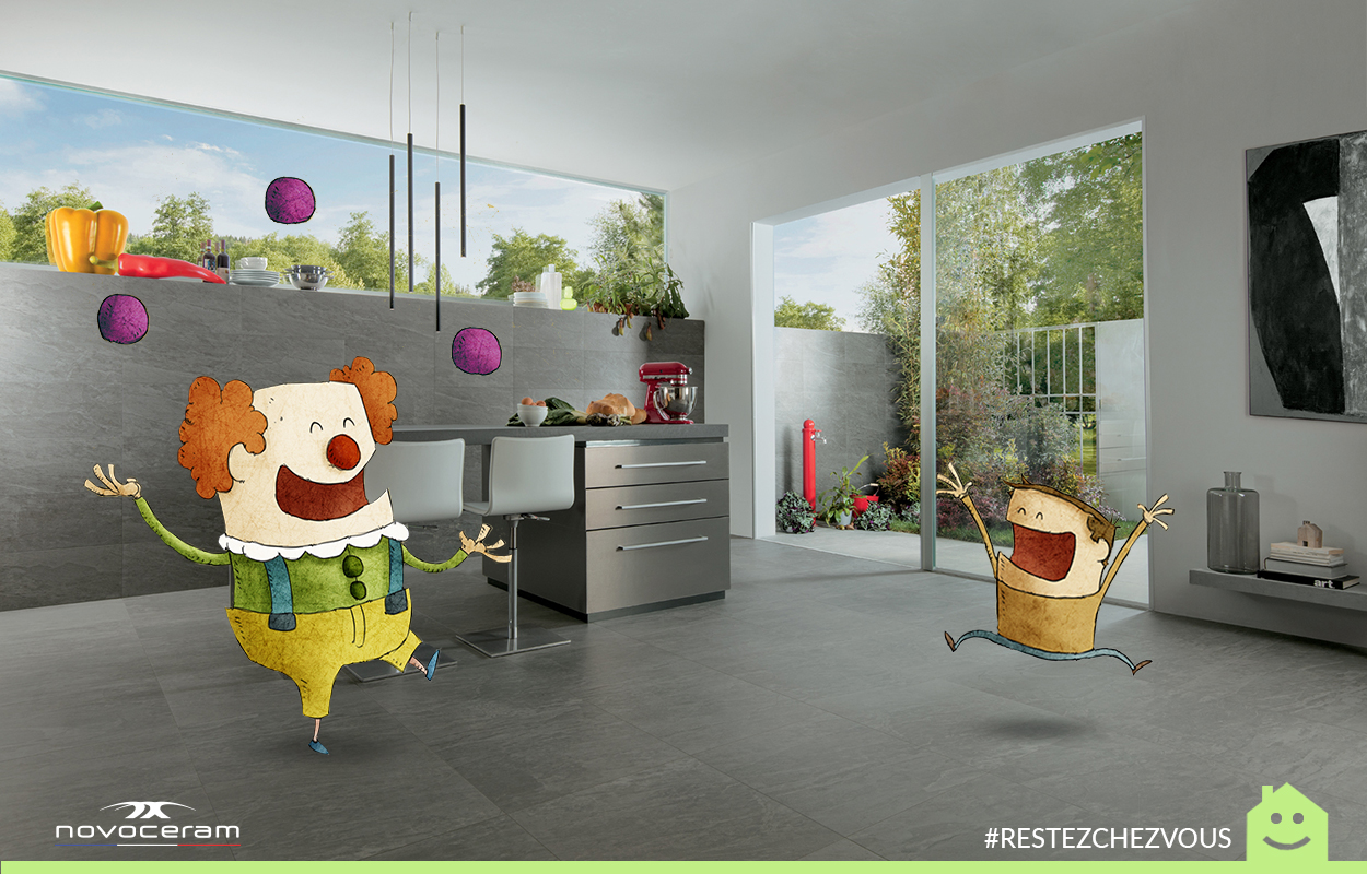é giunto il momento di mettersi in gioco e tirare fuori tutta la creatività per trovare ogni giorno nuove idee per tenere occupati i più piccini. Qualche idea? Create un percorso di boot camp in soggiorno con la regola di seguire le fughe delle piastrelle… Finirete per rimpiangere di non avere scelto delle piastrelle di piccolo formato… perché chi dice piastrelle di grande formato, dice pavimento con meno fughe! Oppure fate loro disegnare il gioco della settimana sulle piastrelle del terrazzo, in sala o nel corridoio… niante paura! Le piastrelle si puliscono facilmente e in più… ecco trovata la prossima attività: facciamo le pulizie tutti insieme!