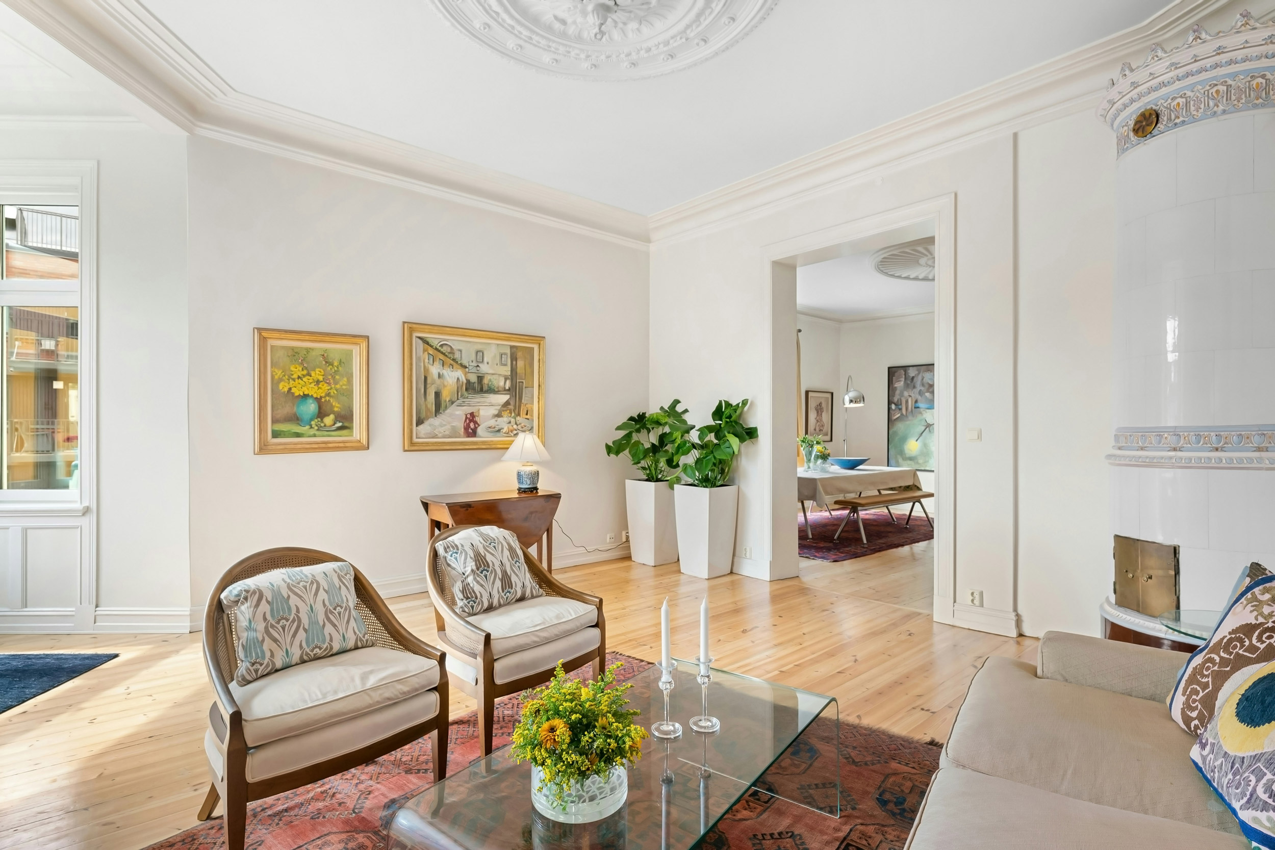 Le tende e i rivestimenti di poltrone e divani sono spesso realizzati con tessuti morbidi e raffinati, che creano un’atmosfera lussuosa ma confortevole.