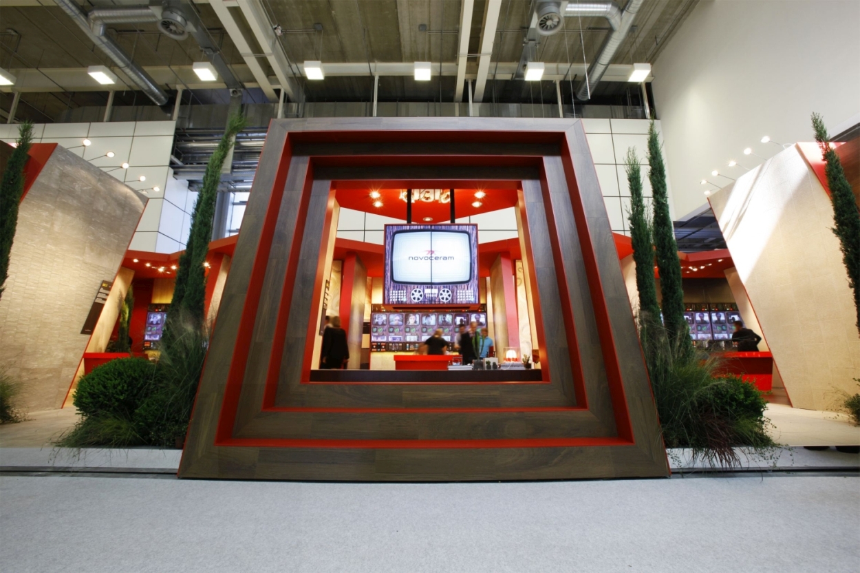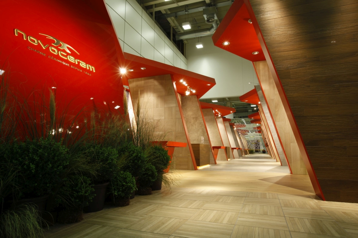Le immense pareti di separazione presentano in un bagno di luce la nuova collezione Icône, che reinventa, grazie alla più moderne tecnologie, le antiche pietre francesi. Dietro la reception, i visitatori hanno potuto ammirare il nuovo rivestimento Madras che interpreta la magia di una pietra indiana. Novoceram Outdoor plus, il nuovo sistema di posa sopraelevata, era presentato all’ingresso, accanto ad Alliance, l’ultimo gioiello della linea Novoceram Art.