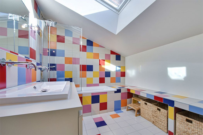Mescolare i formati delle piastrelle è una bella idea che permette di assicurare la continuità estetica degli spazi. Per esempio in bagno, la doccia può essere rivestita a pavimento con un mosaico mentre a parete possono essere posate piastrelle di grande formato rettangolare.