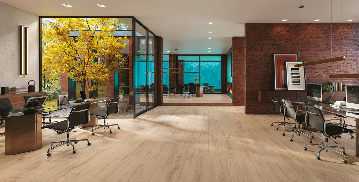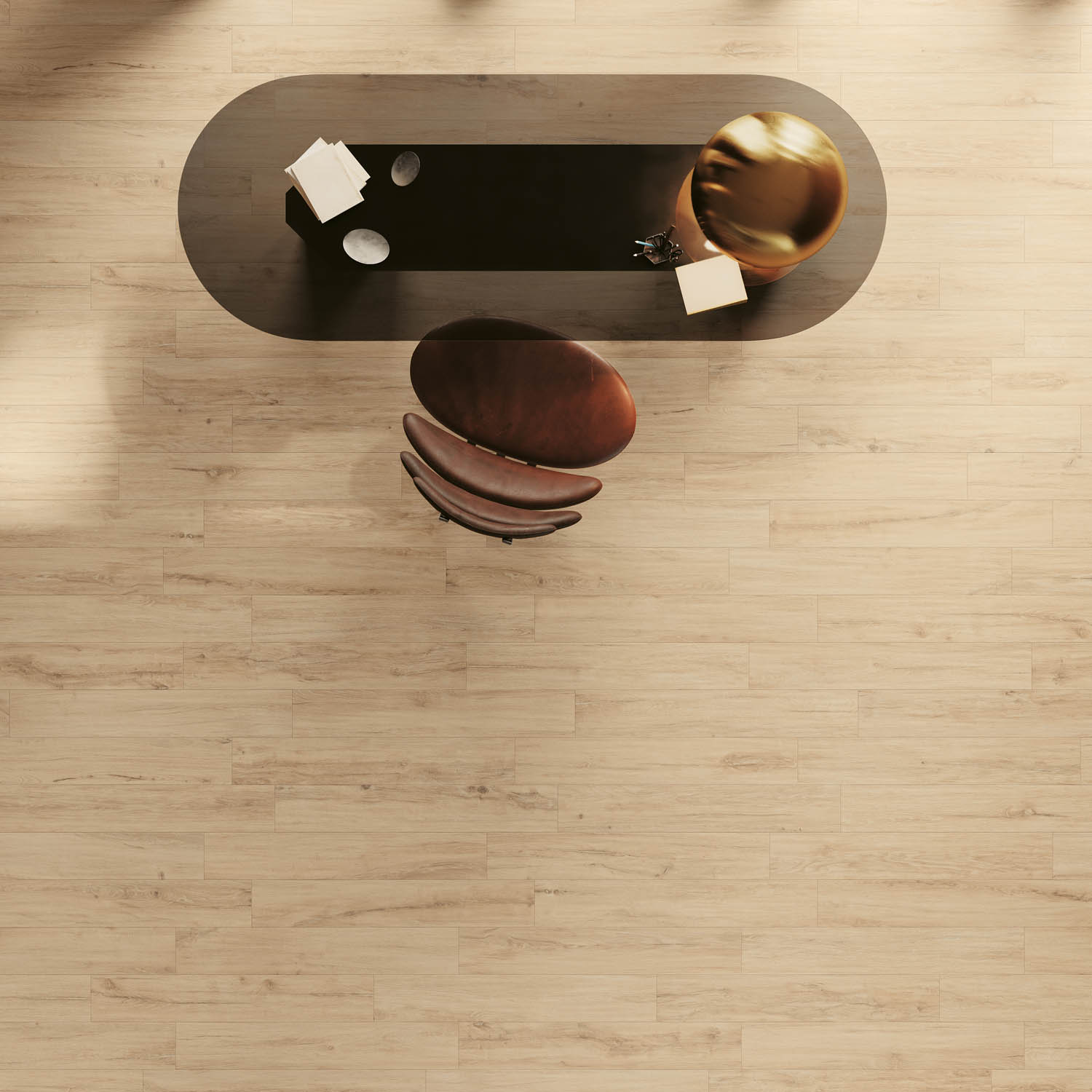 In Abéa ogni dettaglio è concepito per riproporre in ceramica la naturalità, il calore e il comfort del legno naturale. Le venature, i nodi, le specchiature e perfino le fibre più sottili sono riprodotte con sorprendente realismo. Le fessurazioni del legno sono riempite con stucchi più chiari dell’essenza e arricchiscono la naturale eleganza della superficie senza conferirle alcuna connotazione rustica.