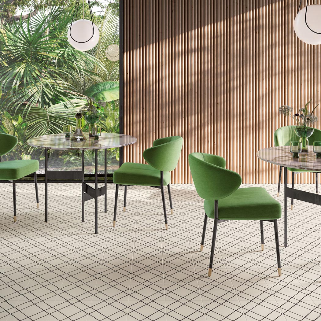 Ispirata alle tradizionali cementine, Bohème le reinterpreta in chiave moderna e ha capovolto la logica del loro processo di fabbricazione. I motivi geometrici e minimal oppure più elaborati e classici, vengono creati dalle maschere di metallo solitamente utilizzate per creare i vari decori. L’effetto “stencil” che valorizza le linee di separazione, invece delle campiture colorate, e le loro sbavature, sinonimo di artigianalità, diventa il tratto distintivo delle piastrelle.