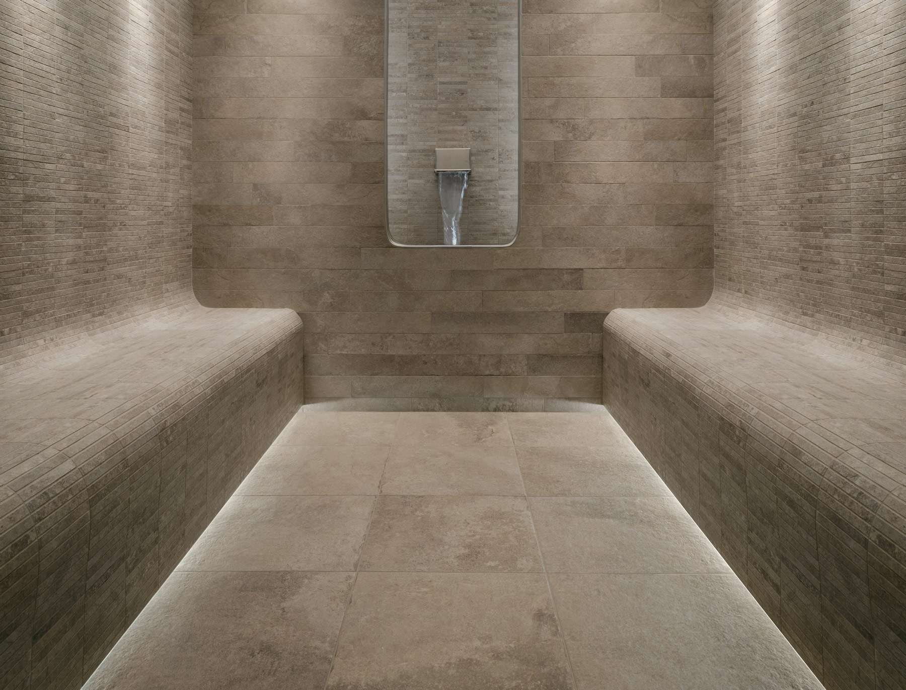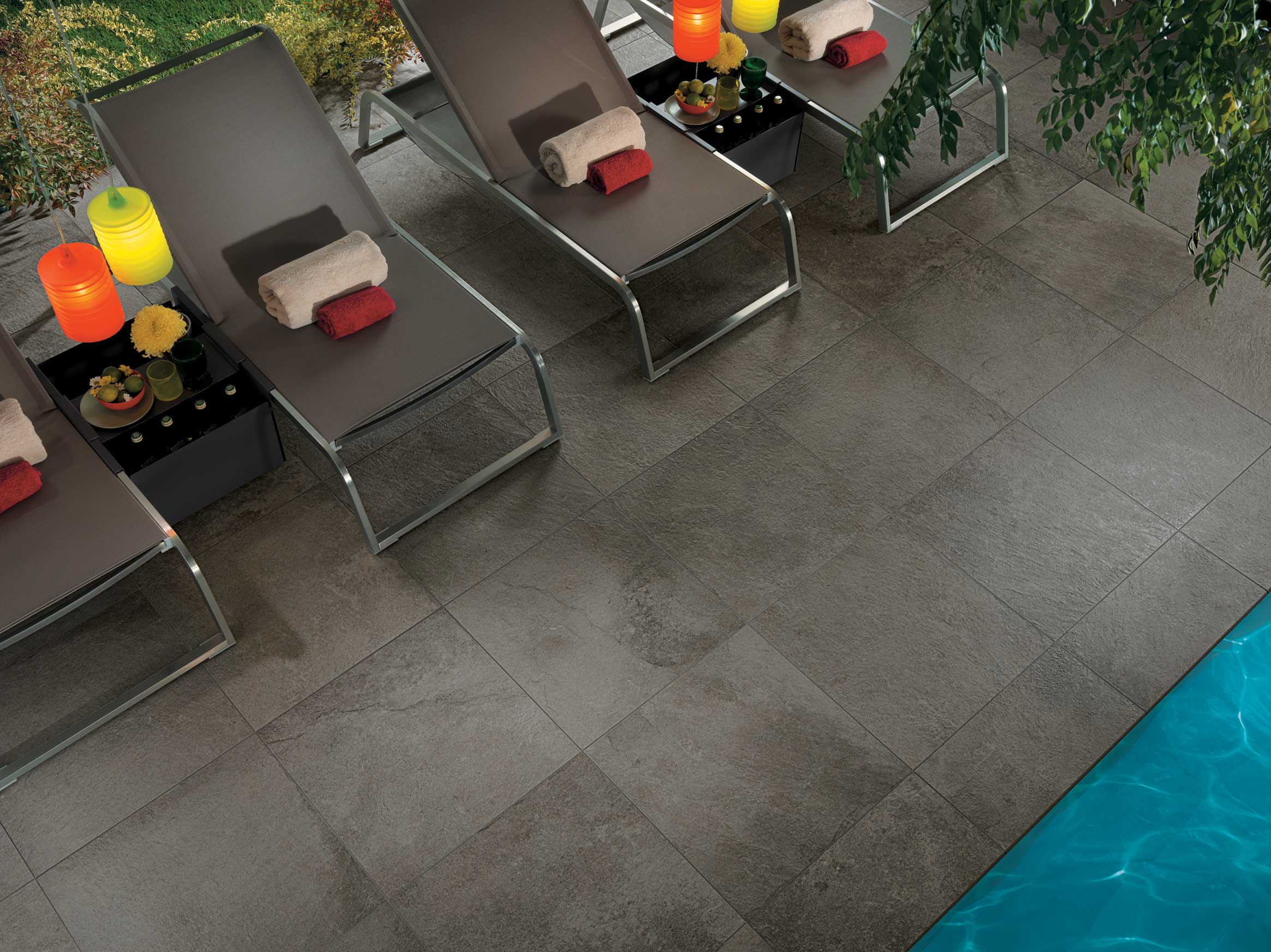 Geo, è una gamma di piastrelle in gres porcellanato colorato in massa studiata per la realizzazione di pavimentazioni per esterno. Geo è la riproduzione esatta, fin nei minimi dettagli, della pavimentazione in pietra del sagrato di un’antica chiesa nel nord Italia. Nei secoli, le intemperie, i muschi, i licheni, hanno segnato la superficie della pietra quasi cancellandone l’aspetto originario e sostituendosi ad esso, rendendola una materia nuova, una creazione del tempo. Ogni particolare è fedelmente riprodotto dalle piastrelle in gres porcellanato per esterno Geo: le sfumature cromatiche, i riflessi metallescenti, la tridimensionalità della superficie attaccata dal tempo.