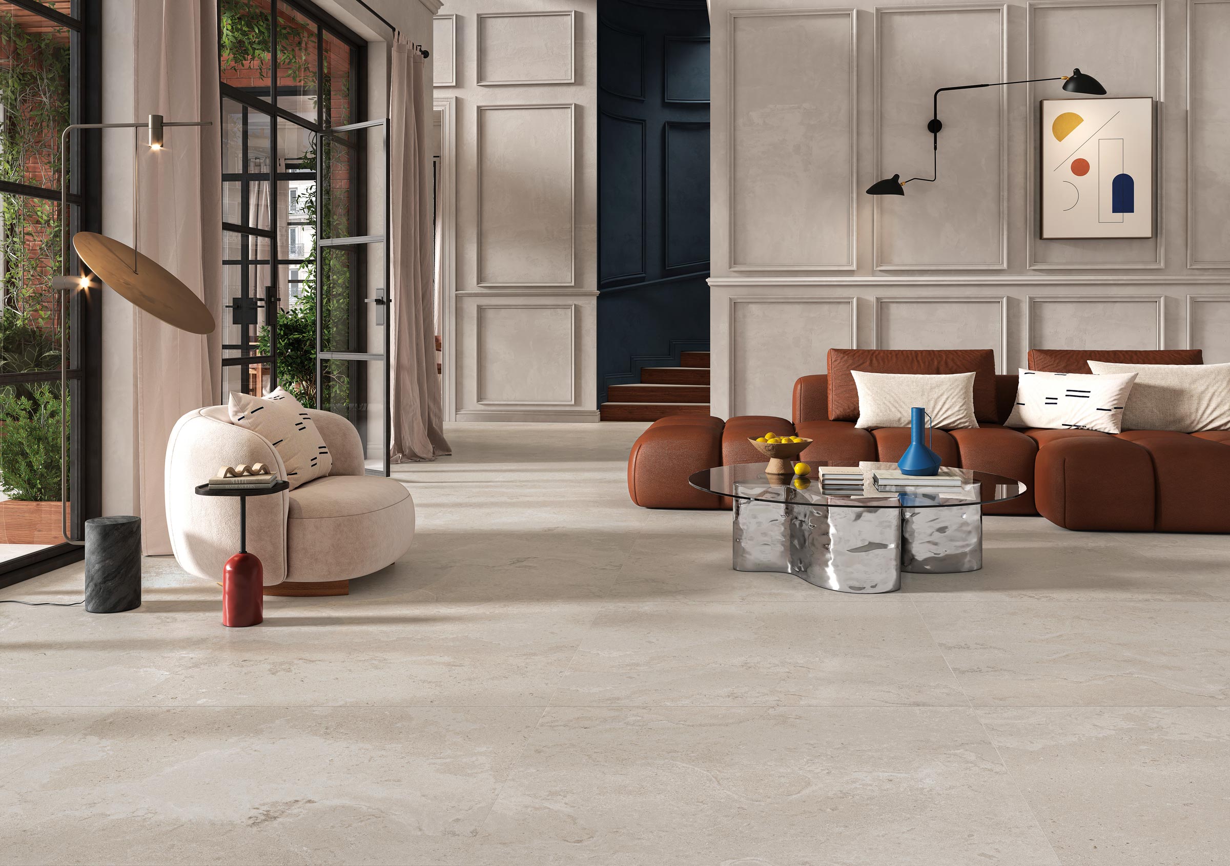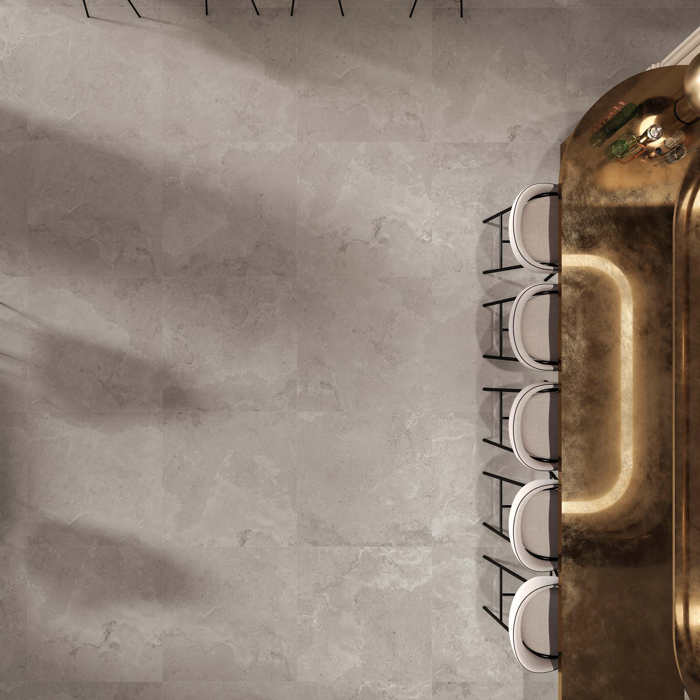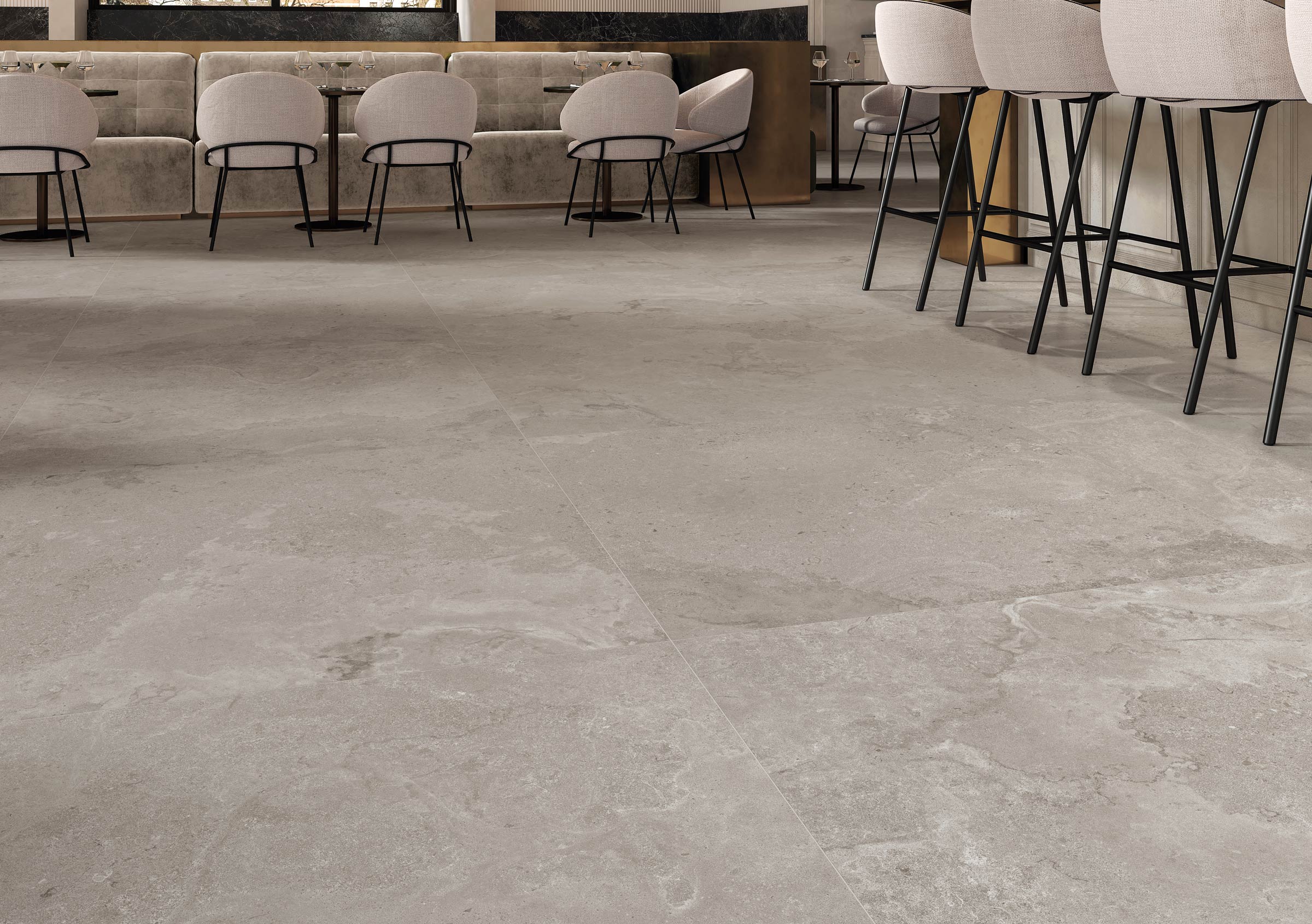 L’interpretazione di Novoceram ha privilegiato il taglio contro vena che restituisce l’aspetto più elegante e riconoscibile della pietra originale, con la sua ricchezza di dettagli e la sua tipica varietà di grafiche che percorre tutta la sua superficie.