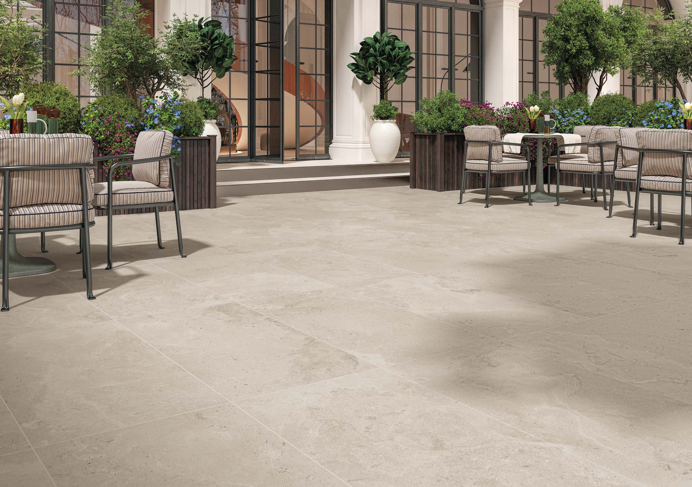 Per l’esterno la gamma si completa dei formati 60×120 Outdoor Plus e 60×60 Outdoor Plus in spessore 20 mm con finitura strutturata e caratteristiche antiscivolo R11 – C. I colori disponibili per questi formati sono Natural e Sable.