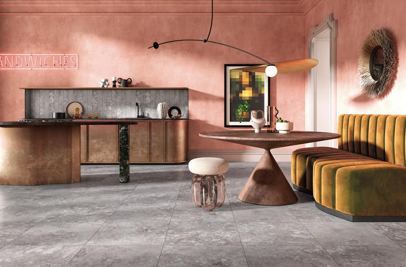 Kryo è disponibile in spessore 9,0 mm nei formati 120×120, 60×120, 60×60 e 30×60 con finitura R10 – B. Per l’esterno la gamma si completa dei formati 60×120 Outdoor Plus e 60×60 Outdoor Plus in spessore 20 mm con finitura strutturata e caratteristiche antiscivolo R11 – C.