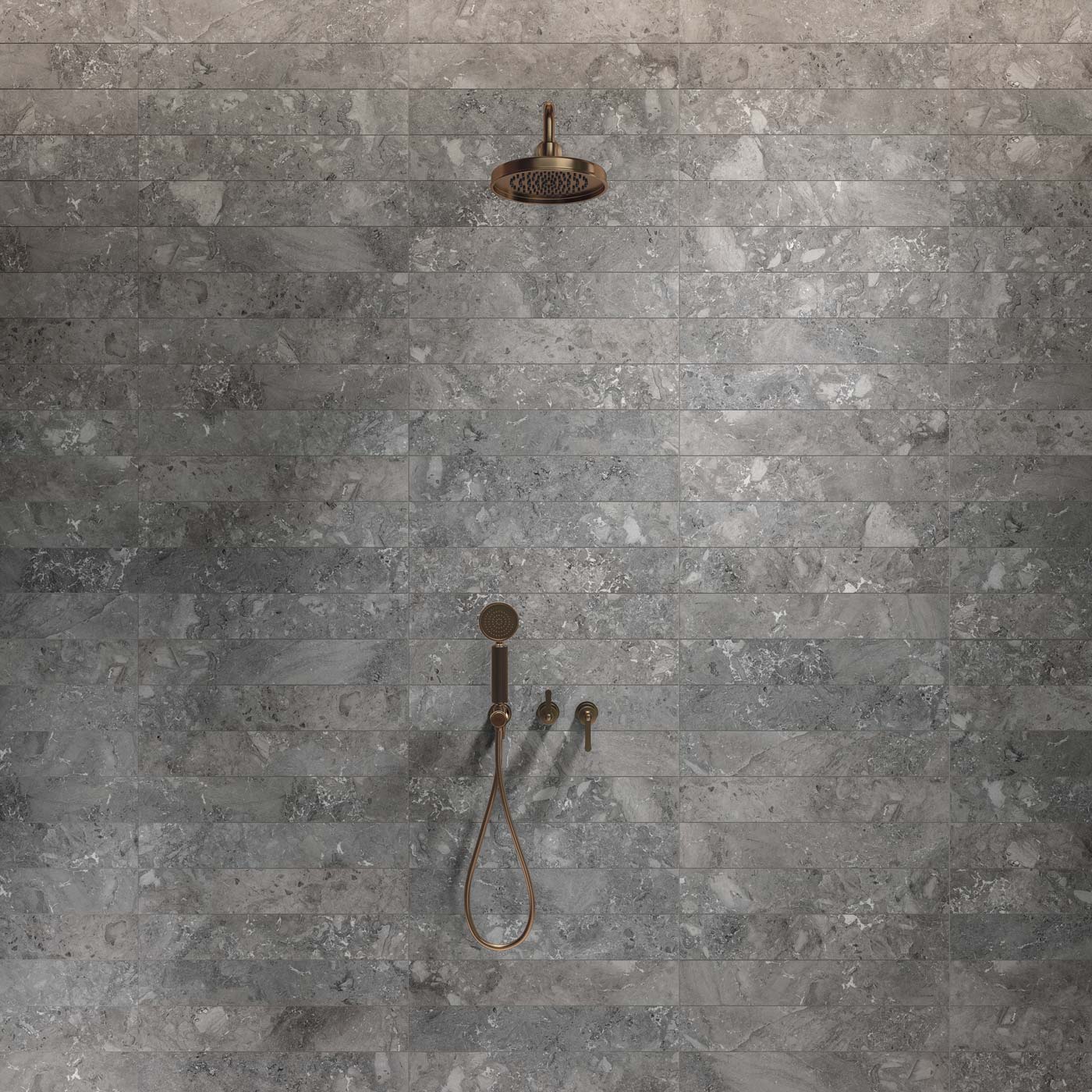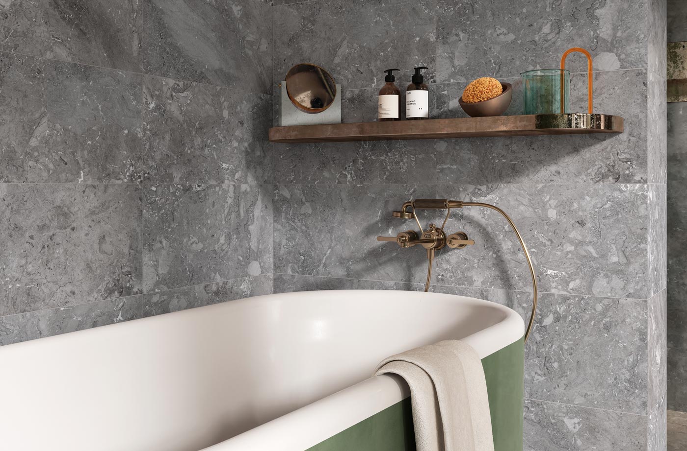 Completano la proposta anche i listelli 10×60 e il mosaico 5×5, particolarmente adatti come soluzioni decorative per vasche, docce e alzate di piani di cucina.