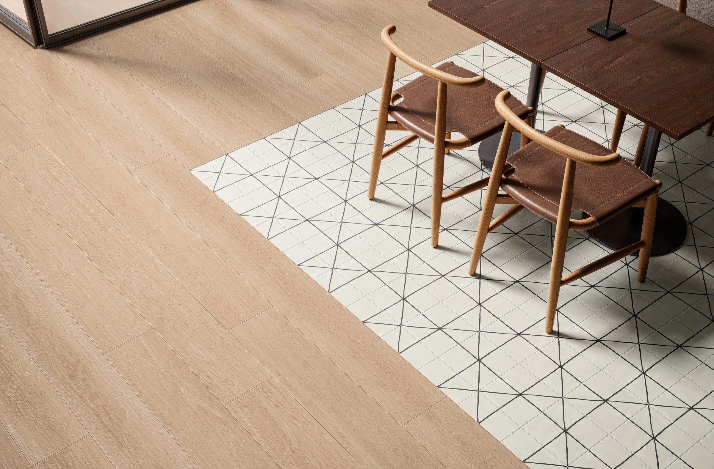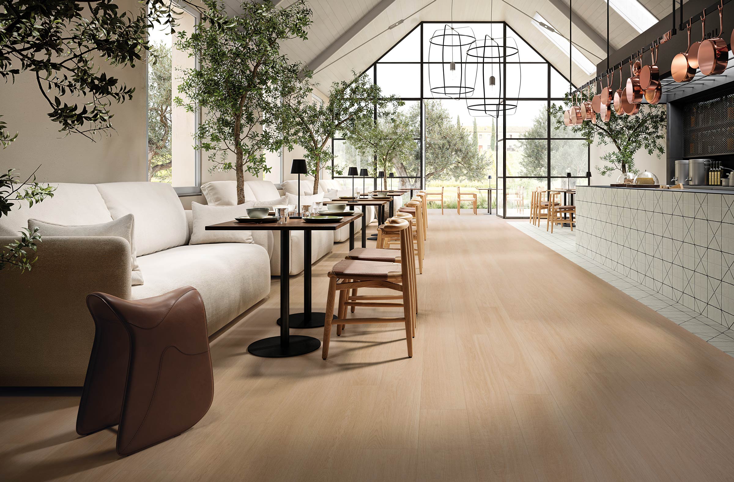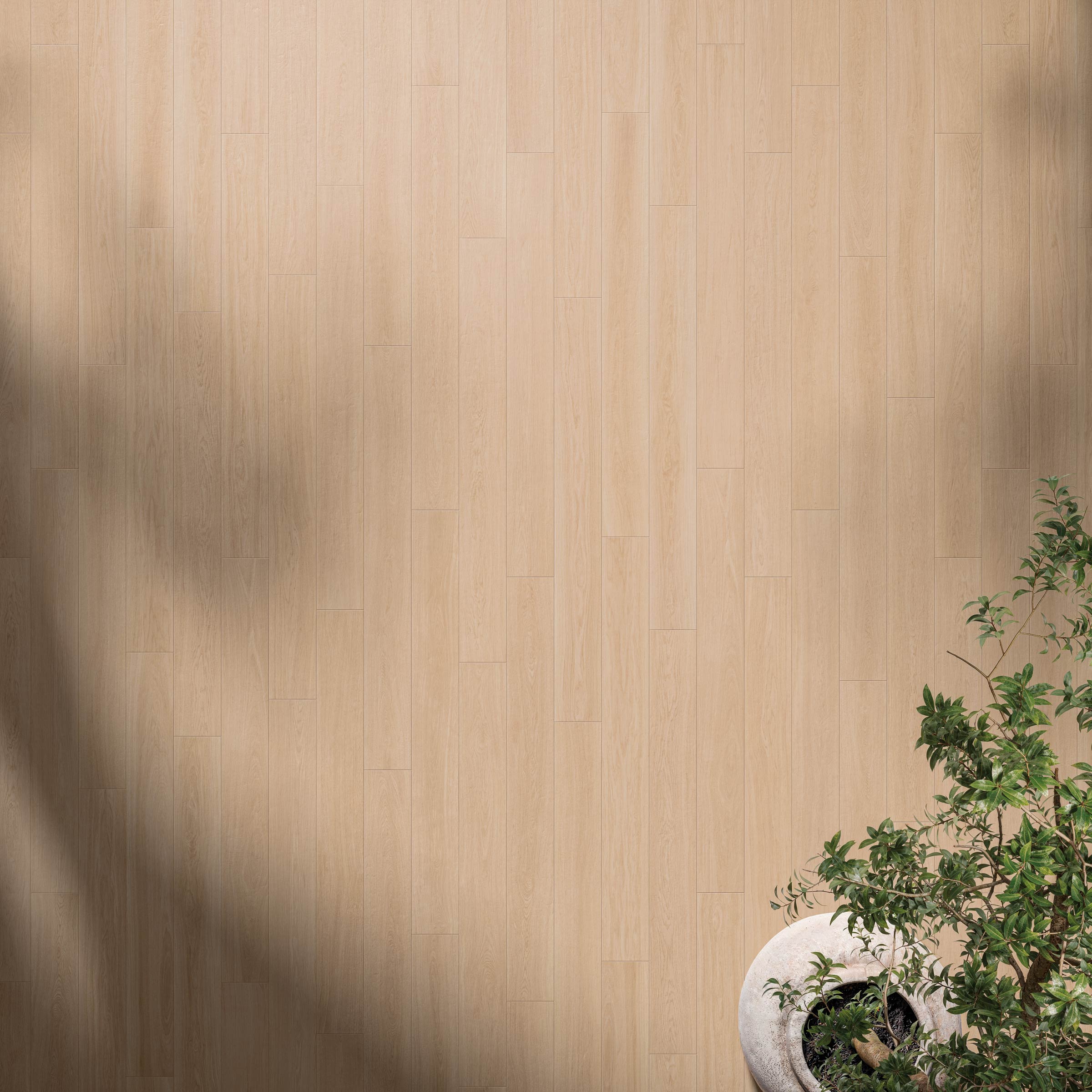 Il risultato di questa selezione è una piastrella effetto legno dal design minimal, ideale per ricreare superfici di tono uniforme, ma che a uno sguardo più ravvicinato rivela i tanti dettagli che caratterizzano il legno di rovere come la fine grana delle venature sottili e le leggere sfumature di chiaroscuro. che conferiscono grande profondità a un prodotto dal gusto contemporaneo.