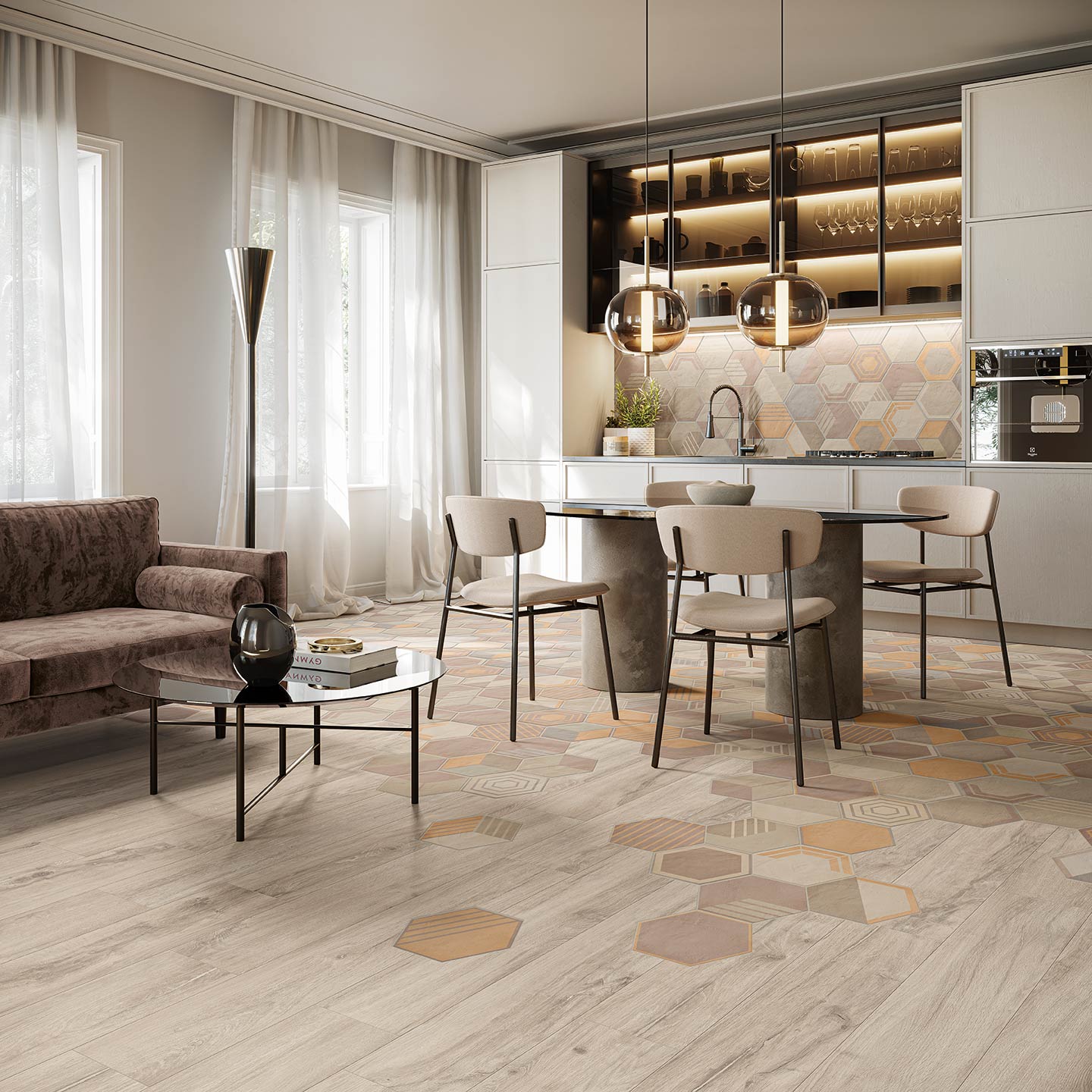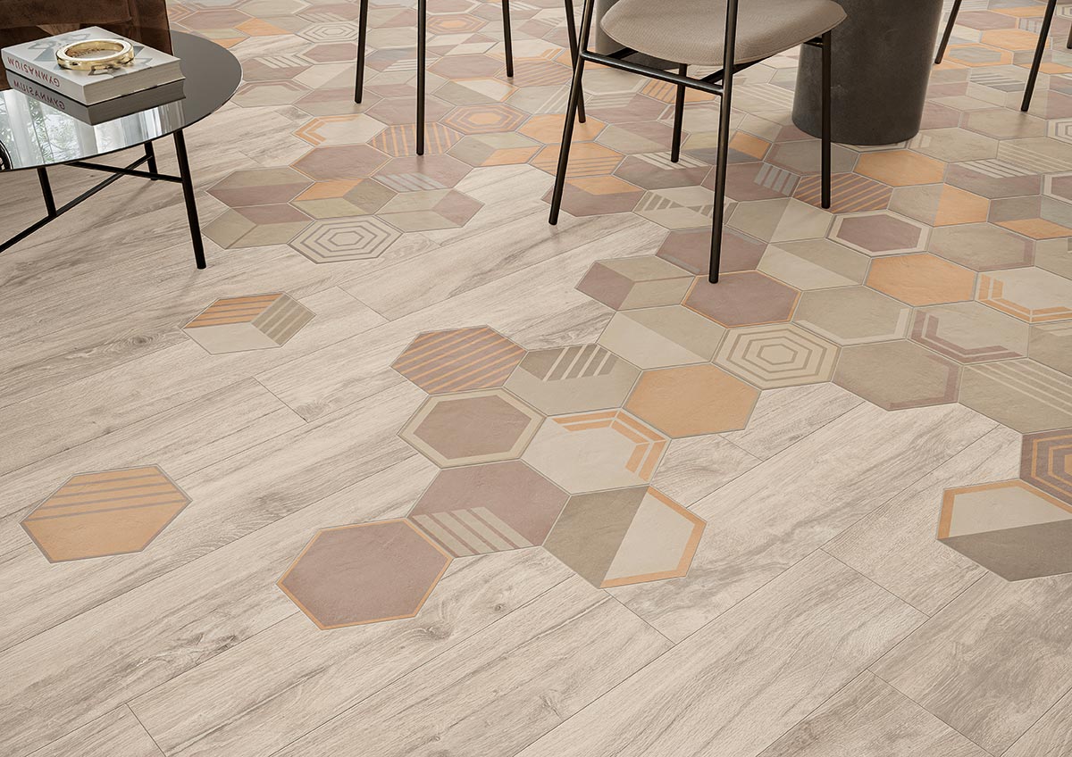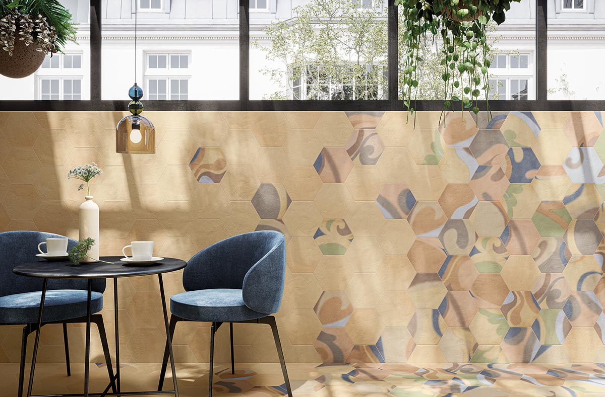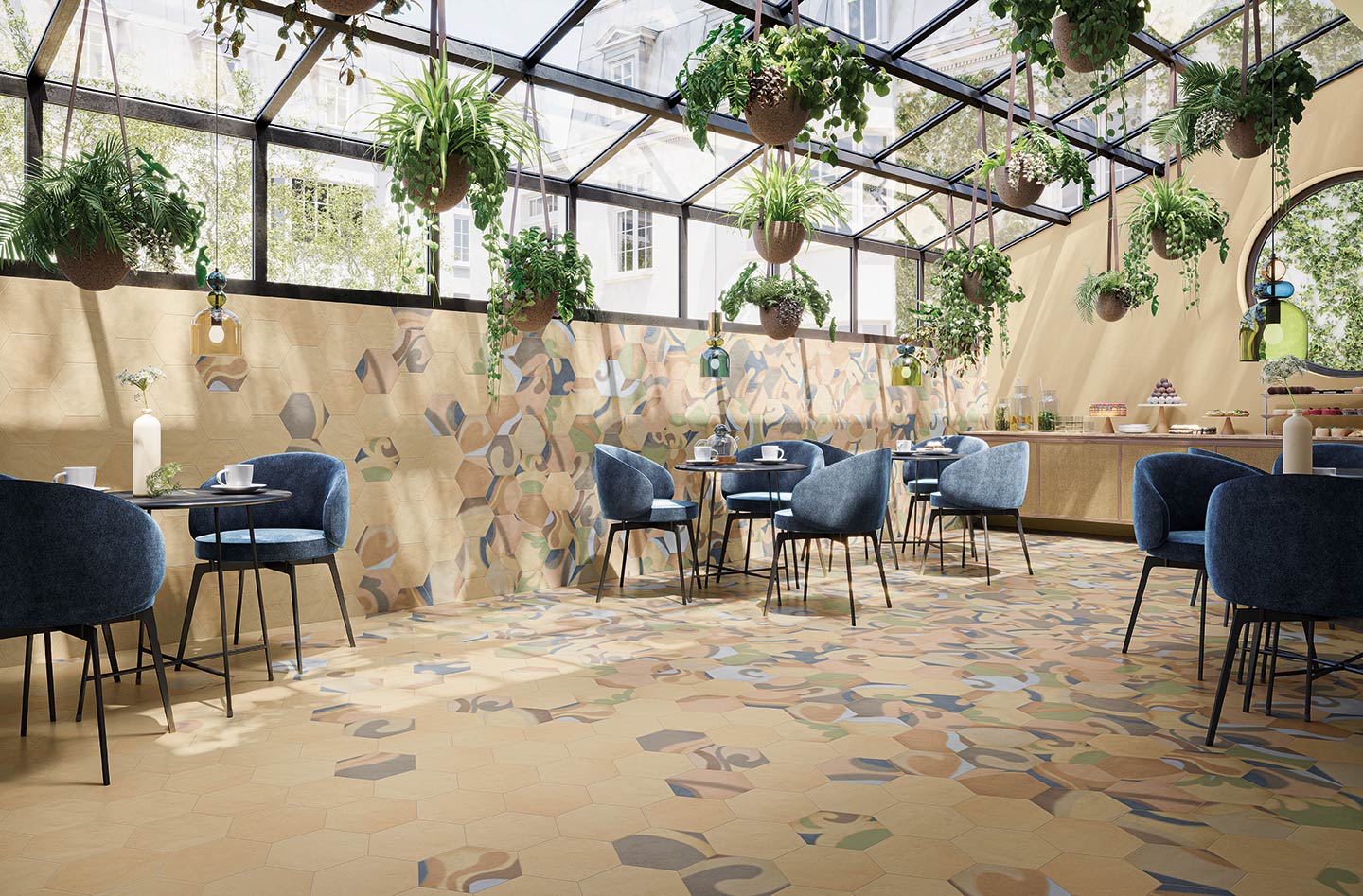 Osmose nasce da un’opportunità. Una suggestione nata dalla volontà di mostrare in tutta la sua bellezza l’arcobaleno di colori che caratterizzano la serie Ojala di Novoceram. La ricchezza di sfumature e la varietà nel disegno si propone di dare nuova linfa ad un formato classico dell’industria ceramica, l’esagono. Si ottiene così un prodotto decorativo ideale sia per pavimenti che rivestimenti, che garantisce colore e personalità all’ambiente in cui è posato.