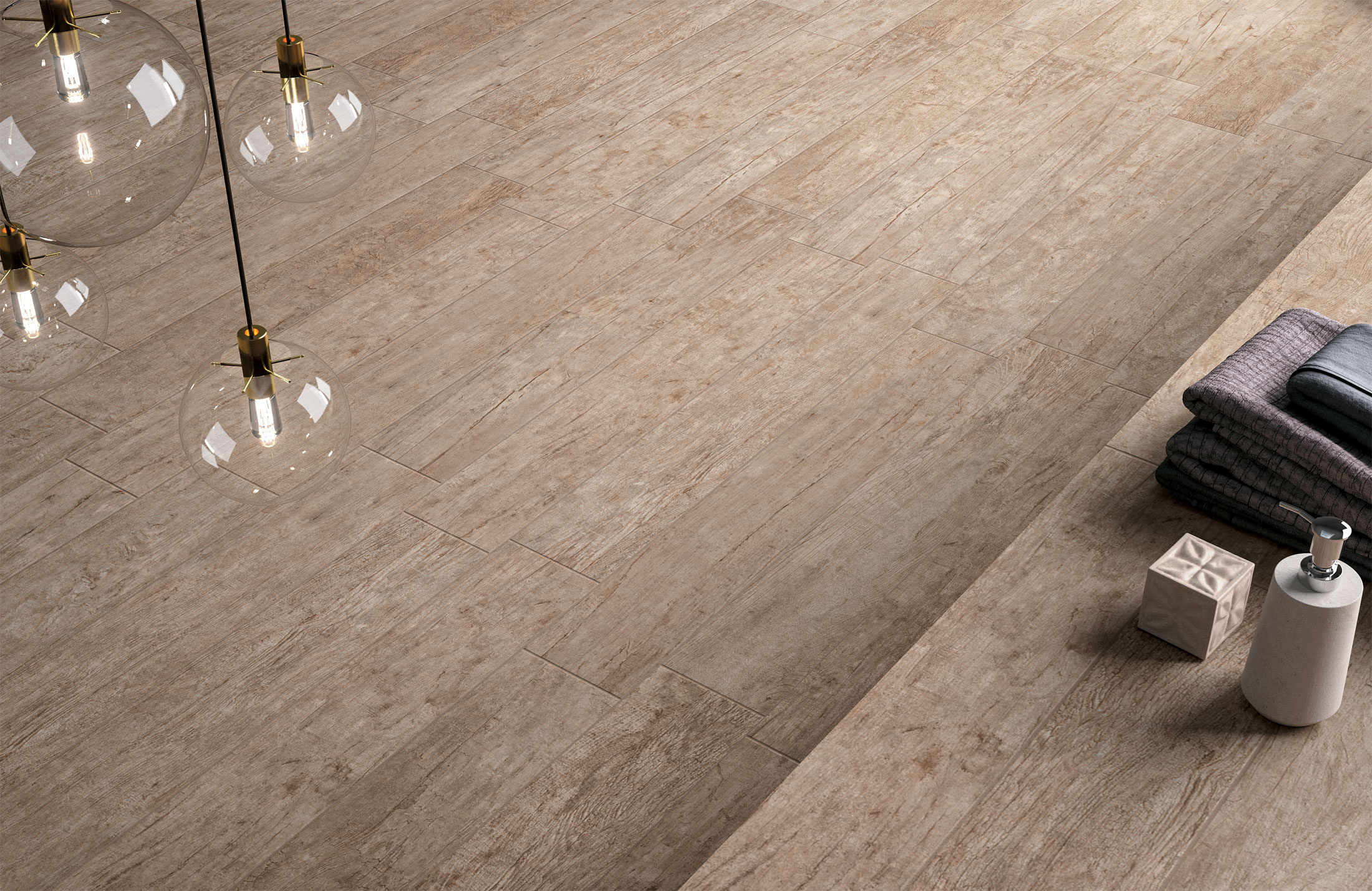Legno ceramico caratterizzato da un aspetto vissuto e consumato dalle intemperie, Tablon è proposto in tre colori – chiaro, grigio e rovere naturale – sia nella versione per interno nel formato 20×120, sia in 20 mm di spessore per pavimentazioni esterne nei formati 60×60 e 30×120.