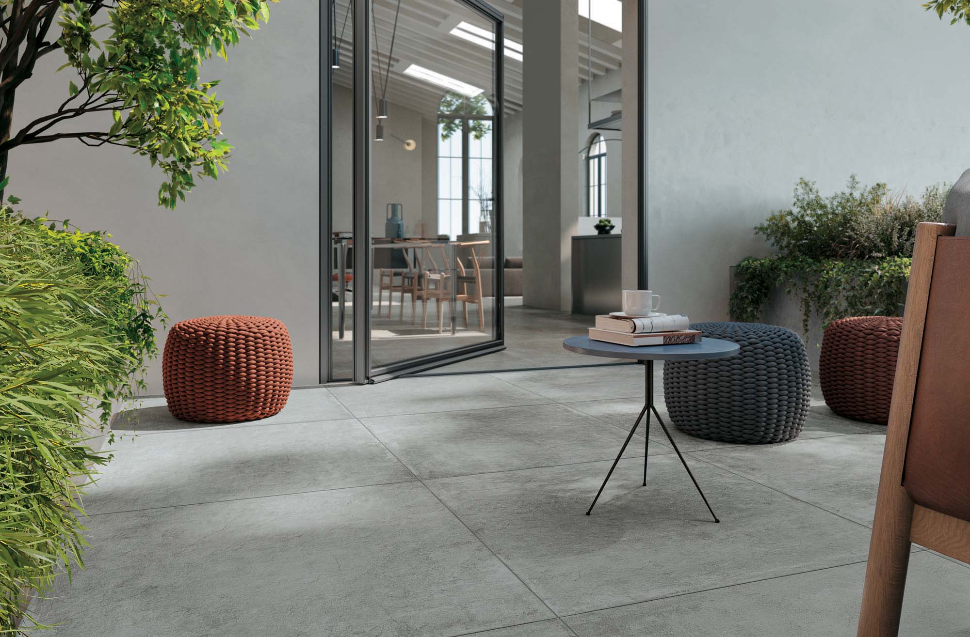 Teranga è una collezione ceramica effetto cemento con un disegno di sottili crepe declinata in 4 colori e nei nuovi formati 80×80 cm, 80×80 cm in 2 cm di spessore (gamma Outdoor Plus) e 120×120 cm.