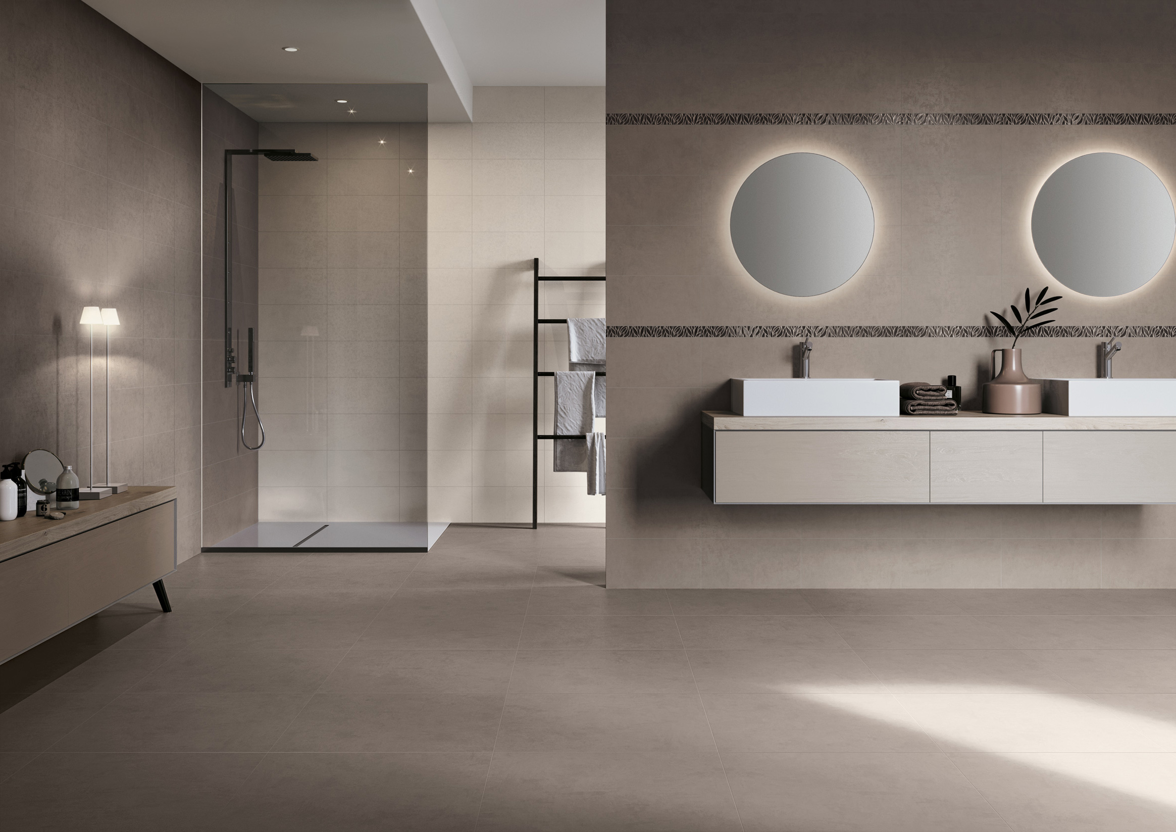 Vertige richiama l’aspetto liscio e morbido della resina colorata per proporlo in un gres porcellanato resistente e dalle elevate performance.