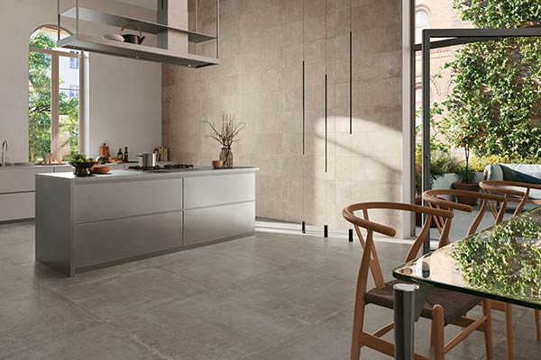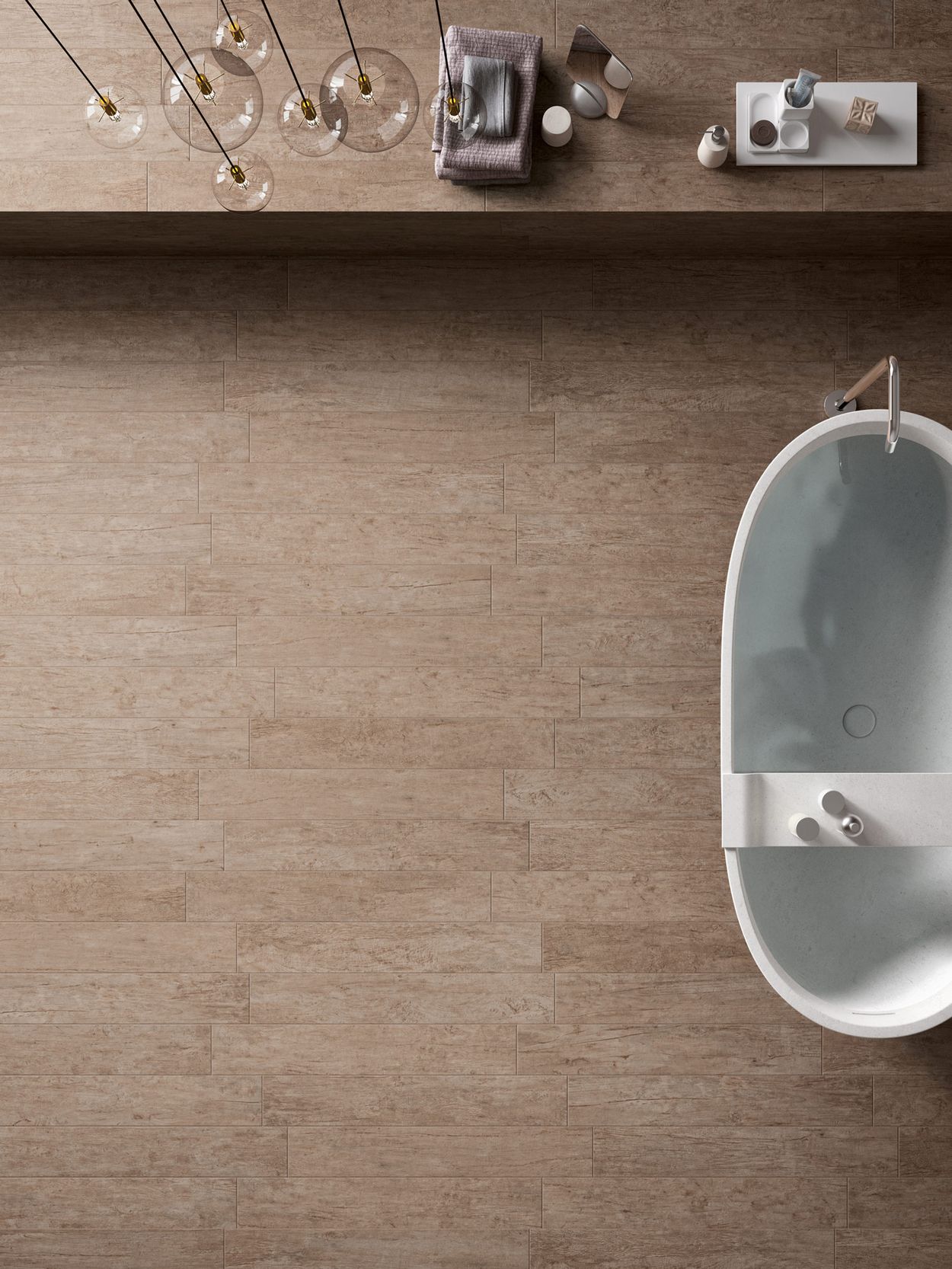 Più caldo del bianco o del grigio, il gres porcellanato beige si combina facilmente con altri colori. Apparentemente semplice, tutta la sua natura si svela alla luce, quando le diverse sfumature prendono vita.
