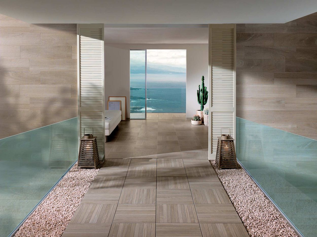 Il taupe è un colore versatile che può essere incorporato in molti progetti diversi. Infatti, grazie alla sua natura sobria, può armonizzarsi con qualsiasi interno. Ad esempio, se il soggiorno ha un’atmosfera più contemporanea, le piastrelle di grande formato color taupe possono fare al caso nostro. L’effetto pietra e il finto cemento sono perfetti per questo tipo di ambiente, aggiungendo rispettivamente un tocco di lusso e un’atmosfera industriale. Se invece il vostro interno è definito come più naturale e accogliente, l’effetto legno è la scelta ideale. Come i materiali naturali, riscalda l’atmosfera e trasmette un’autenticità unica.
