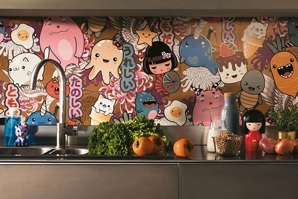 Novoceram propone anche diverse collezioni specialmente dedicate al rivestimento muro interno che, non dovendo sopportare le intense sollecitazioni del calpestio, possono essere realizzate con materiali preziosi, metalli, smalti brillanti e trasparenti, colori vivaci che permettono di ottenere effetti decorativi sorprendenti. Questa gamma innovativa di carte da parati ceramiche ha un design raffinato o più allegro. In effetti le fantasie delle piastrelle per pareti interne sono varie e si ispirano alla storia dell’arte, alla tradizione giapponese o all’eleganza geometrica.