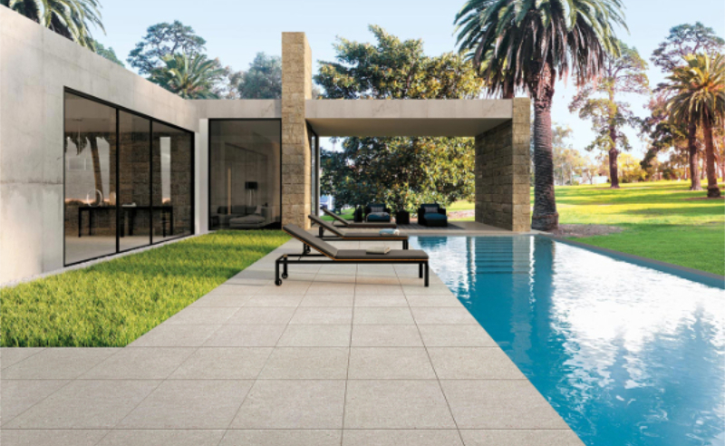 Se la piscina si trova all’esterno, il gres porcellanato moderno per piscina dimostra una forte resistenza alle intemperie e al gelo. In effetti le piastrelle non rischiano di crepare e rompersi. I raggi ultravioletti dl sole non hanno alcun effetto sul gres che conserva il colore e la finitura superficiale originaria.