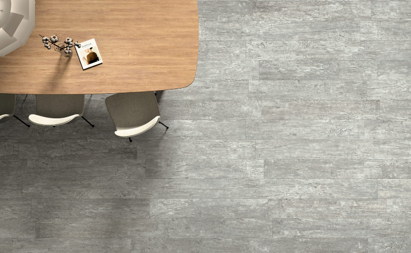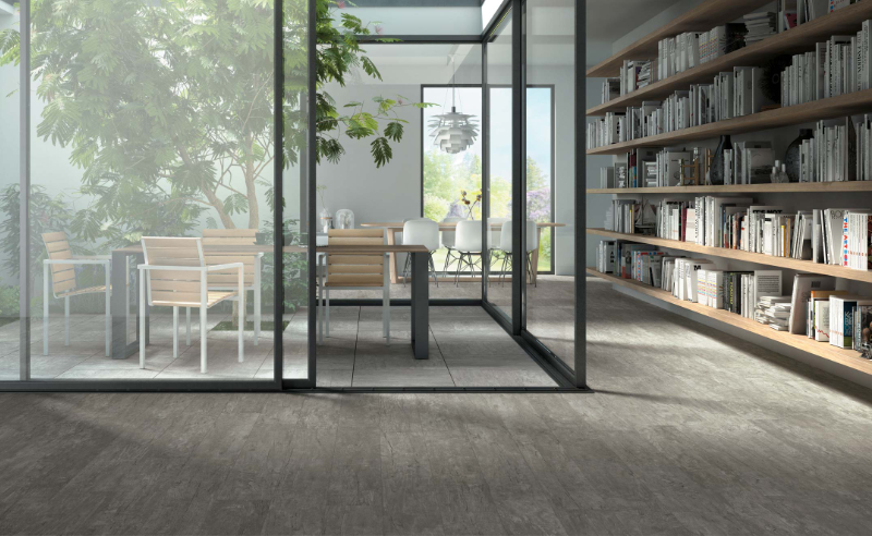 Le piastrelle effetto legno grigio possono creare giochi di contrasti. Per esempio, in combinazione con il nero creano uno stile di design e i colori a contrasto danno carattere allo spazio. Per uno stile spiccatamente industriale, l’arredamento sarà formato principalmente di arredi in metallo che, con il legno, creeranno una combinazione vincente.