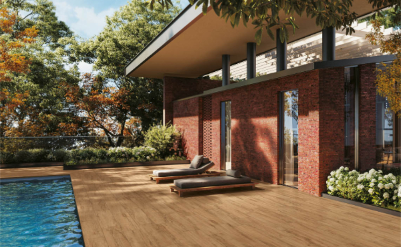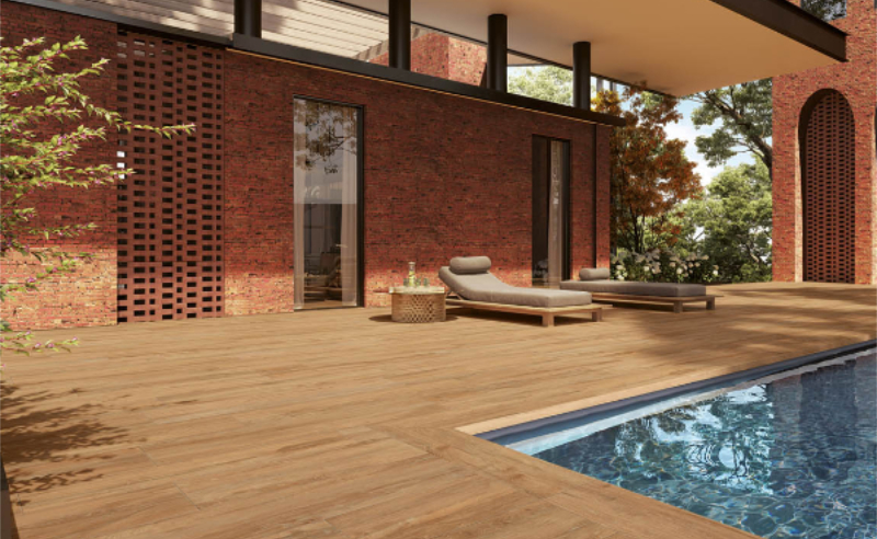 pavimento piscina effetto legno attira l’attenzione e diventerà il punto focale dei vostri spazi esterni!