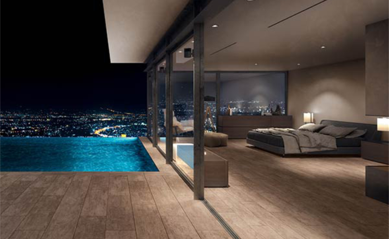 Le piastrelle effetto legno racchiudono la bellezza del parquet naturale e hanno una resa esteticamente molto realistica. È possibile immaginare un’infinità di stili di decorazione e di arredi differenti che cancellano ogni frontiera tra la casa e l’esterno e fra le diverse zone del giardino. Perché quindi non portare l’estetica delle piastrelle per terrazzo effetto legno fino in piscina?
