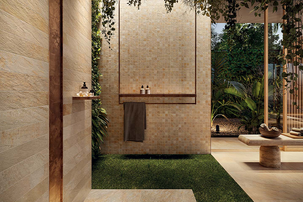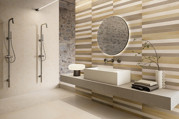 Il gres porcellanato è disponibile in una magnifica varietà di formati, che lo rendono perfettamente adatto a bagni e cabine doccia. Oltre all’estetica versatile, la varietà di formati delle piastrelle offre numerose possibilità di progettazione. Nei bagni di piccole dimensioni, l’uso di piastrelle in gres porcellanato crea una credenza funzionale ed elegante. Per le cabine doccia, l’uso di piastrelle più grandi, come 120×60, crea un’illusione di spazio e grandezza, conferendo all’ambiente un aspetto più ampio e aperto. Il gres porcellanato può essere utilizzato anche per creare una continuità visiva tra il bagno e la cabina doccia. Le stesse piastrelle possono rivestire sia il pavimento del bagno che le pareti della doccia, creando un’armonia estetica e un flusso visivo senza soluzione di continuità.