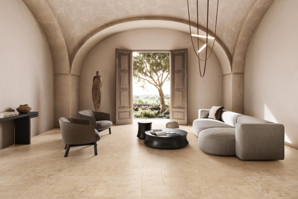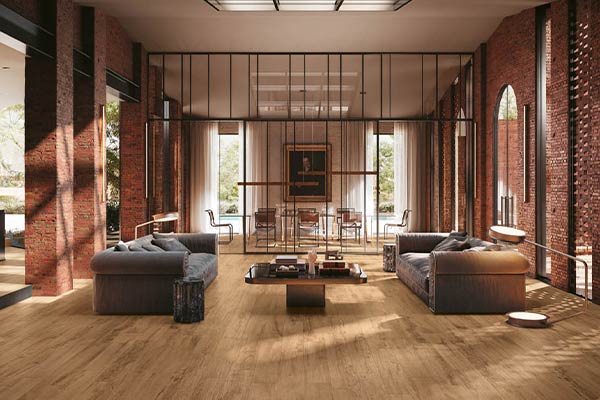 Prima di tutto il soggiorno è un luogo in cui si accolgono gli ospiti e deve talvolta fare fronte a un passaggio frequente di persone, in particolare se alla stanza si accede direttamente dall’esterno. Le piastrelle in gres porcellanato per living sono particolarmente resistenti all’usura e mantengono il loro aspetto originario, sia che riproducano marmo, legno, pietra o cementine.