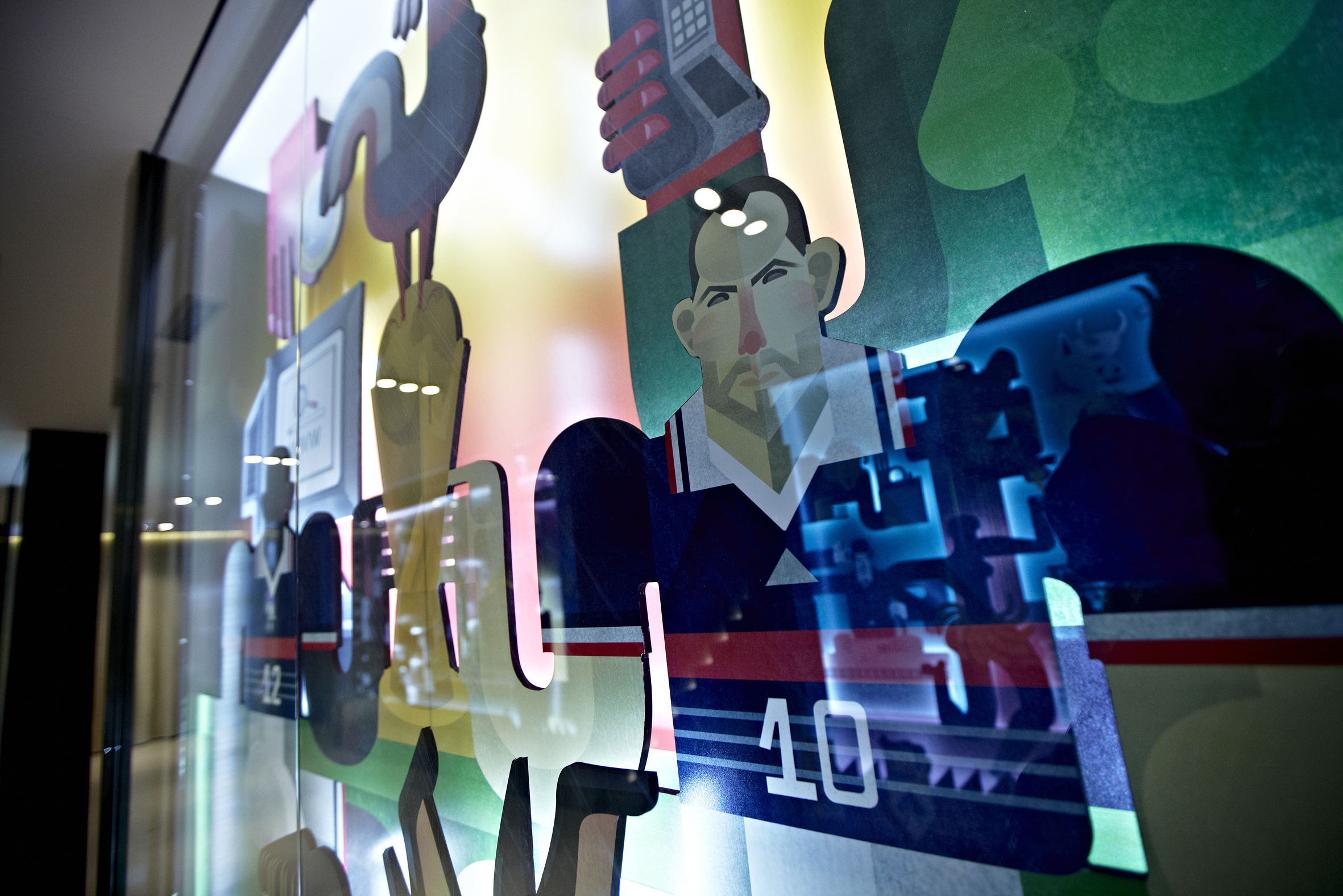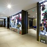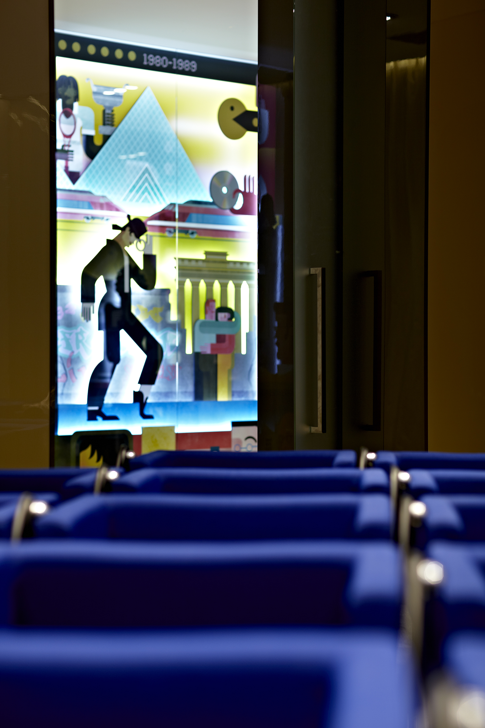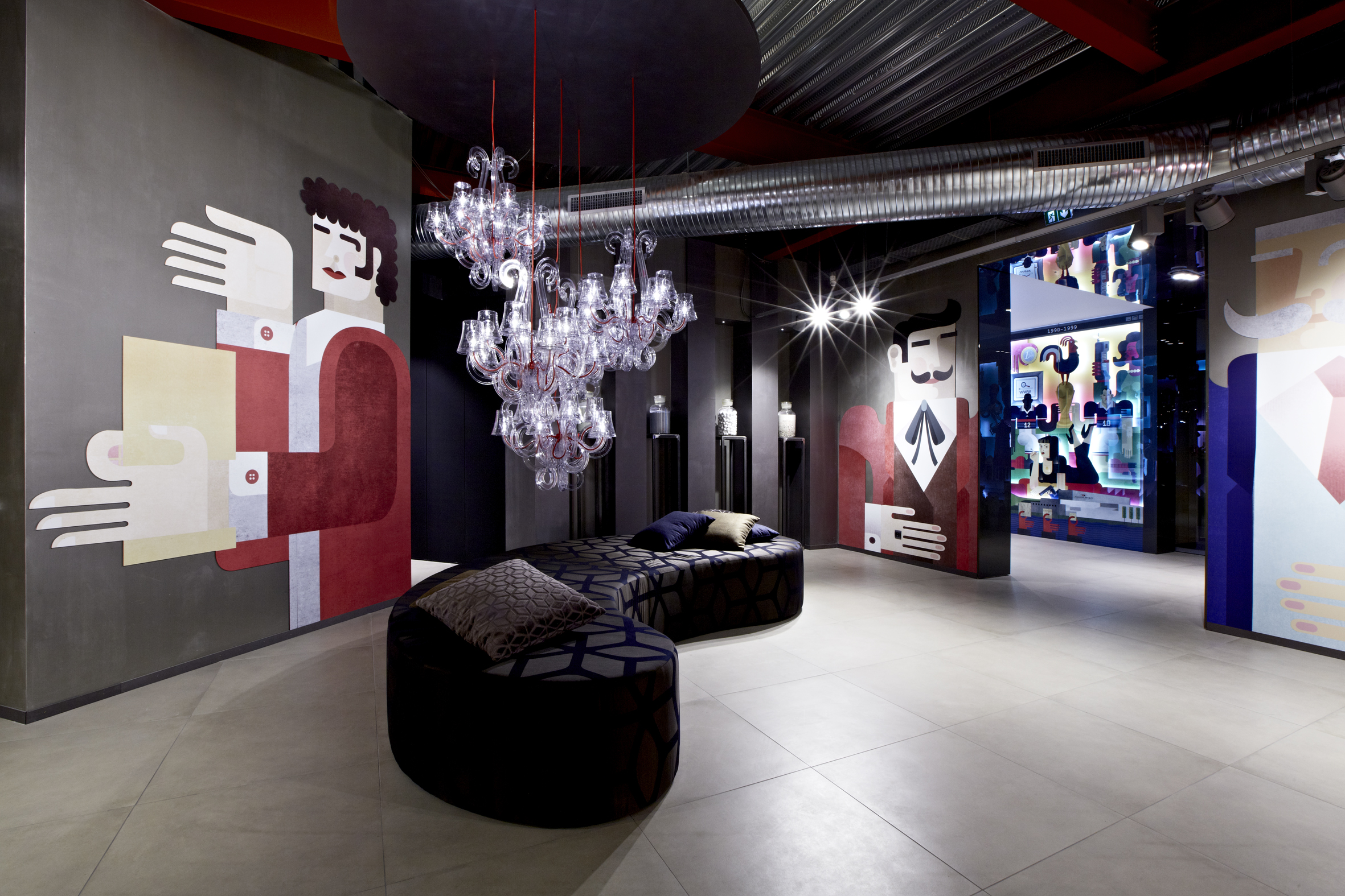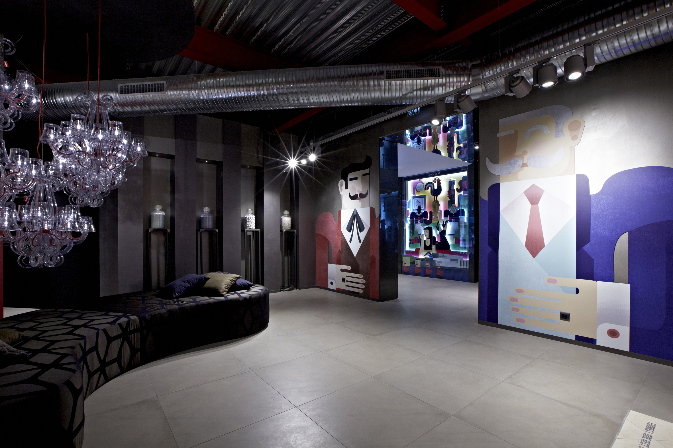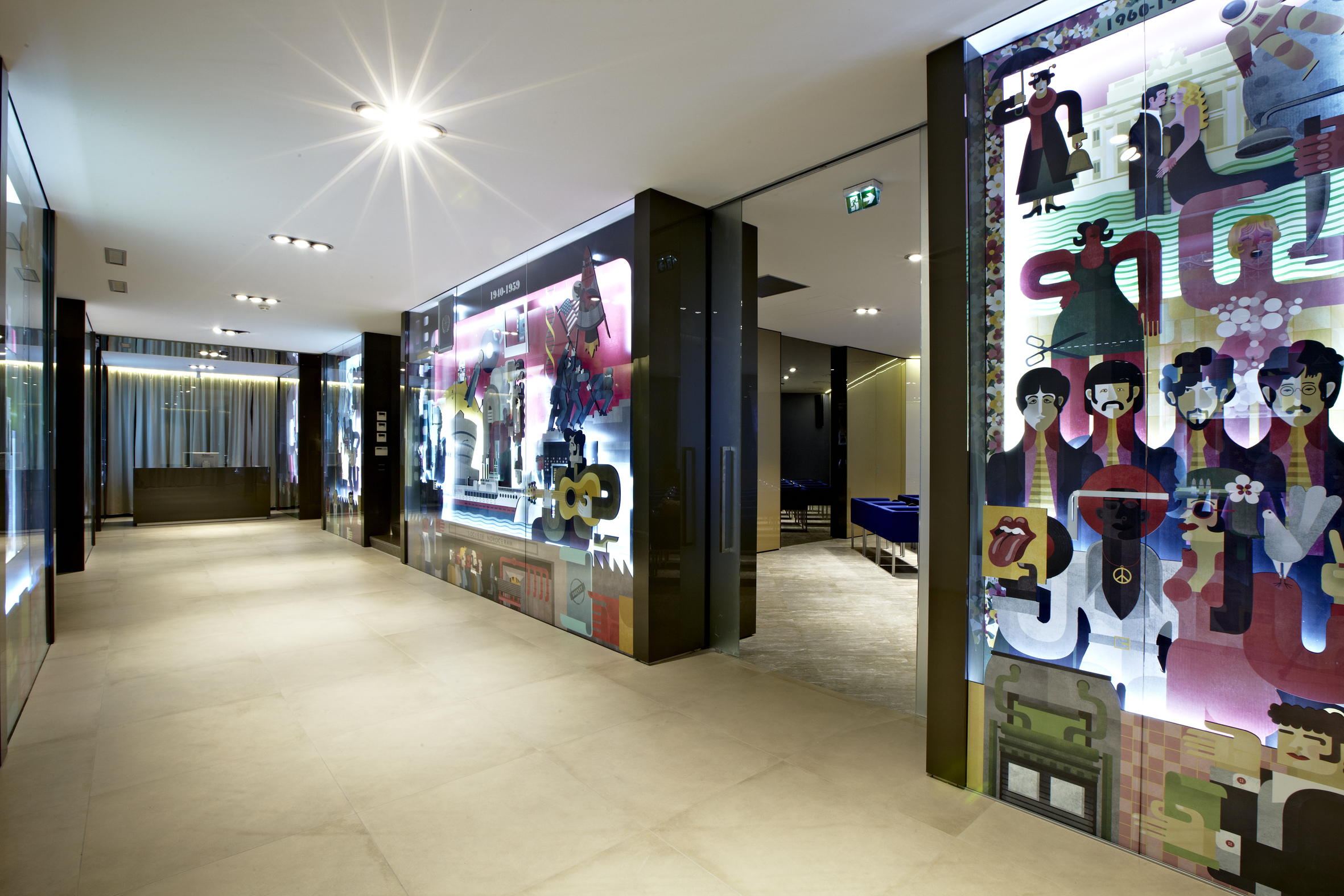 L’esperienza ha il suo inizio in una grande galleria vetrata, interamente rivestita da un affresco tridimensionale che conduce il visitatore lungo i primi 150 anni di storia di Novoceram e del mondo intero, illustrati dall’artista spagnola Maria Corte. La scoperta del Caroscope prosegue nello showroom la cui struttura, gli impianti a vista e i soffitti metallici richiamano la vicinanza fra la sala mostra e lo stabilimento, separati da una sola parete dove porta segreta permette ai visitatori di passare da un mondo all’altro. La visita termina in una materioteca intima e accogliente, dove i clienti e gli architetti possono apprezzare le diverse finiture, le sfumature di colore e le texture delle gamme di Novoceram.