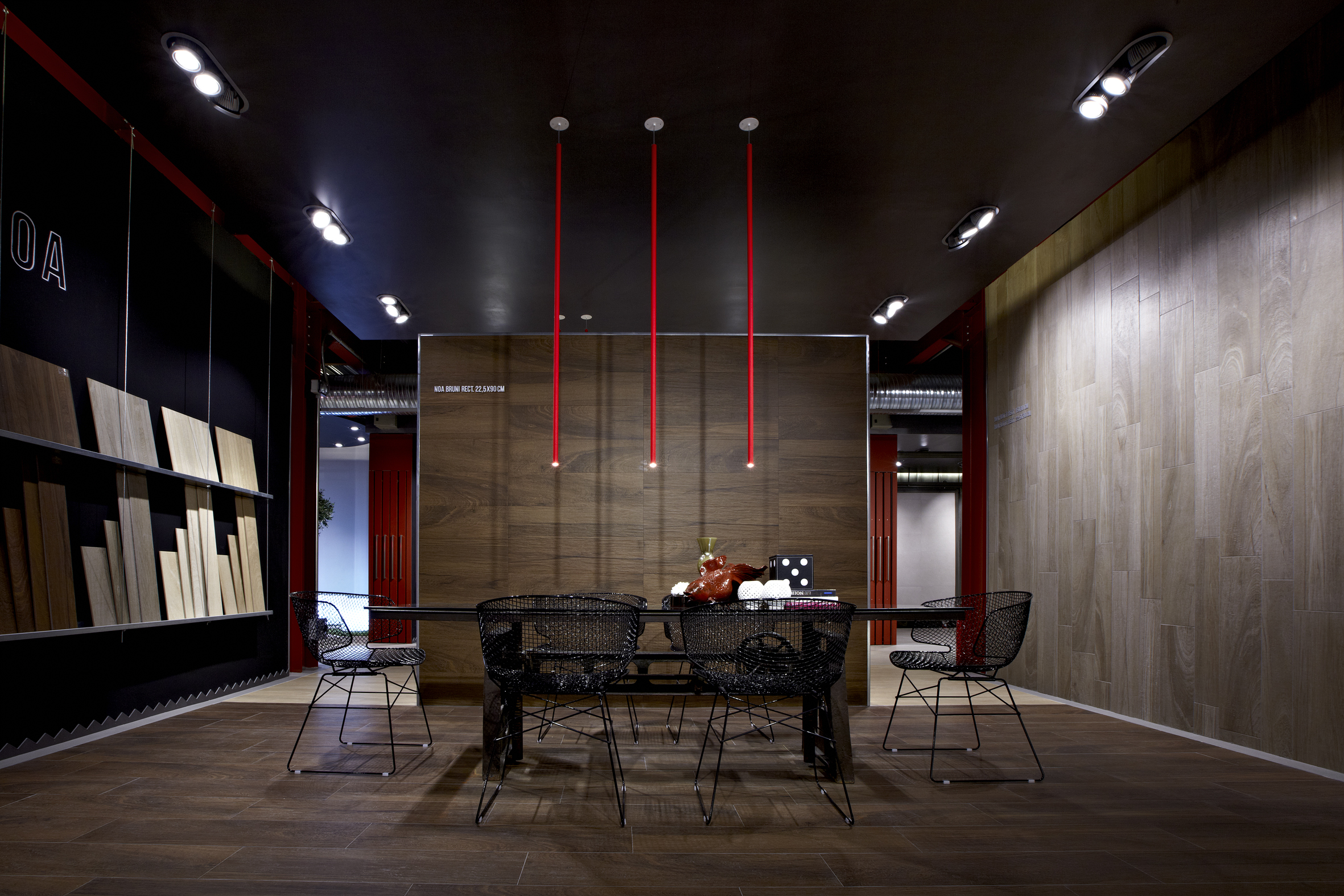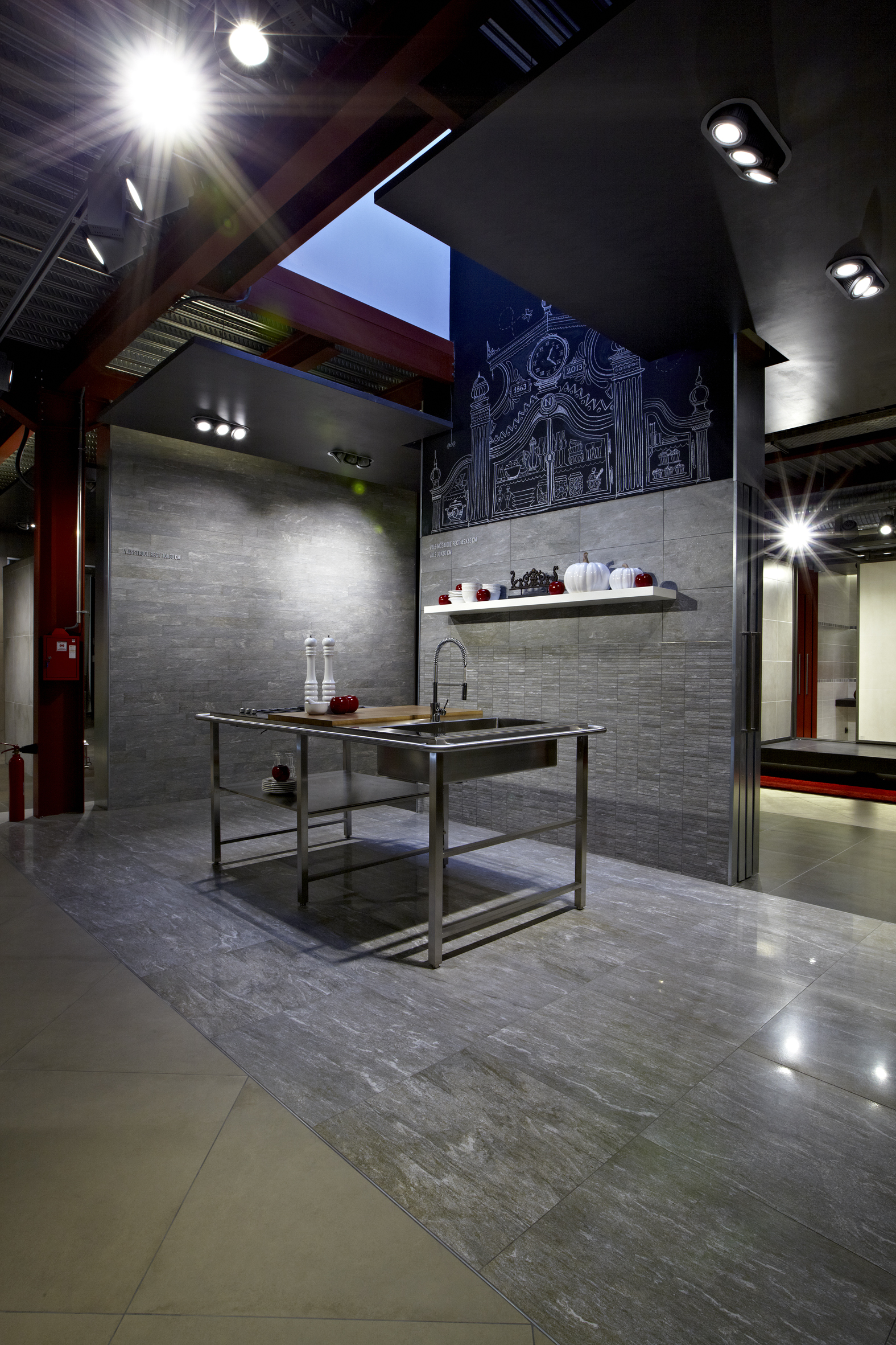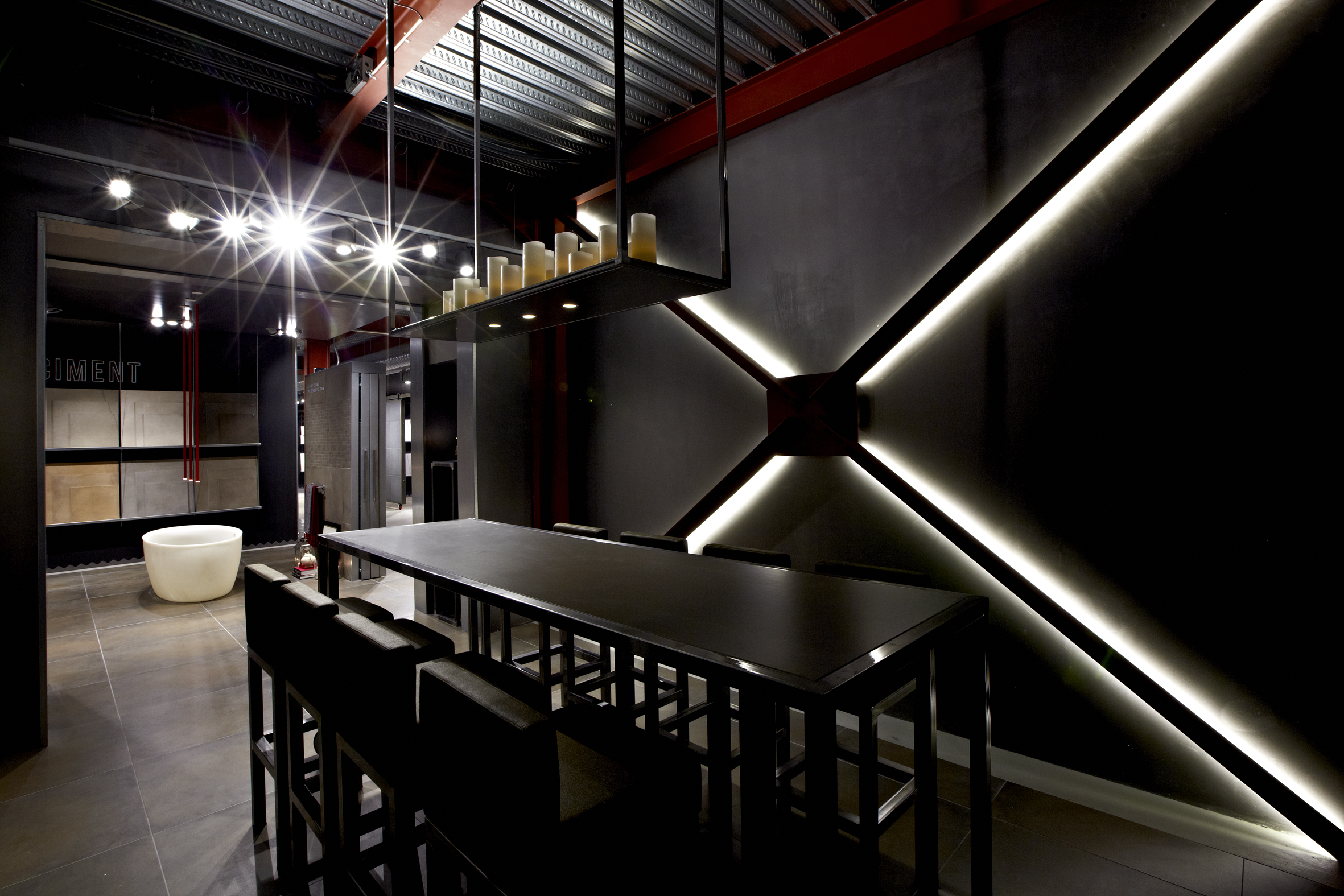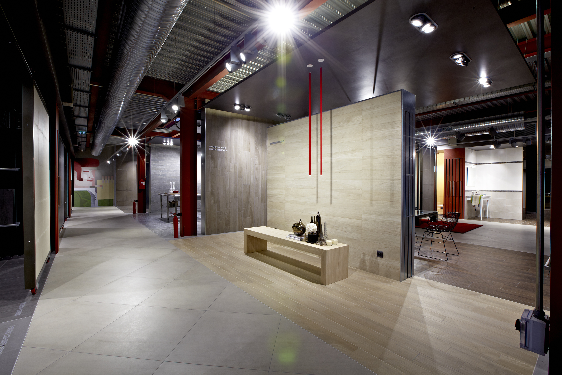 Nel Caroscope l’innato senso della scenografia, proprio di Novoceram, si fonde con il carattere prettamente industriale dell’edificio. «Per un’azienda la cui scelta di produrre in Francia rappresenta un valore etico» spiega Francesco Catalano, direttore Marketing di Novoceram «mettere in scena il prodotto nel suo universo di fabbricazione è molto più di una scelta di stile: è una vera e propria espressione d’identità».