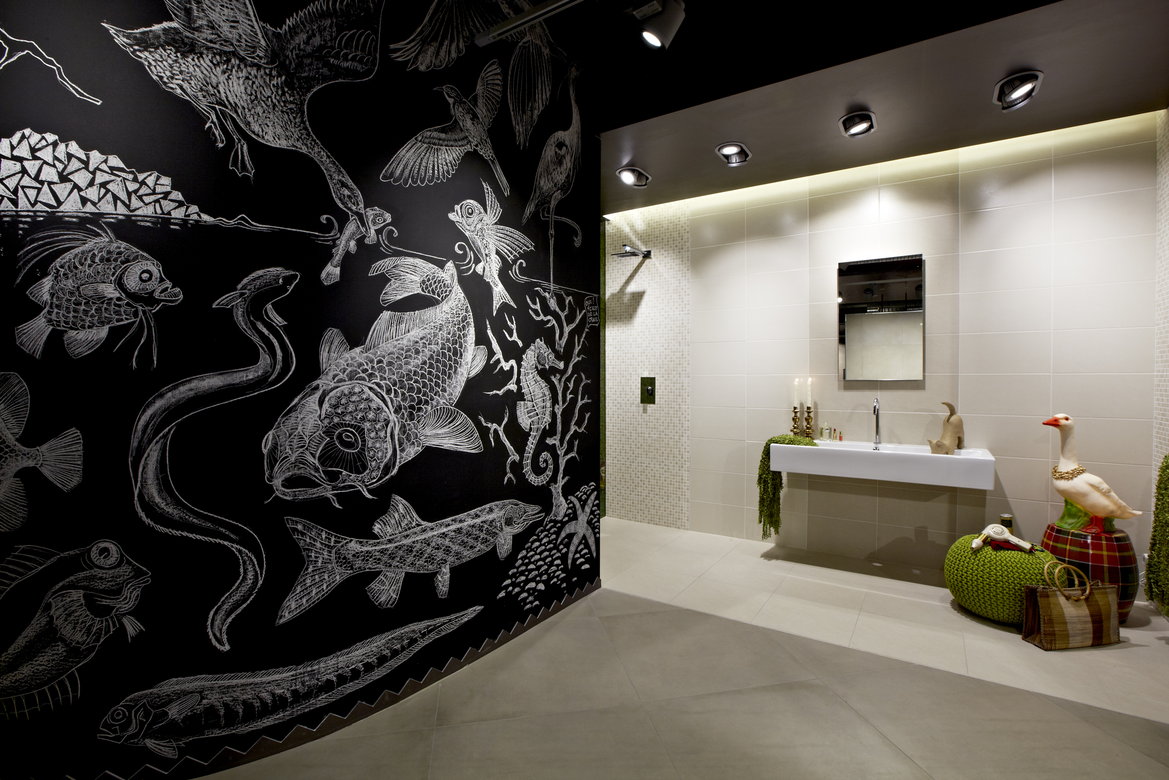 Illusioni ottiche, trofei di caccia ecologici, cascate di lampadari cristallini e riflessi immaginifici di Toile de Jouy regalano a questo viaggio fra design e ceramica un ultimo tocco di magia: l’immancabile firma che rende unica ogni scenografia di Novoceram.