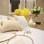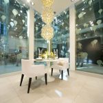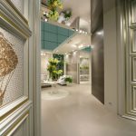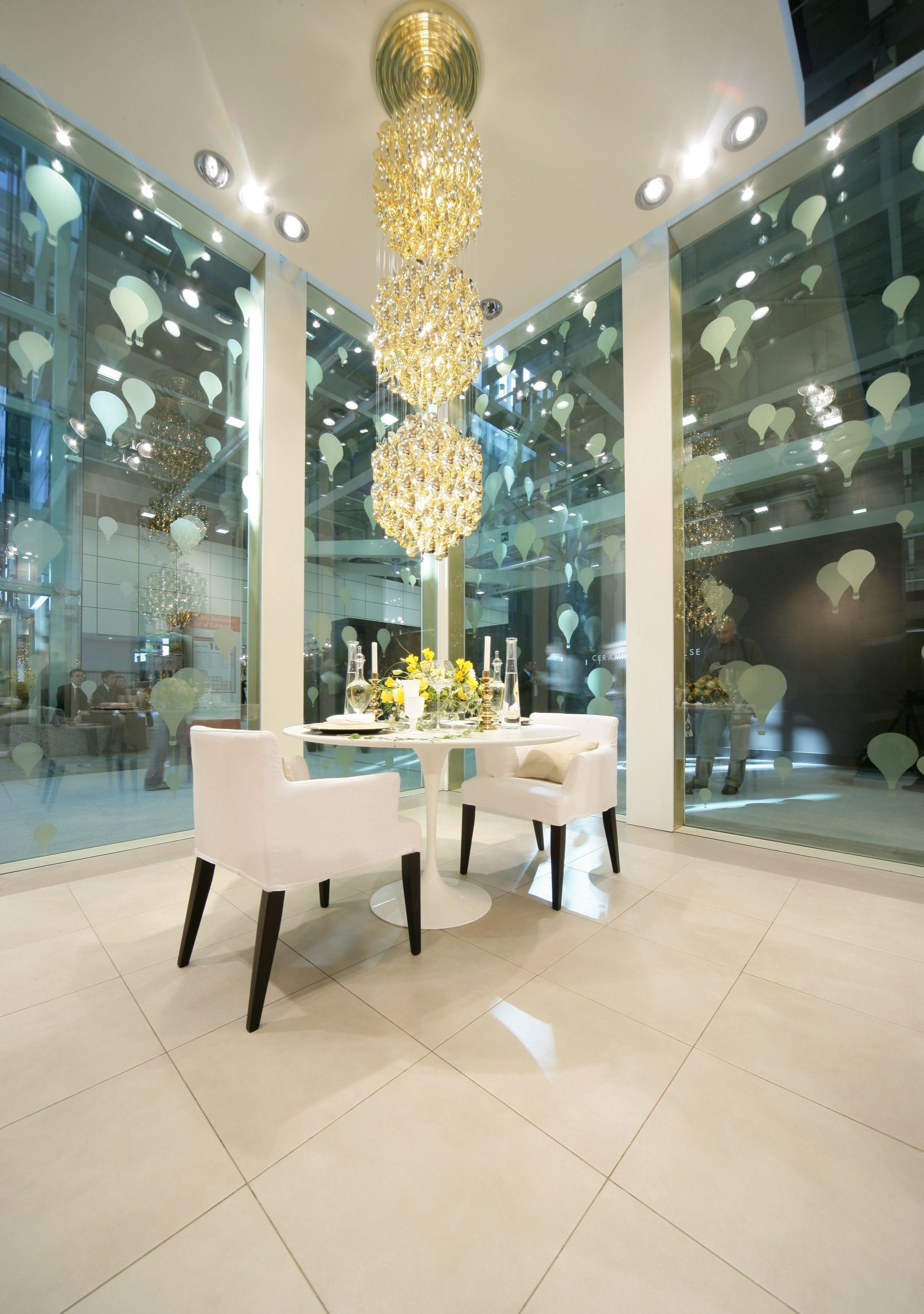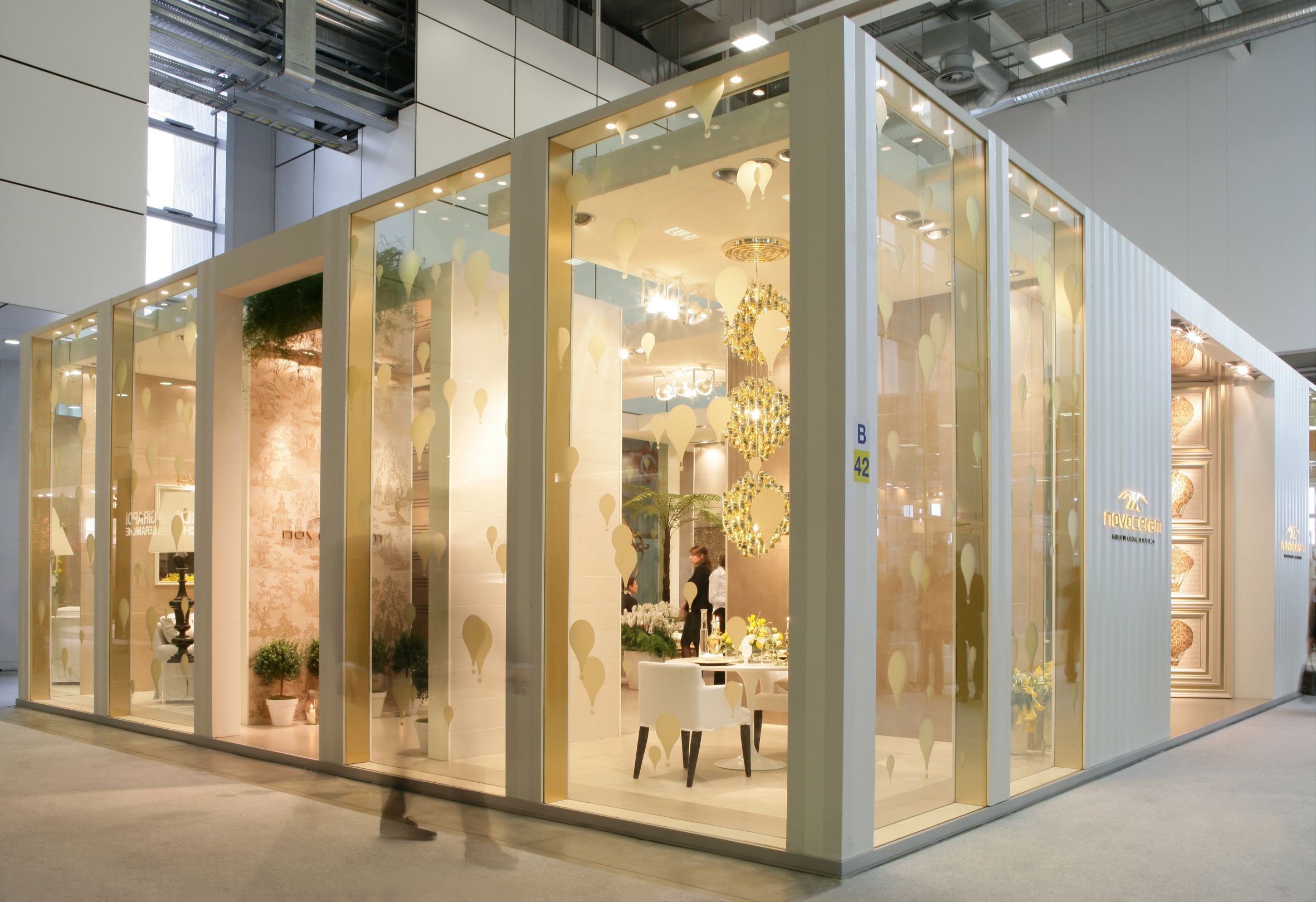 L’audacia è il vero fil rouge di “TrèsOr”: quella delle preziosi superfici di Novoceram di cui è avvolto lo stand, quella del décor di ogni stanza, e quella simboleggiata da un leggero volo di mongolfiere dorate che circondano le pareti di cristallo, e che fanno capolino in tutti i dettagli dell’arredamento.
