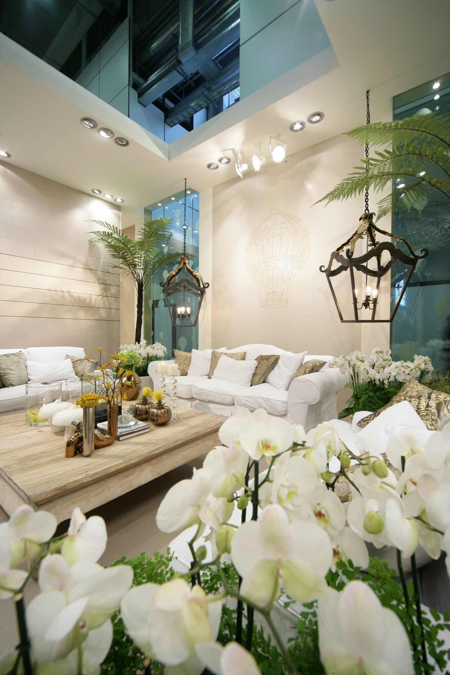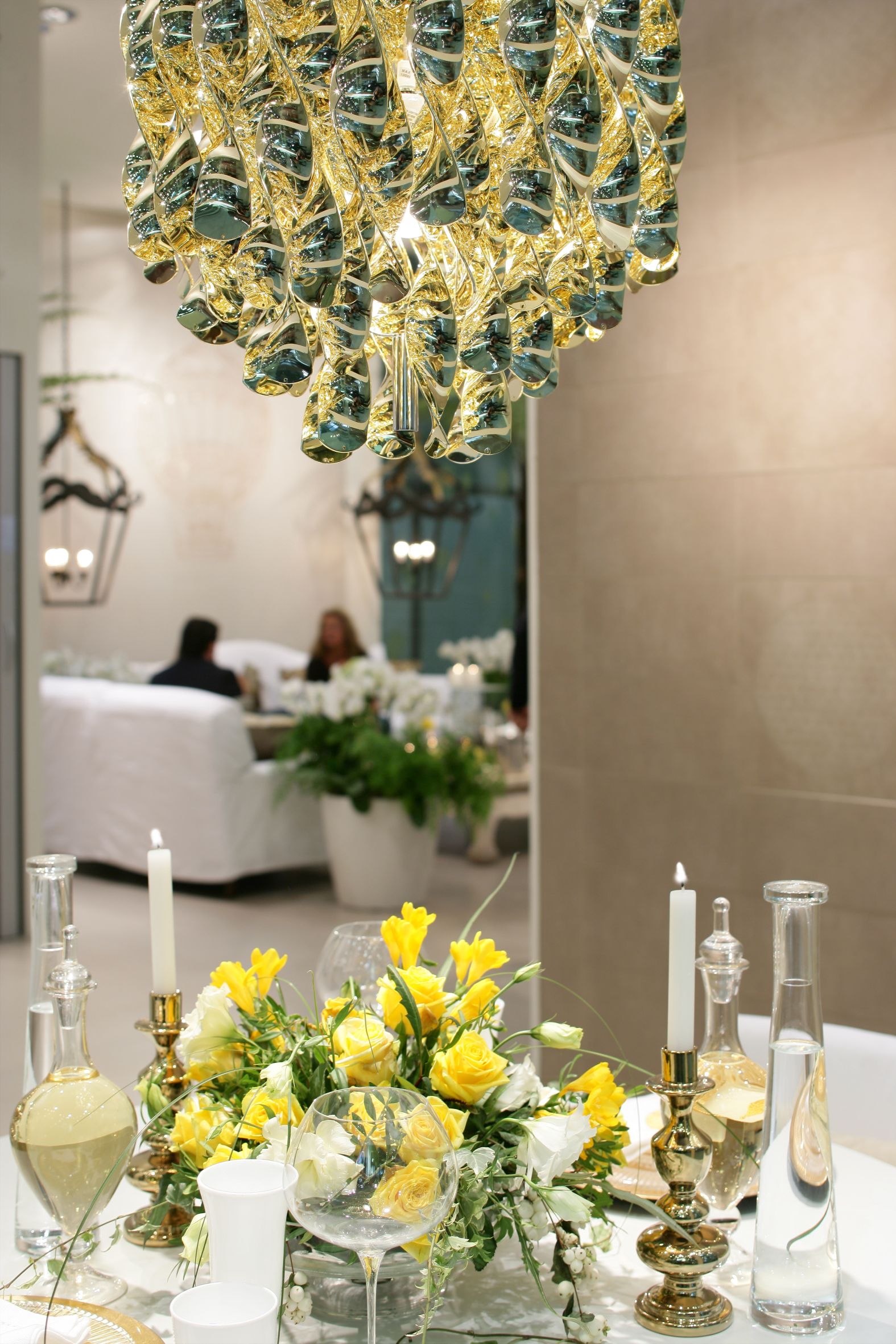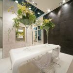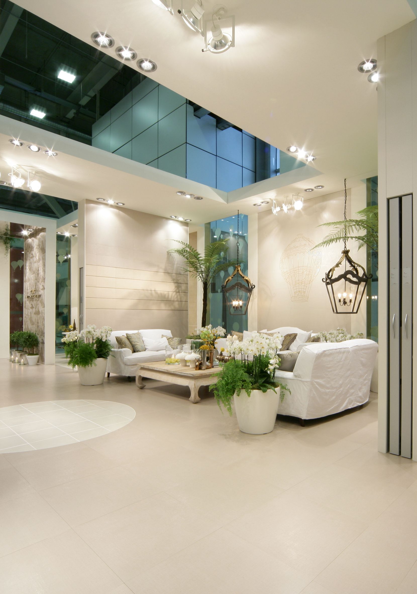 Il percorso dello stand si snoda attraverso una sequenza di ambienti luminosi e scintillanti affacciati su un grande living invaso di orchidee bianche dove Novoceram ha voluto evocare tutto il fascino dello stile francese con un allestimento audace e sontuoso che continua il percorso di scoperta dei diversi modi di abitare “à la française” iniziato con lo stand Coté Charme e proseguito con lo stand Jardin des Sens.