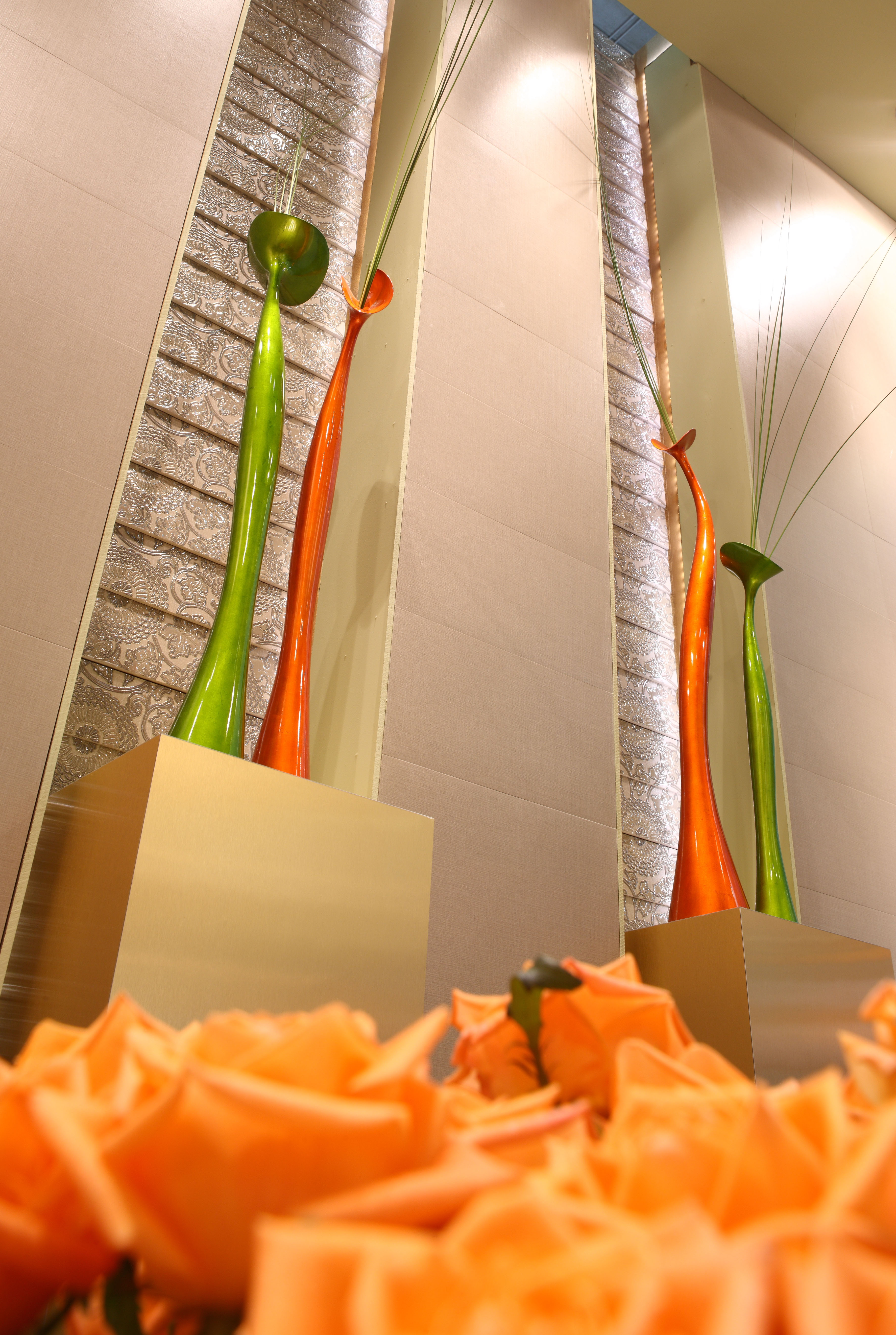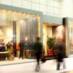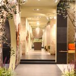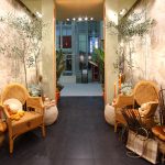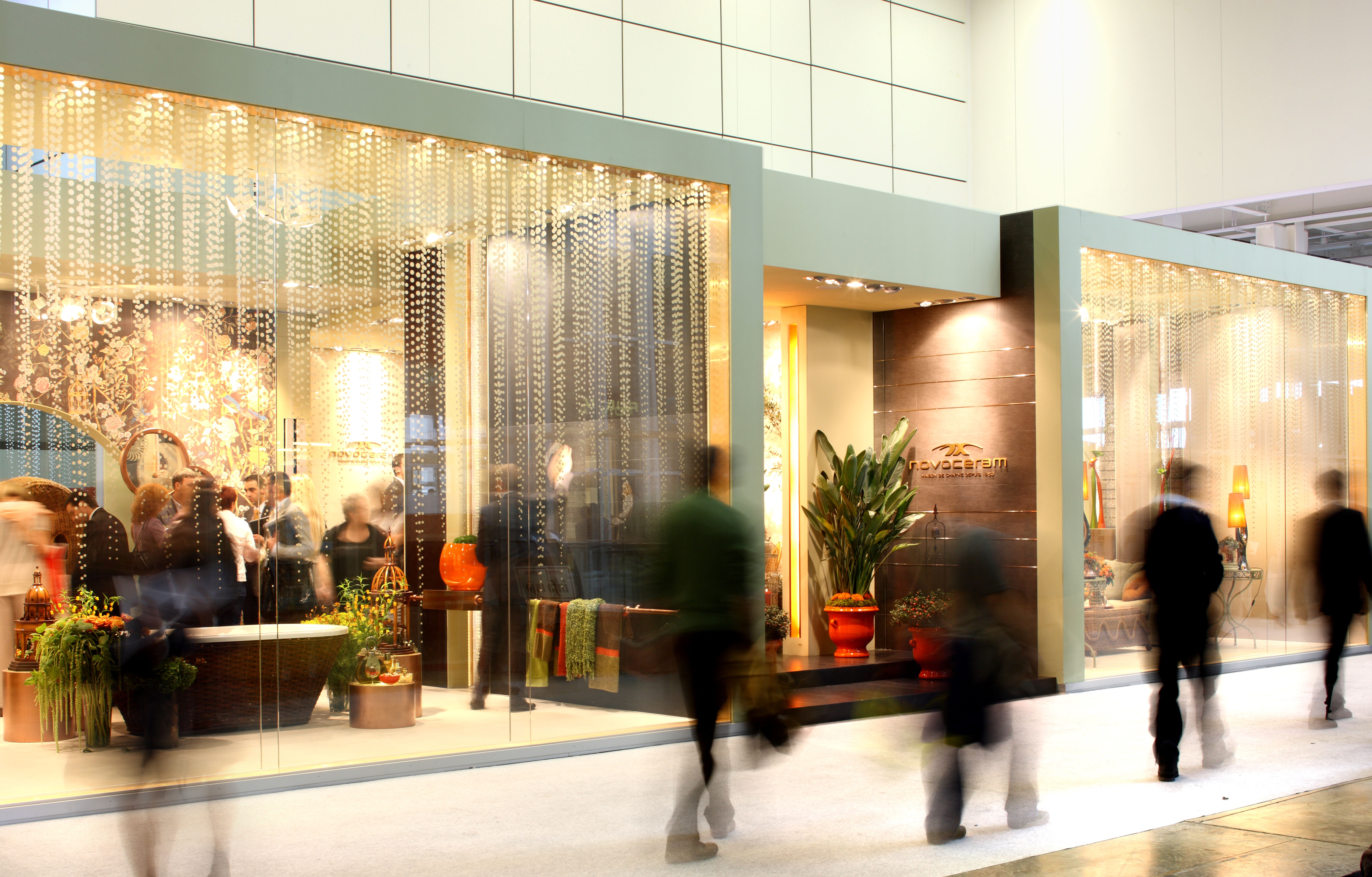 La struttura simmetrica dello stand è enfatizzata dalla presenza di due grandi portali circolari, centrati sulle vetrine come occhi in un binocolo: un piccolo omaggio al geniale architetto ungherese Antti Lovag che con le linee arrotondate del Palais Bulle di Pierre Cardin ha trasformato la silhouette di Théoule-sur-Mer in un inno all’immaginazione, e che ha sviluppato una interessante teoria sull’utilizzo delle forme circolari nell’architettura la cui influenza si ritrova in molte abitazioni costruite negli anni settanta in tutta la Provenza.