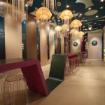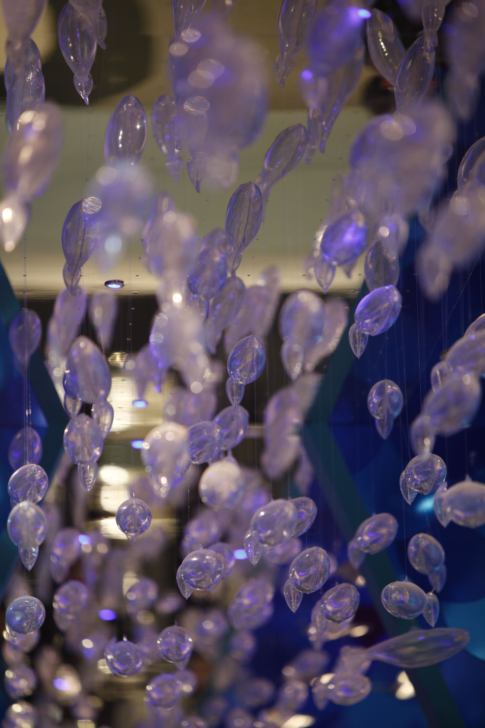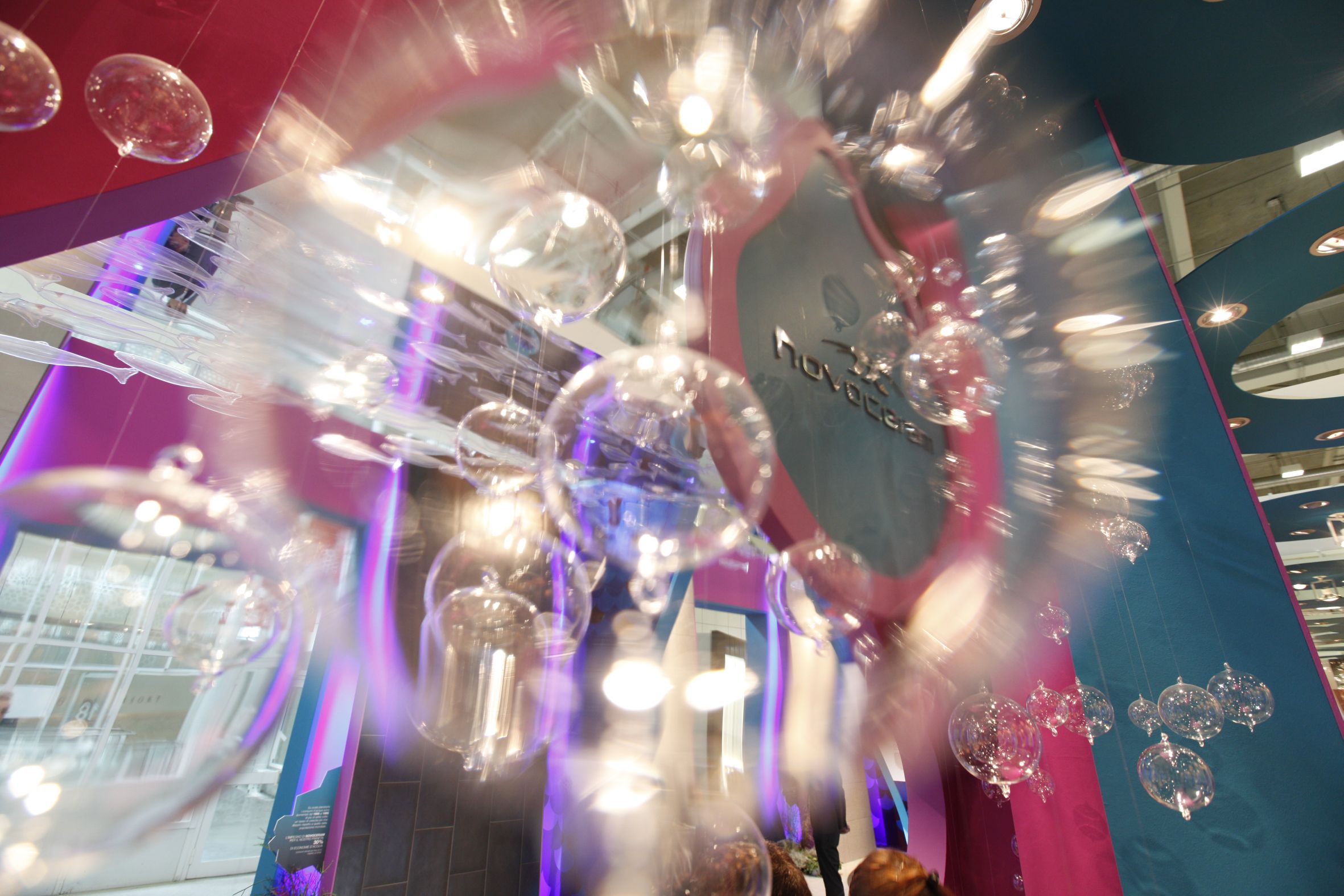Una cascata di bolle di vetro avvolge le collezioni della griffe, Moon, Patio, Esprit e Cristal come migliaia di bolle d’ossigeno che risalgono in superficie, per ricordare che l’acqua e il suo universo non sono soltanto la metafora di una natura da proteggere, ma soprattutto la testimonianza dell’impegno costante nella preservazione di questa risorsa preziosa da parte di Novoceram