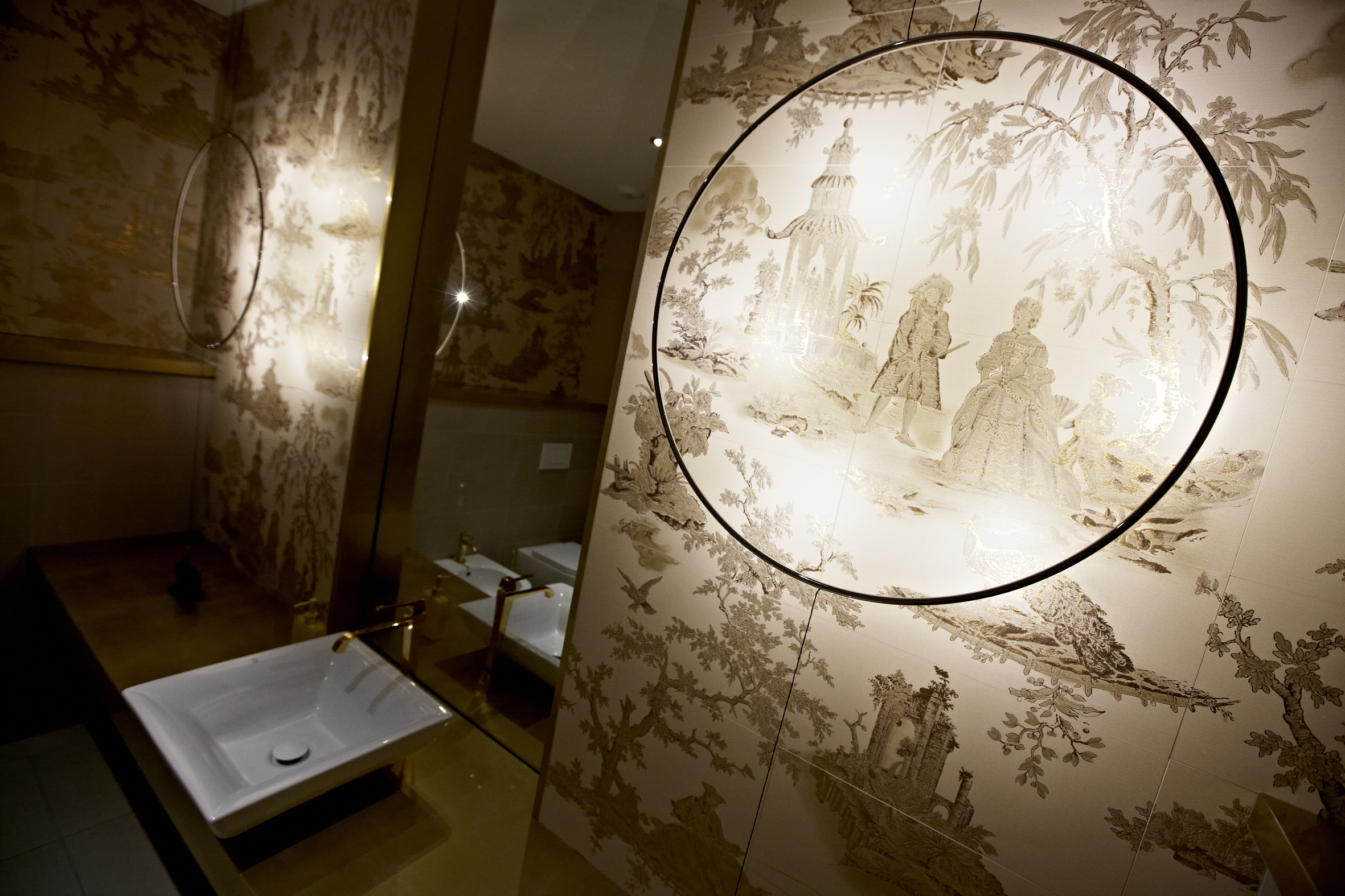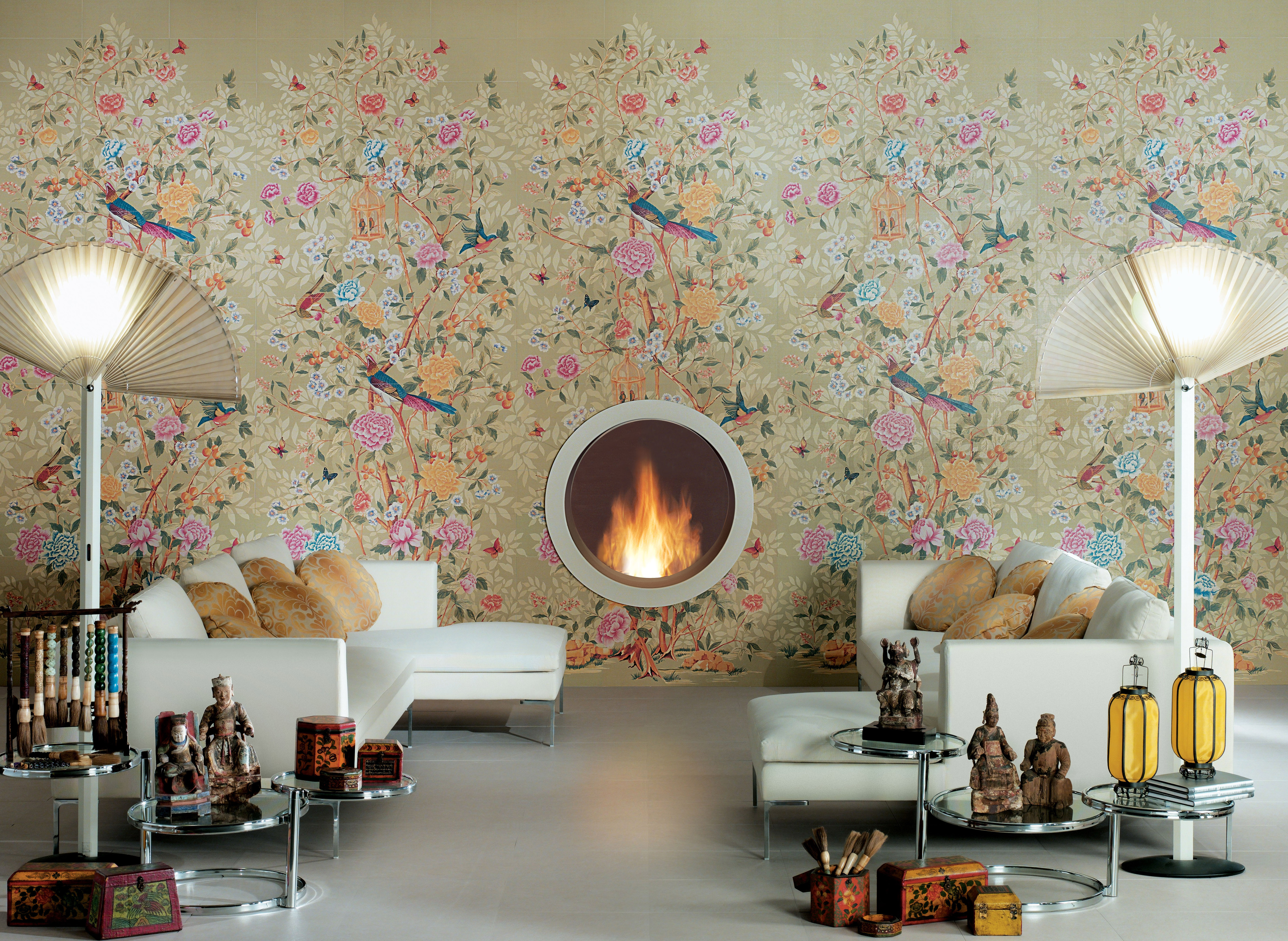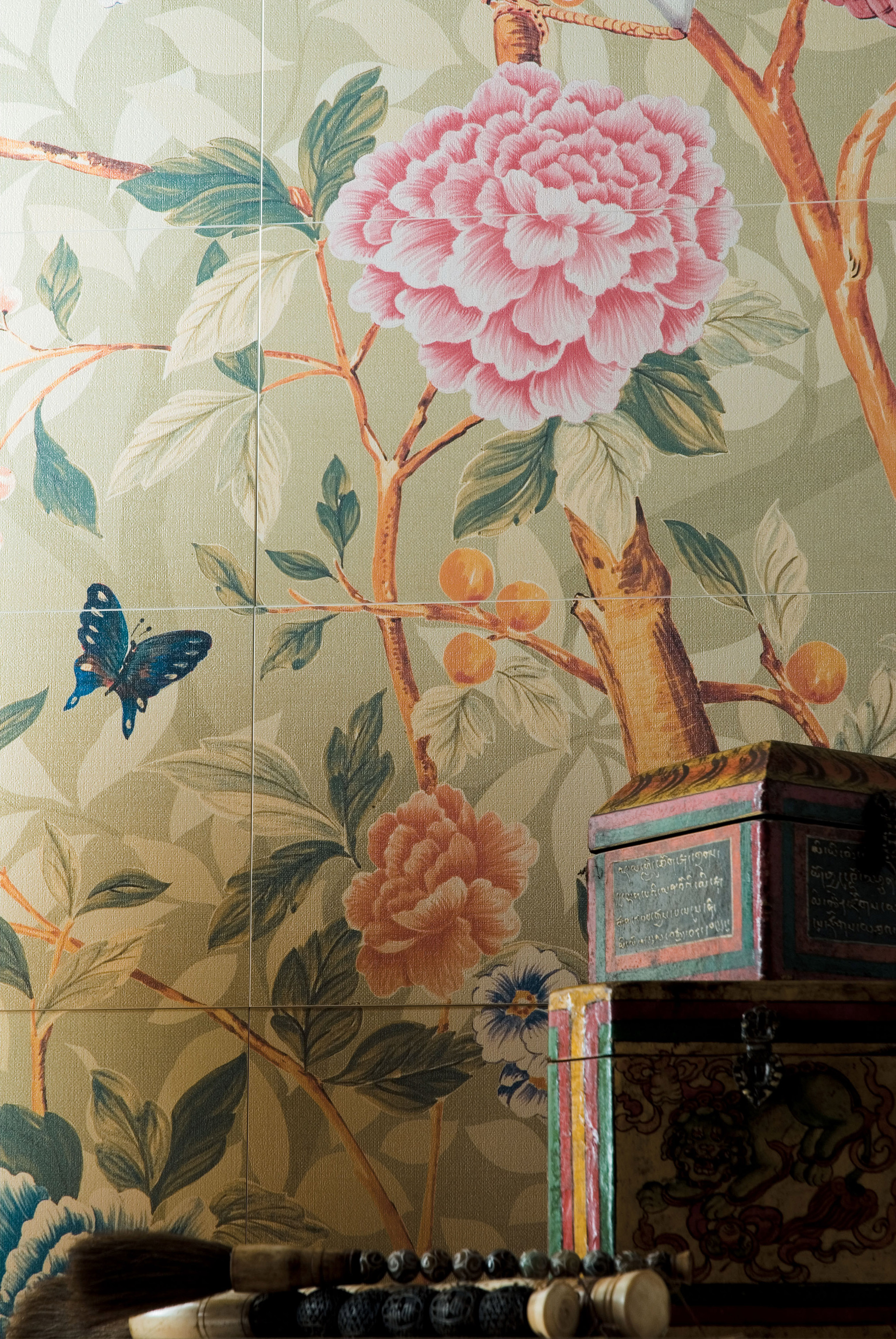 Le Piastrelle Effetto Carta da Parati di Novoceram uniscono l’eleganza intramontabile della tappezzeria ai vantaggi tecnici della Ceramica. Florilège rievoca il fascino dei motivi orientali tipici della tappezzeria del XVIIesimo secolo ed è una composizione di piastrelle di formato 135x180cm a pasta bianca che dona, attraverso la finezza e leggerezza di colore, un tocco esotico alle pareti della sala da bagno, del salone o della cucina. TrèsJouy è un prezioso accostamento di piastrelle a pasta bianca di formato 90x135cm ; ispirato dal tessuto Toile de Jouy, sa esaltare le pareti d’interni con un sottile gioco di luce e oro, per creare uno scrigno prezioso, sofisticato ed elegante. Con uno stile più orientaleggiante, Aquarium, un accostamento di piastrelle in grès porcellanato di 90x135cm, trasmette invece un’atmosfera zen e rilassante. Dai colori neutri e rasserenanti, queste piastrelle Effetto Carta da Parati raffiguranti delle carpe Koï, trasformano la sala da bagno in un santuario del benessere.