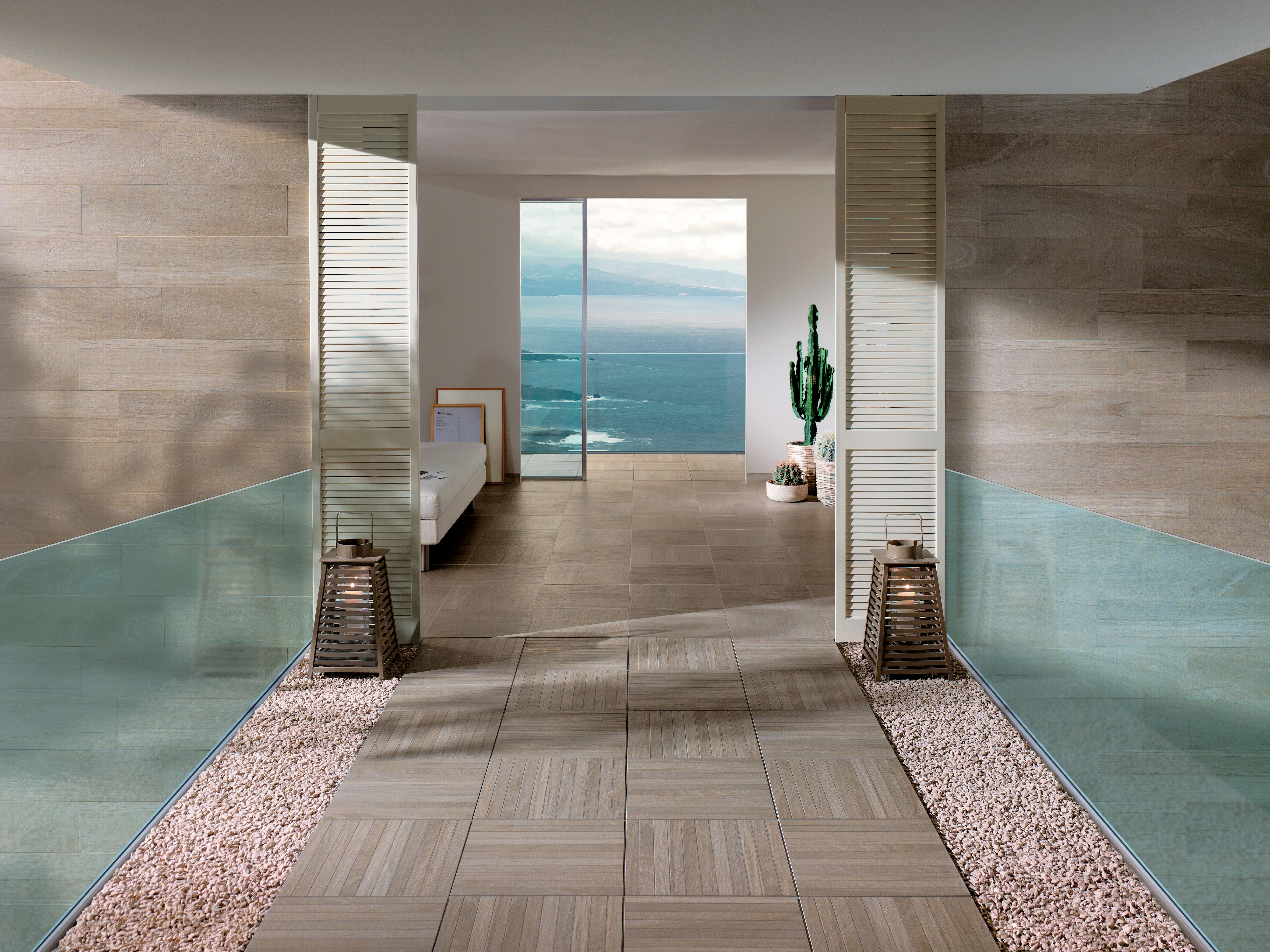 Noa rappresenta l’evoluzione del legno ceramico, con un’interpretazione ipernaturalistica di tre essenze naturali trattate che identificano altrettanti stili abitativi: Naturel, un rovere spazzolato caratterizzato da una cadenza particolarmente neutra e naturale. Flotté, un rovere spazzolato e oliato con sfumature di grigio. Bruni, un noce che richiama i pavimenti antichi recuperati.