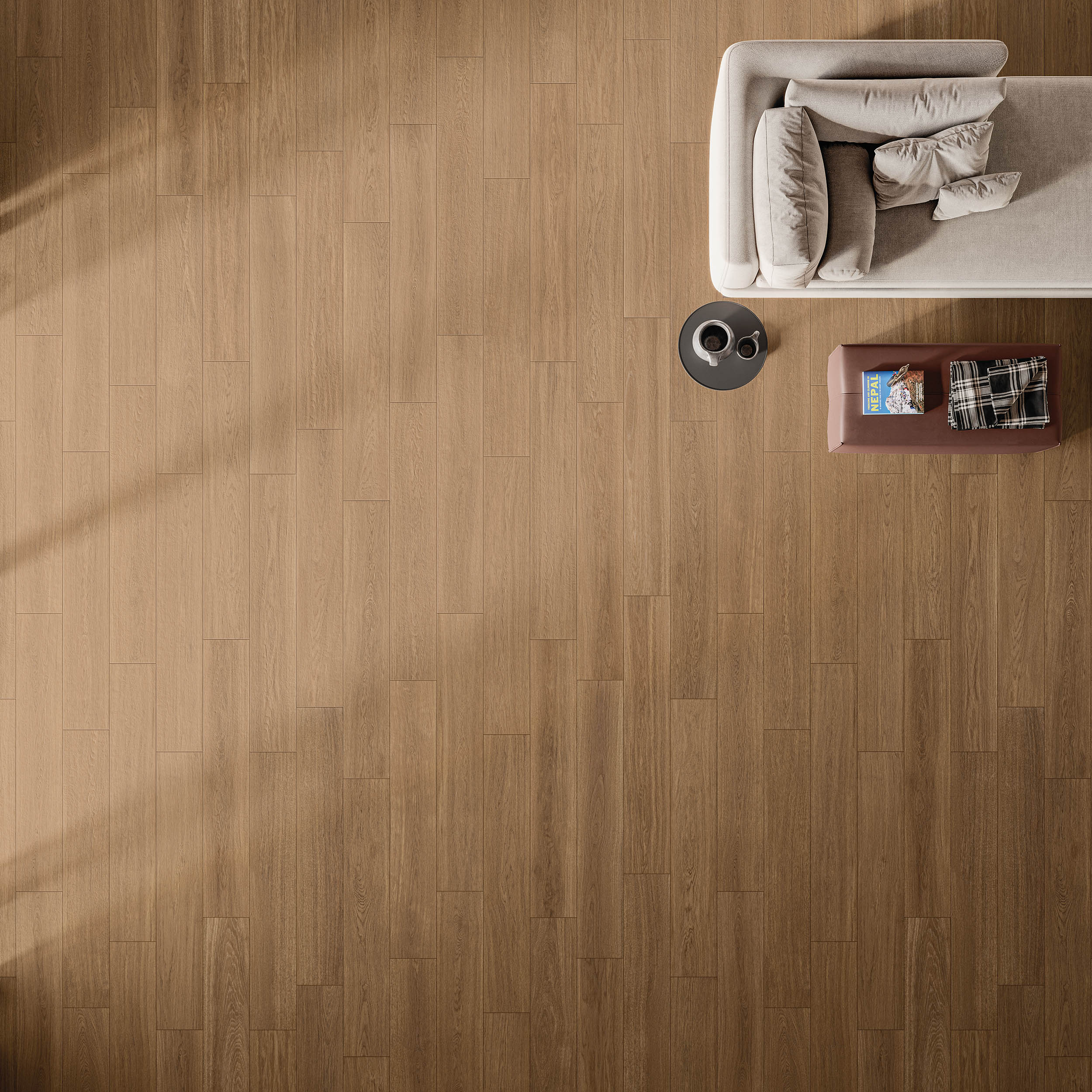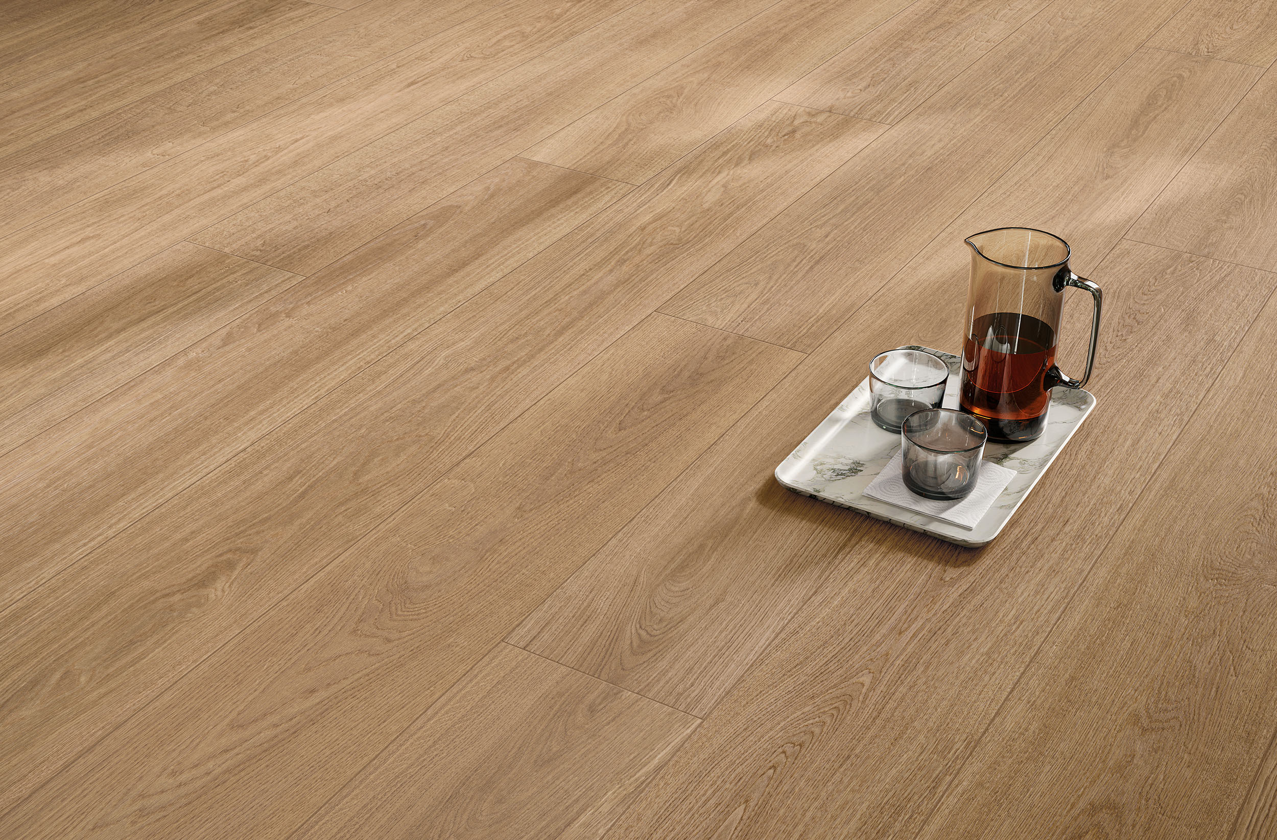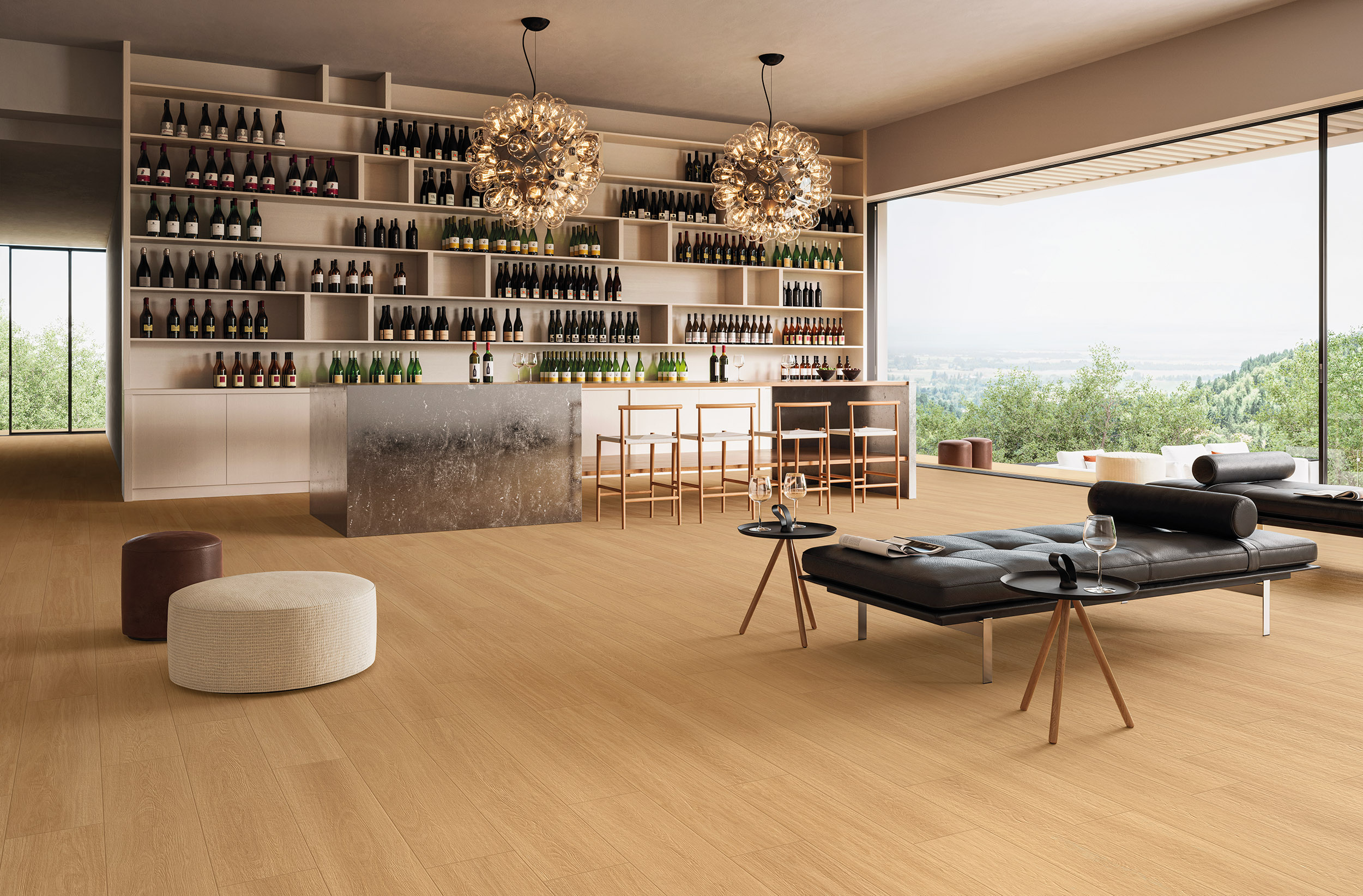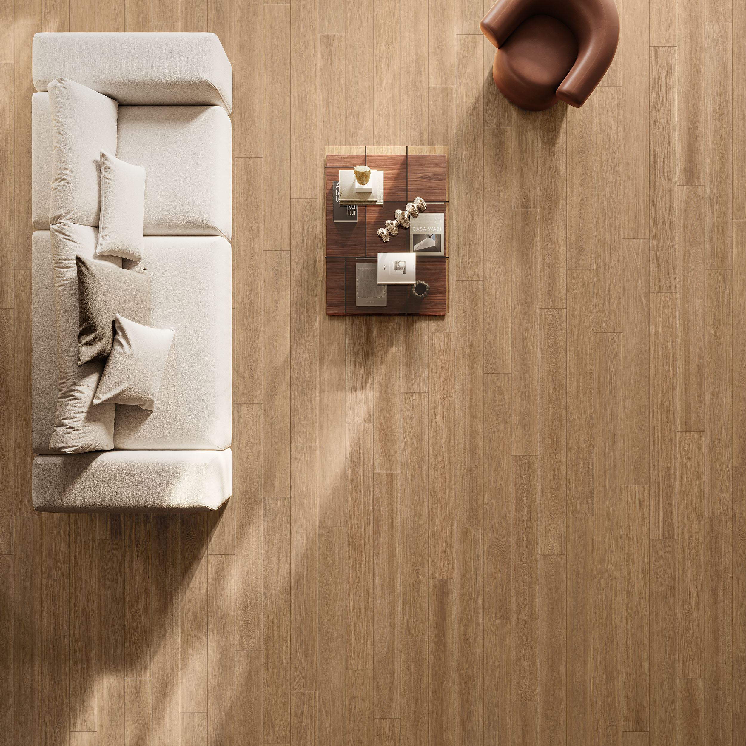 Il risultato di questa selezione è una piastrella effetto legno dal design minimal, ideale per ricreare superfici di tono uniforme, ma che a uno sguardo più ravvicinato rivela i tanti dettagli che caratterizzano il legno di rovere come la fine grana delle venature sottili e le leggere sfumature di chiaroscuro. che conferiscono grande profondità a un prodotto dal gusto contemporaneo.