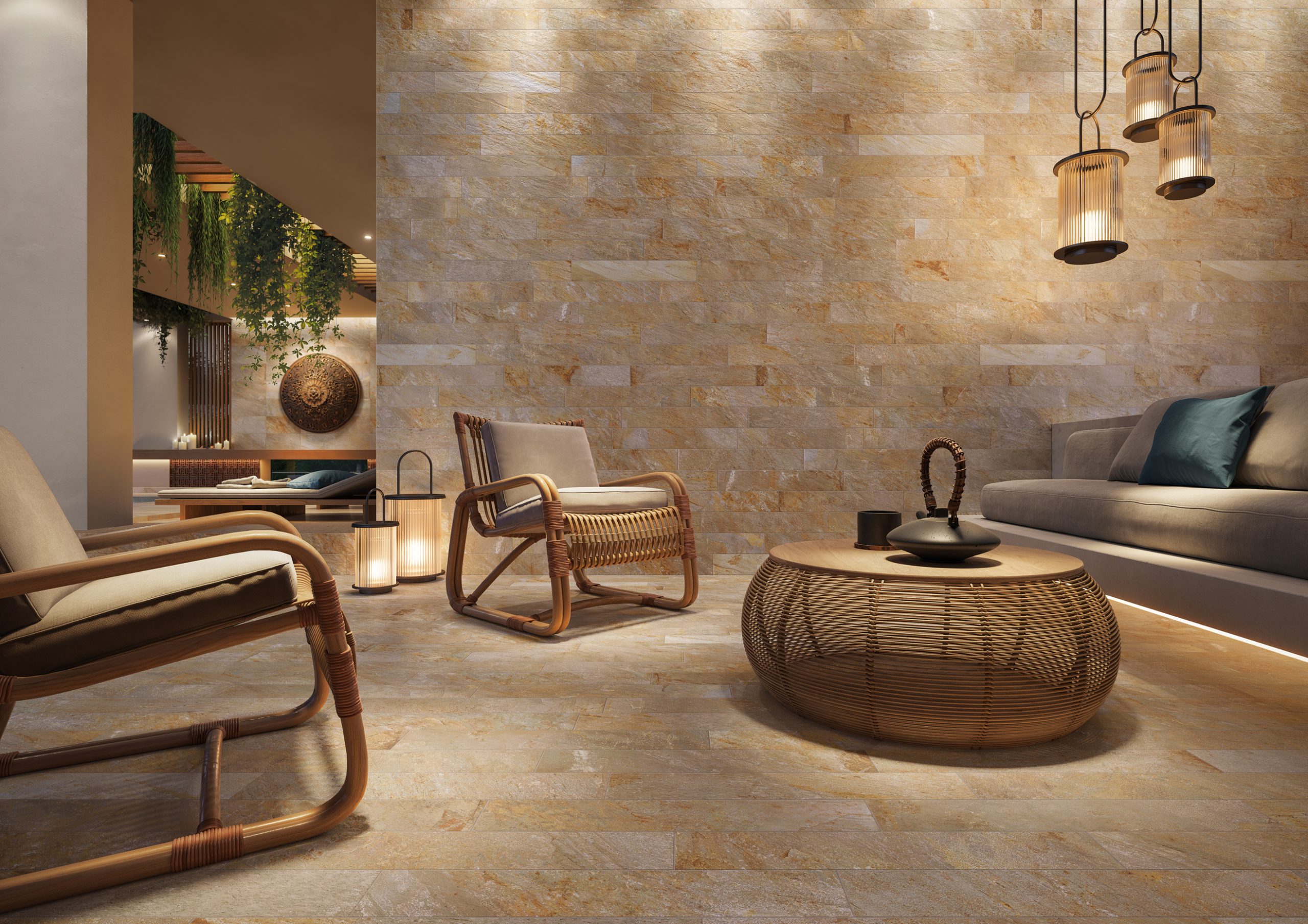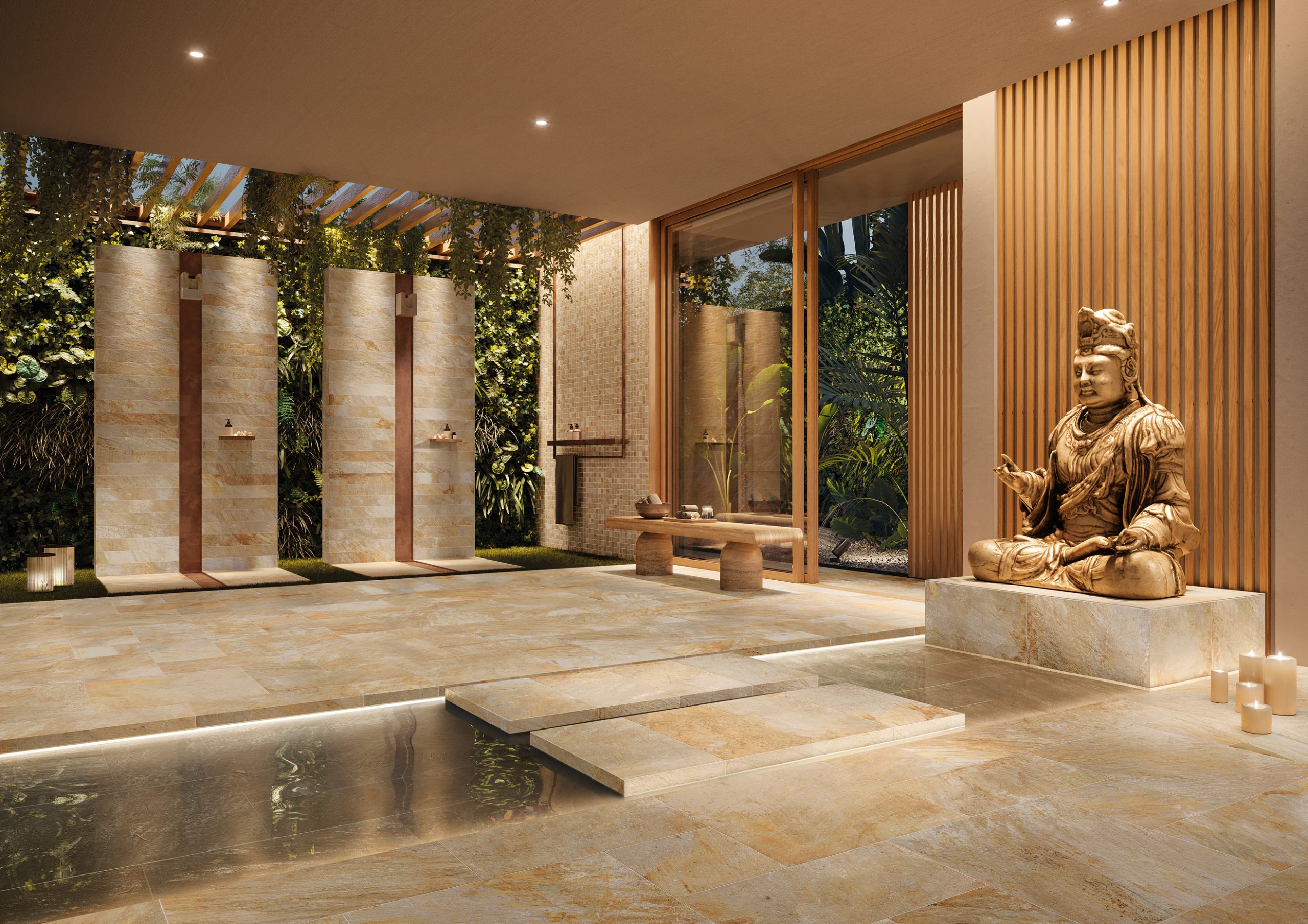 Novoceram, produttore francese di ceramica dal 1863, presenta una collezione di piastrelle in gres porcellanato colorato in massa per interno ed esterno ispirata alla pietra di Bali.