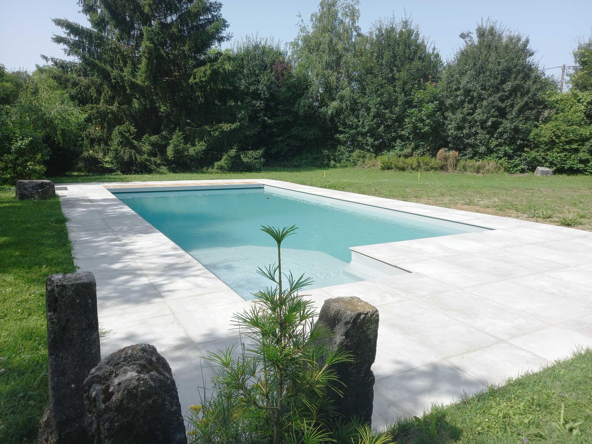 Per rivestire la terrazza della piscina, abbiamo scelto la nostra collezione 80×80 Outdoor Plus 20mm Château. Il suo aspetto autentico e la sua finitura resistente la rendono una soluzione ideale per modernizzare l’esterno.