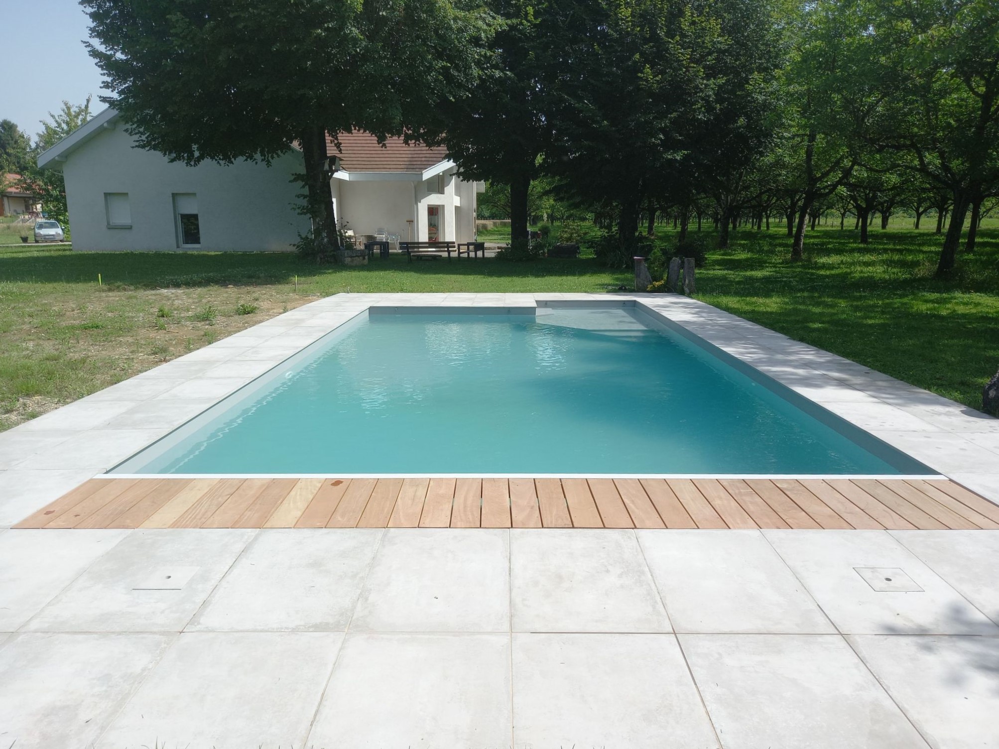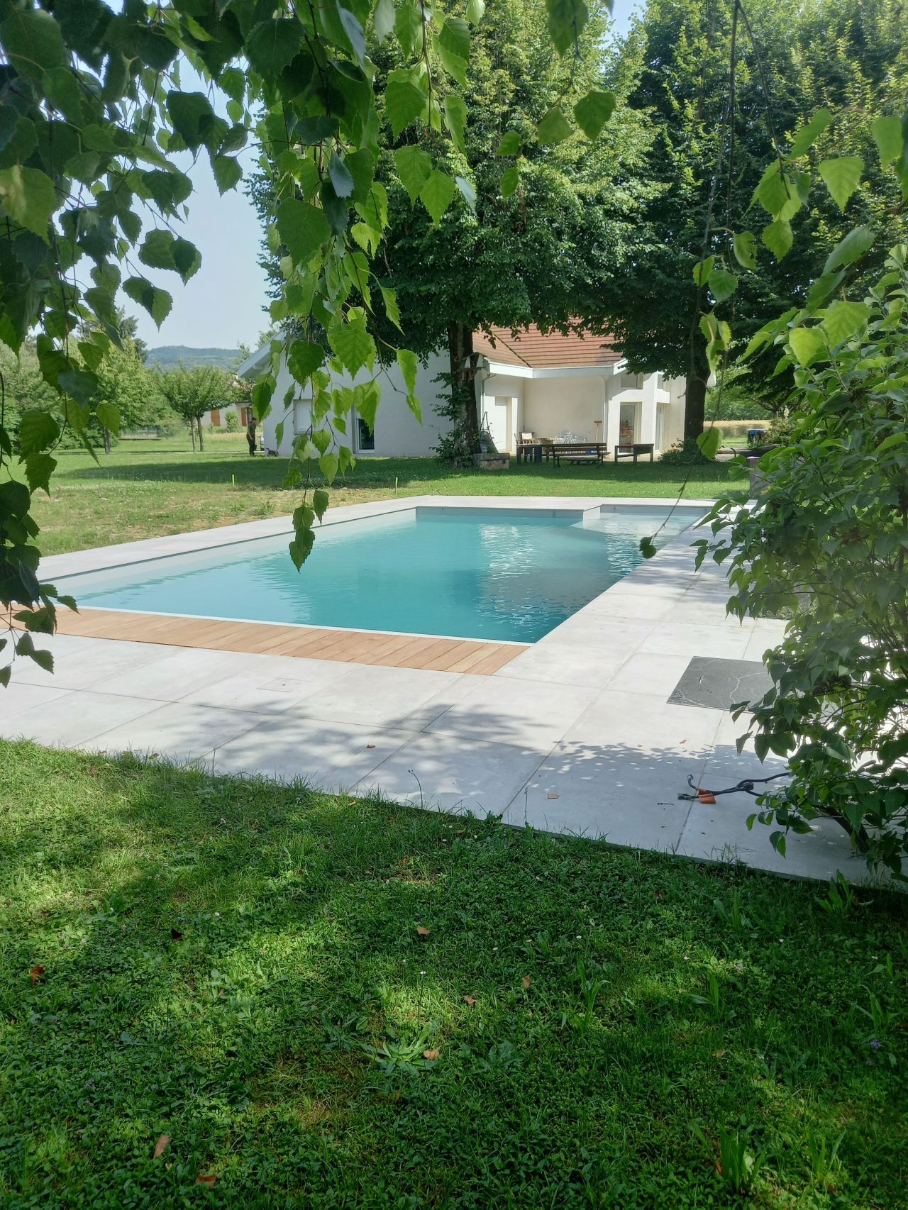 Questa piscina, completamente ridisegnata da Samuel Bazzoli Paysage, si integra perfettamente con il verde circostante. Circondata da alberi ad alto fusto e da una vegetazione lussureggiante, offre un ambiente rilassante e distensivo.