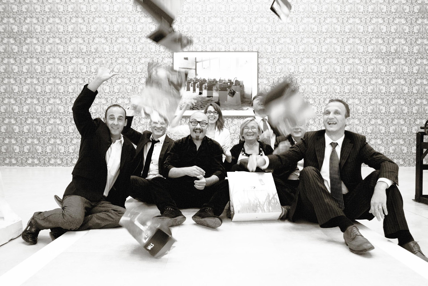 Vista dall’altro della libreria, dove i partecipanti concludono la loro visita sfogliando i cataloghi delle collezioni di Novoceram e utilizzando i computer, uno connesso alla pagina Facebook di Novoceram, l’altro al sito internet. Un terzo PC propone una presentazione della società.