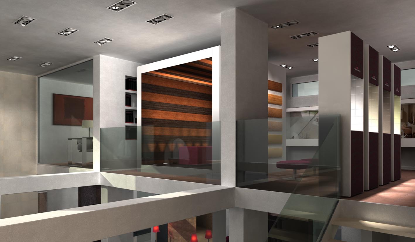 Uno showroom di due piani in uno dei punti più in vista di Cipro, articolato in aree tematizzate. Grandi e vistosi volumi, introdotti da due vetrine a doppia altezza che stupiscono con i loro giganteschi occhi circolari. Un cubo di legno sospeso su un soppalco aereo, per dominare l’interno ed essere visibile a molti metri di distanza, connota lo showroom anche dall’esterno.