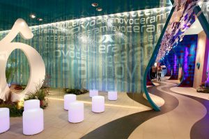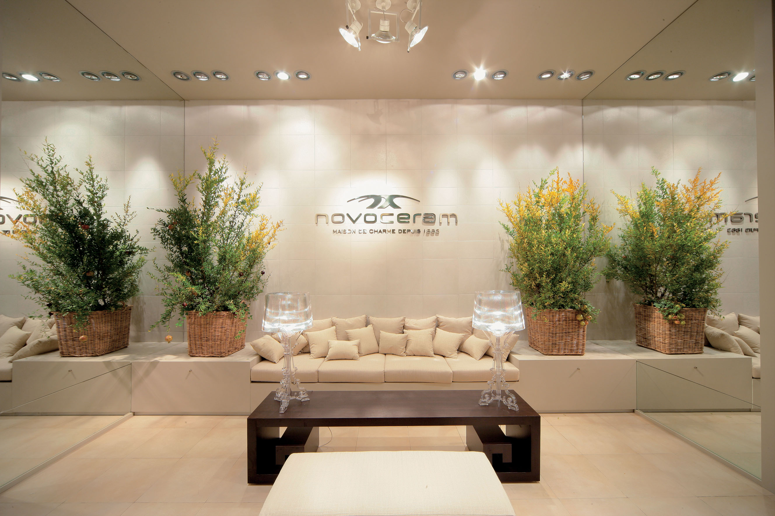 Nei corridoi del Cersaie sboccia un giardino capace di incantare tutti i sensi.Preziosi dettagli racchiusi nella freschezza di un allestimento floreale inventano un’atmosfera magica, dove l’inconfondibile eleganza delle creazioni Novoceram e tutta la filosofia della griffe sono sintetizzate in sei raffinate ambientazioni capaci di evocare tutto il fascino dello stile francese.