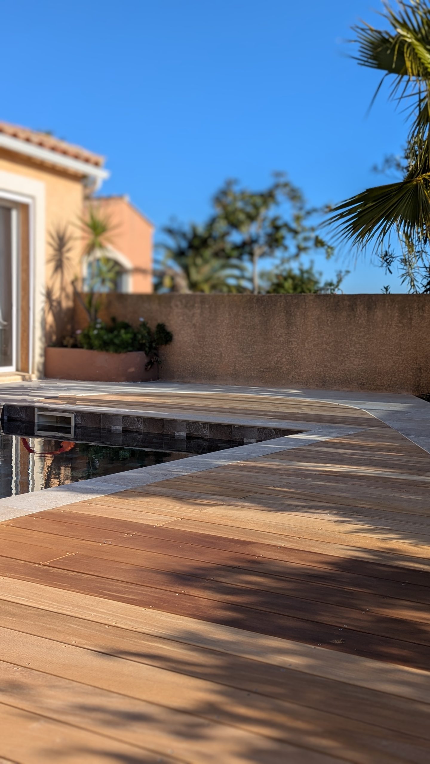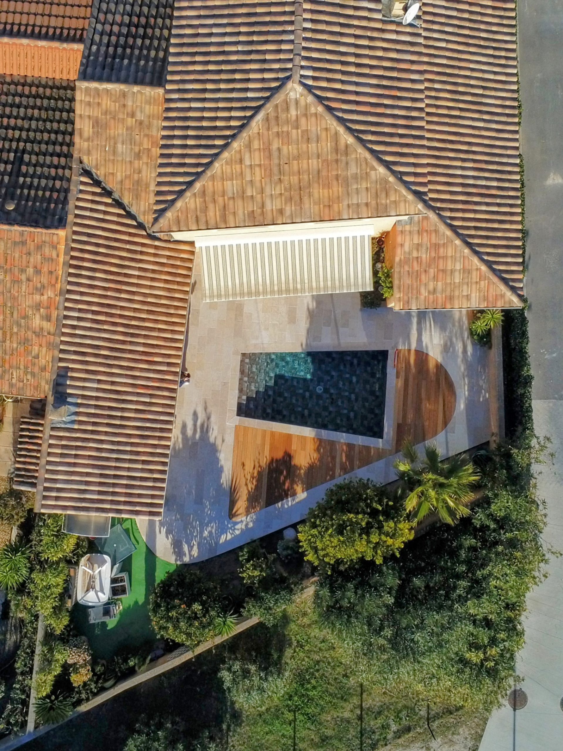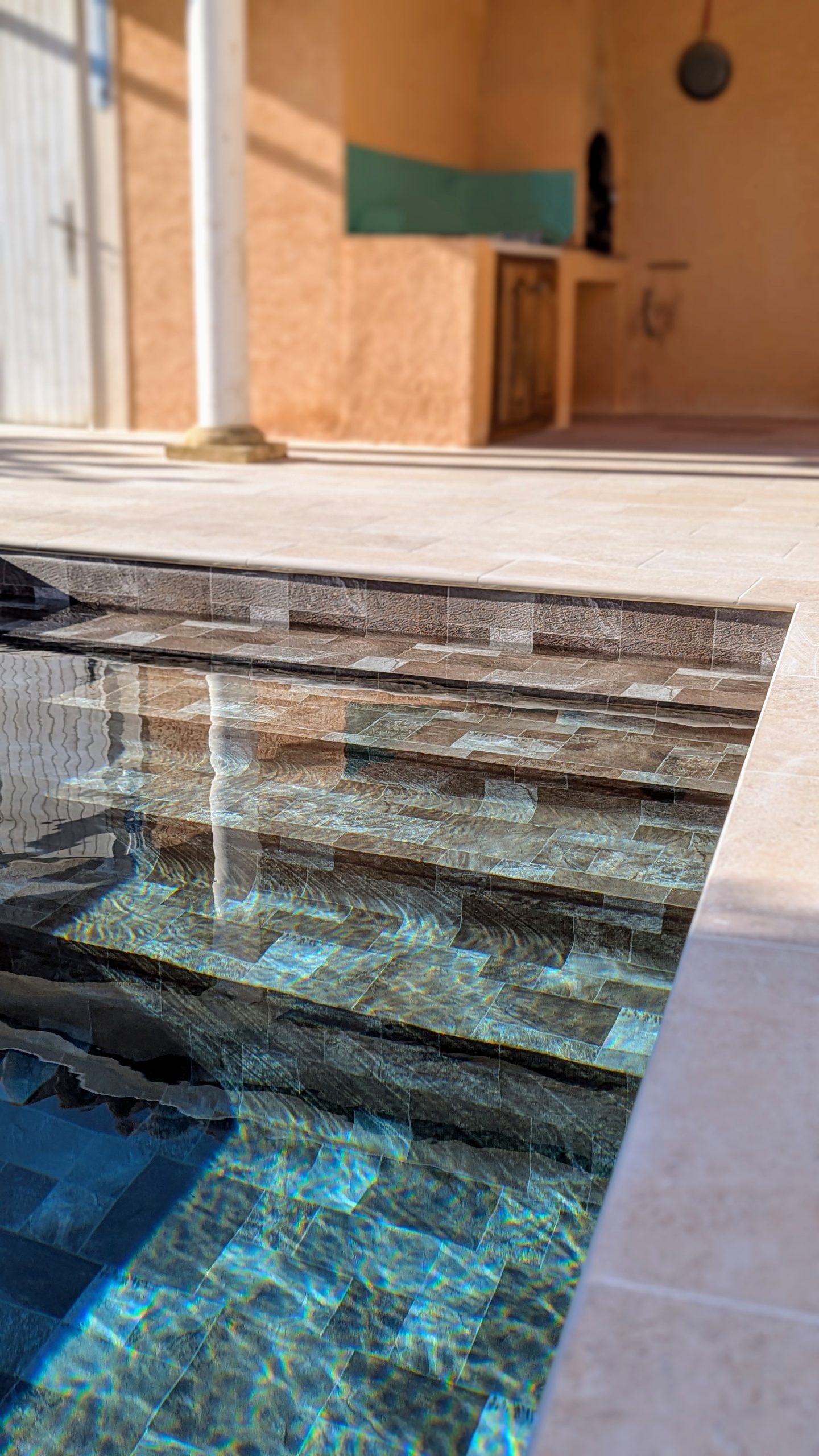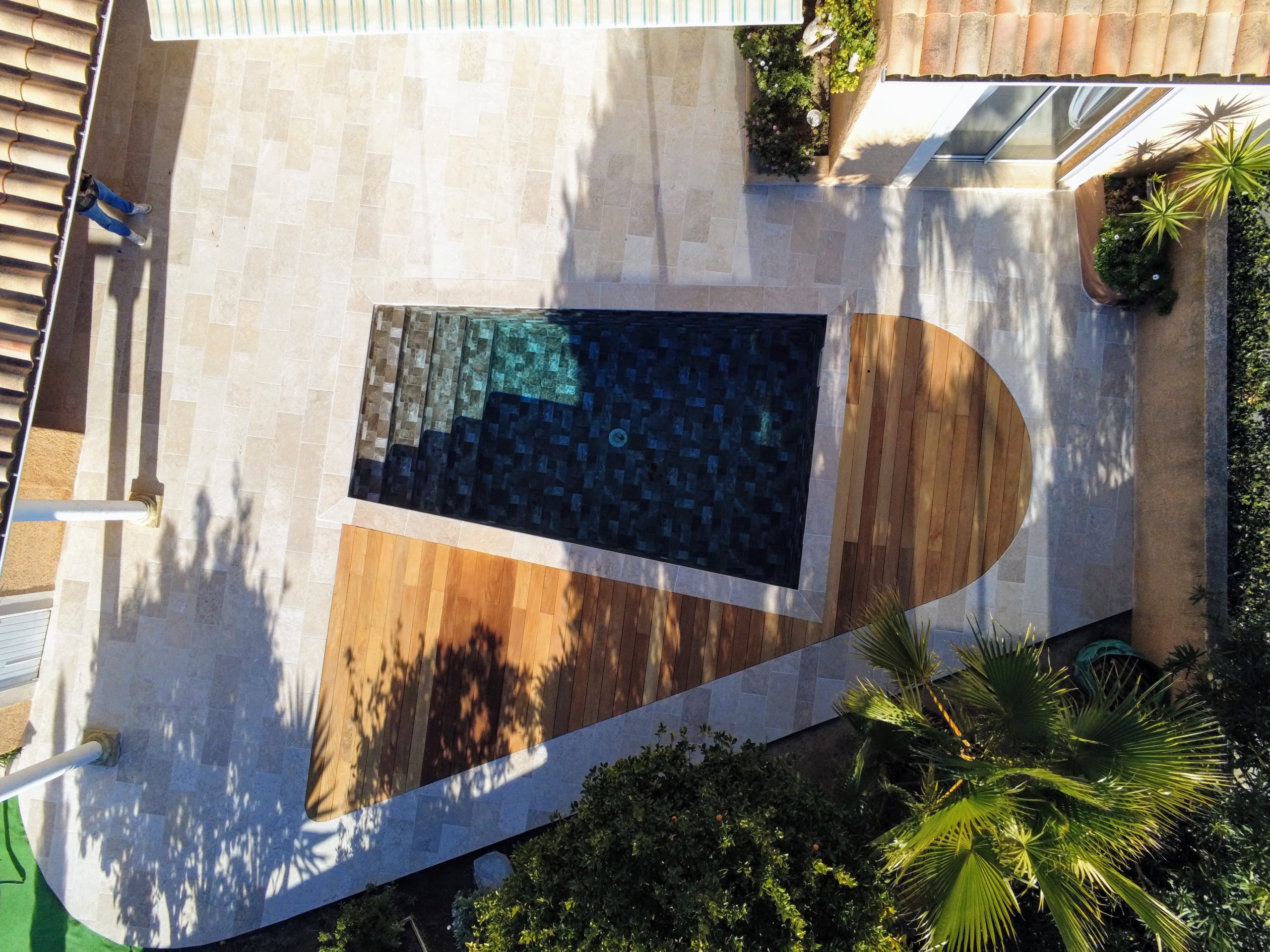 In questa elegante villa nel sud della Francia, le piastrelle effetto travertino della collezione Tiber sono state scelte per valorizzare l’area intorno alla piscina e la terrazza adiacente. Grazie alle sue tonalità tenui e al suo aspetto autentico, si integra armoniosamente con l’architettura mediterranea della casa, con i suoi tetti tradizionali in tegole e gli spazi esterni piantumati. Questo progetto, realizzato da Ametec, mette in risalto l’abbinamento del travertino ceramico con tocchi di legno e una piscina dalle tonalità scure, per un risultato sofisticato e accogliente, ideale sia per il relax che per la socializzazione.