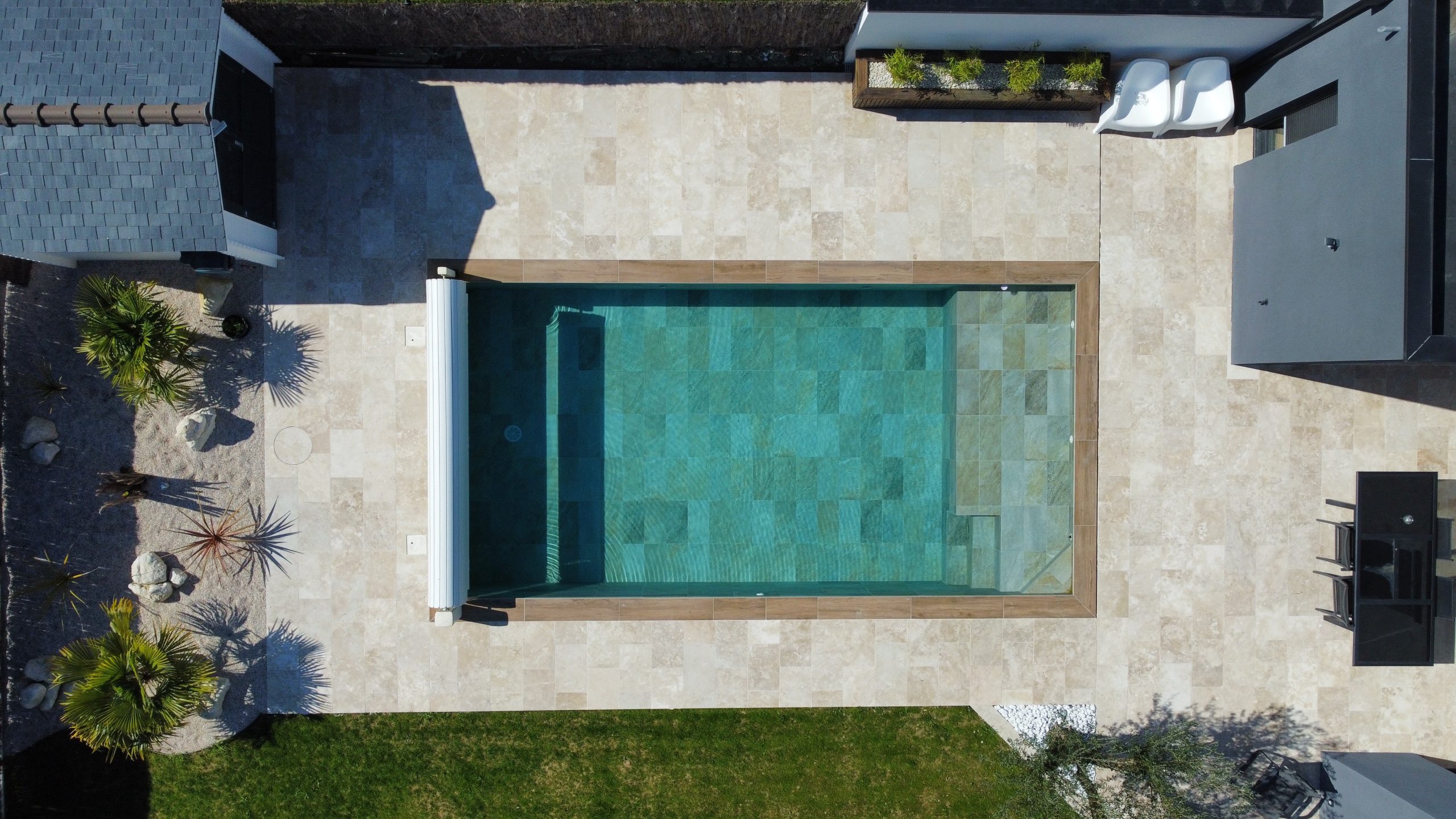 Per questo progetto, GBS Carrelage ha scelto la nostra collezione 30×60 Zéphyr Grey per rivestire l’interno della piscina, aggiungendo un tocco minerale elegante ed esotico. Abbinata a una terrazza in travertino e a un’accurata progettazione paesaggistica, questa piscina si integra perfettamente con l’ambiente circostante. Le sottili sfumature di Zéphyr Grey evidenziano i giochi di luce sull’acqua, creando un’atmosfera rilassante e raffinata.
