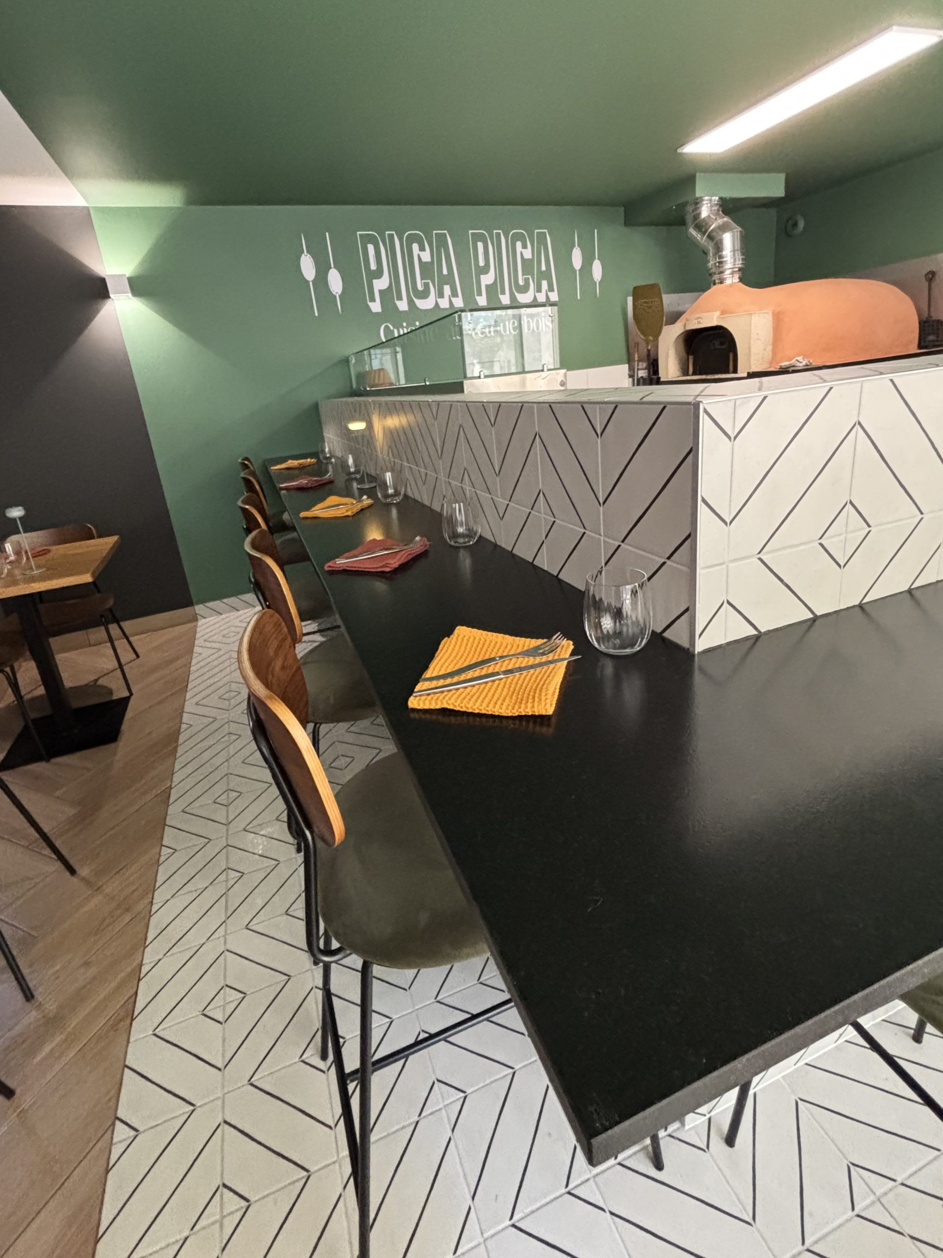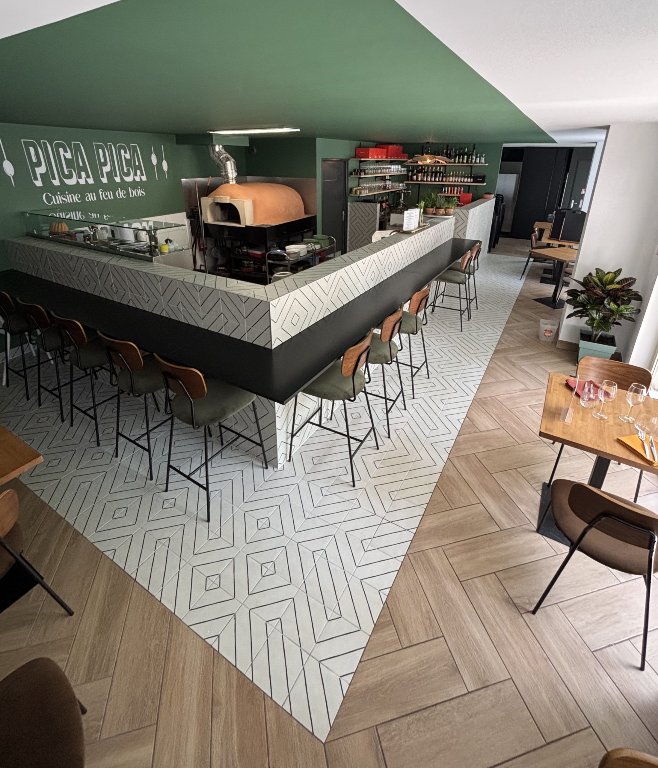 A La Roche-de-Glun, il ristorante PICA PICA è stato oggetto di una ristrutturazione nel 2025, pensata per strutturare gli spazi e affermare al contempo una forte identità visiva.