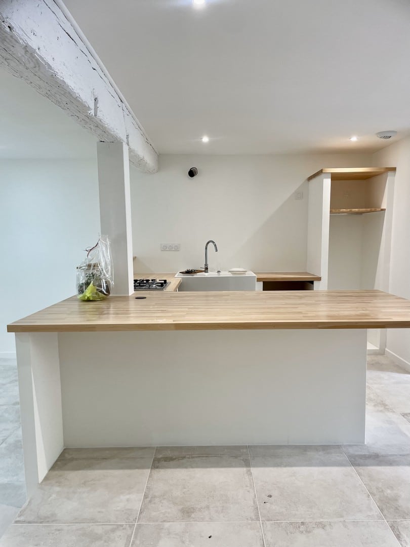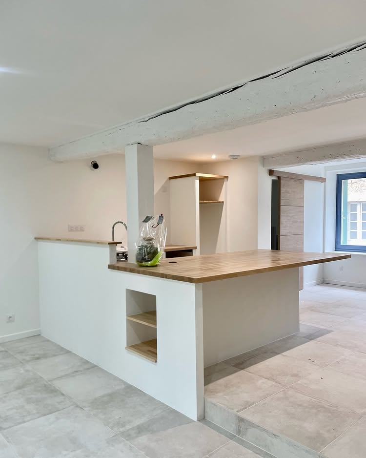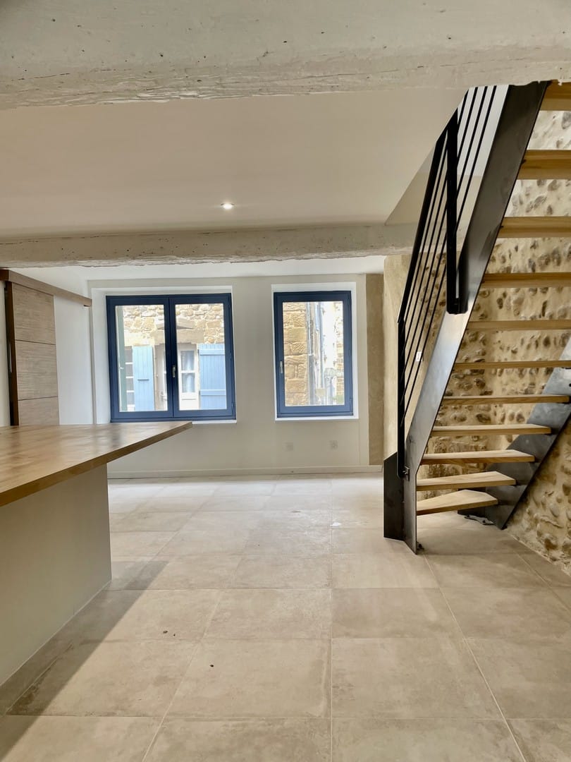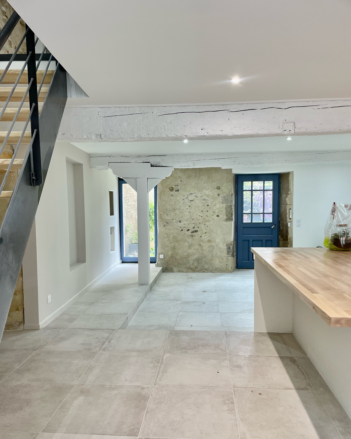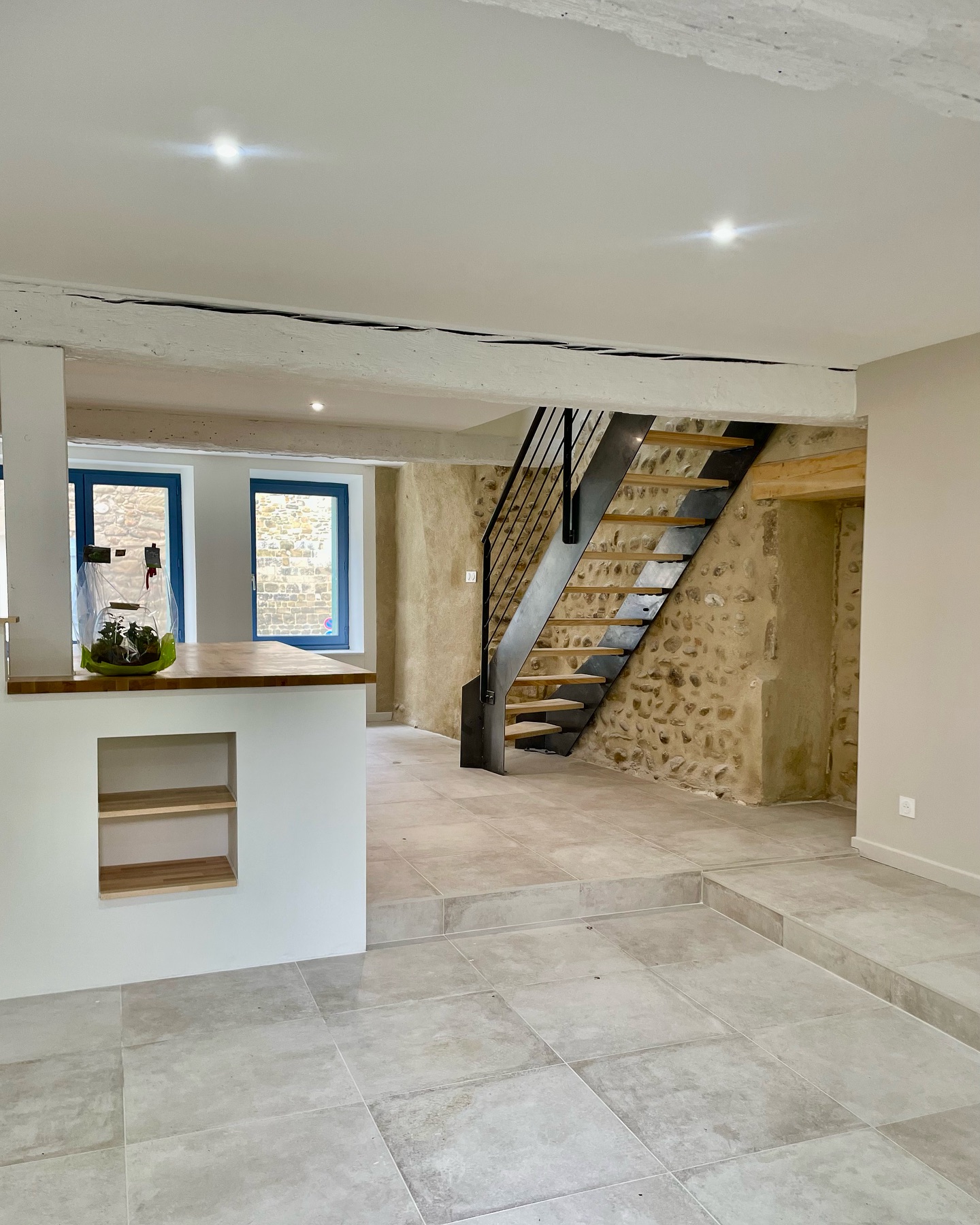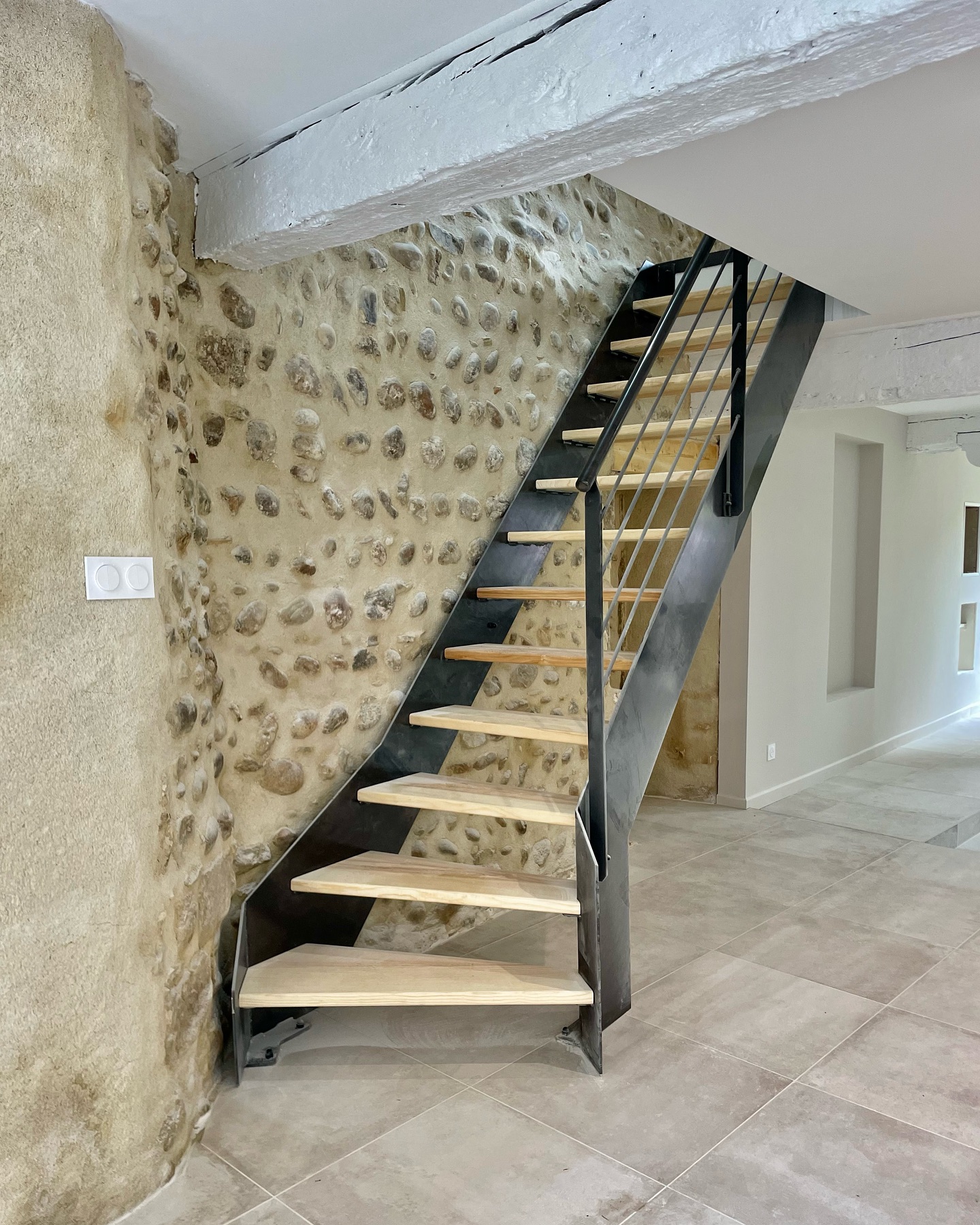 Al piano terra, il pavimento è stato rivestito con la collezione Château Gris di Novoceram. La sua estetica, ispirata alle pietre antiche, si integra naturalmente con l’esistente e accompagna l’autenticità del luogo.
