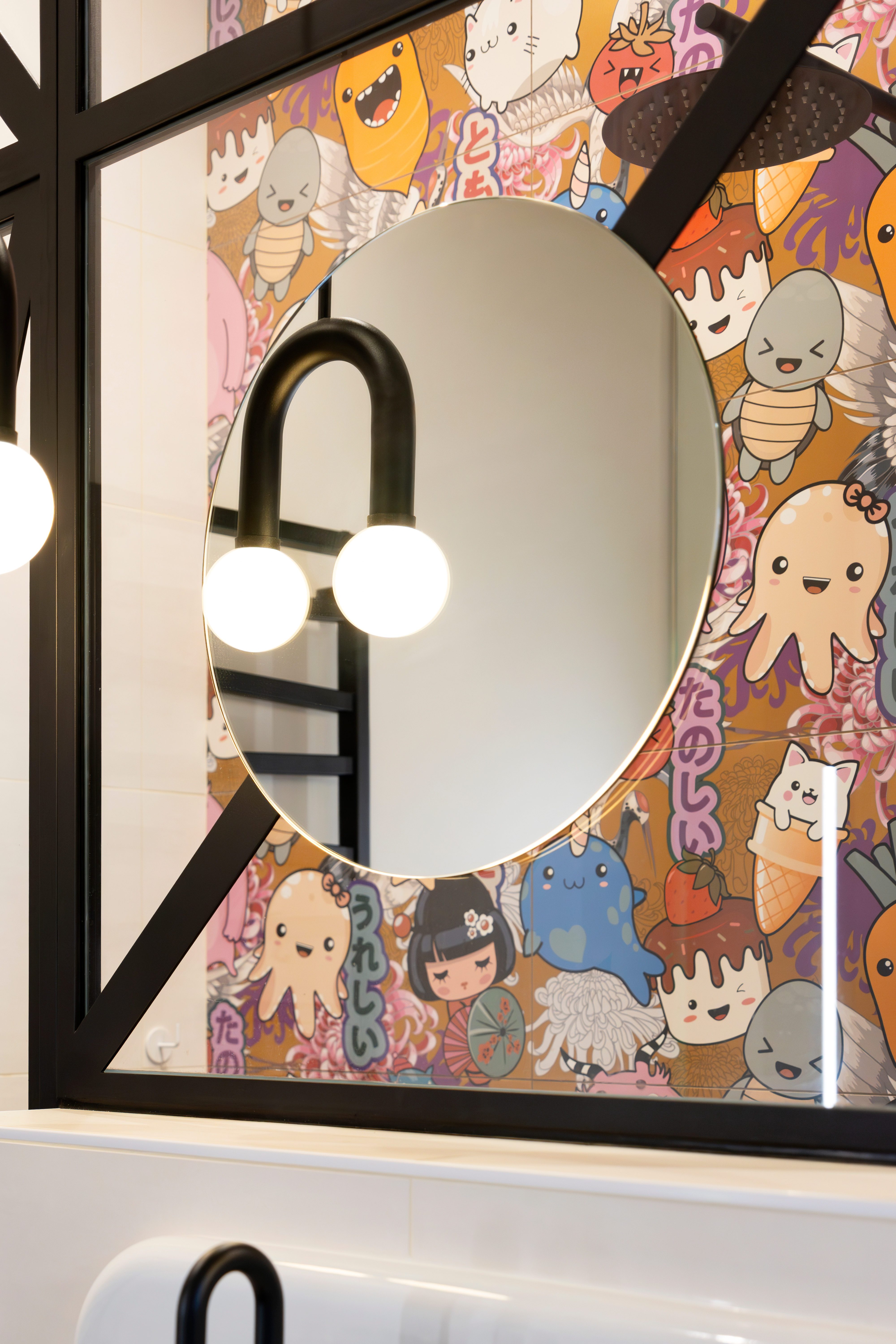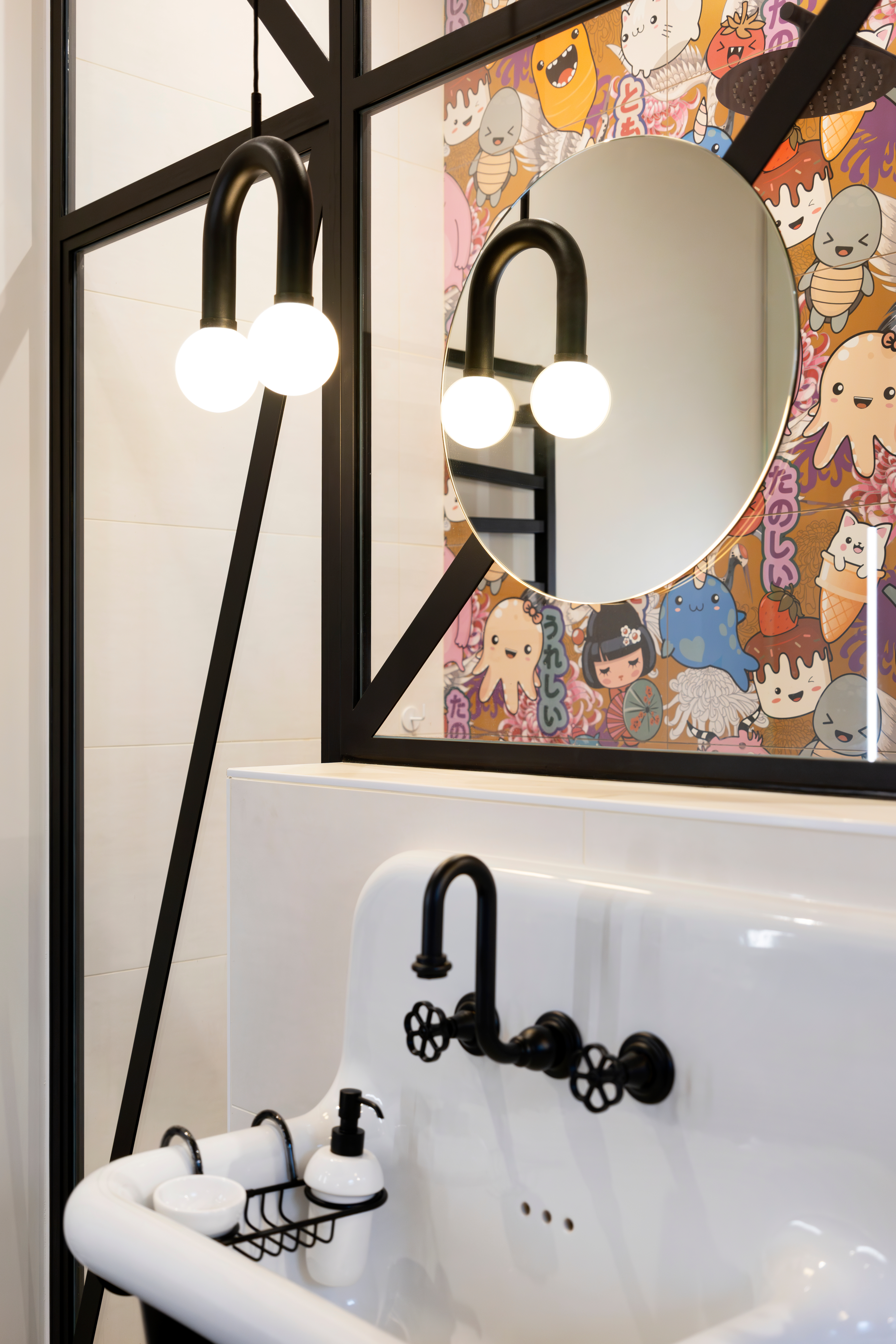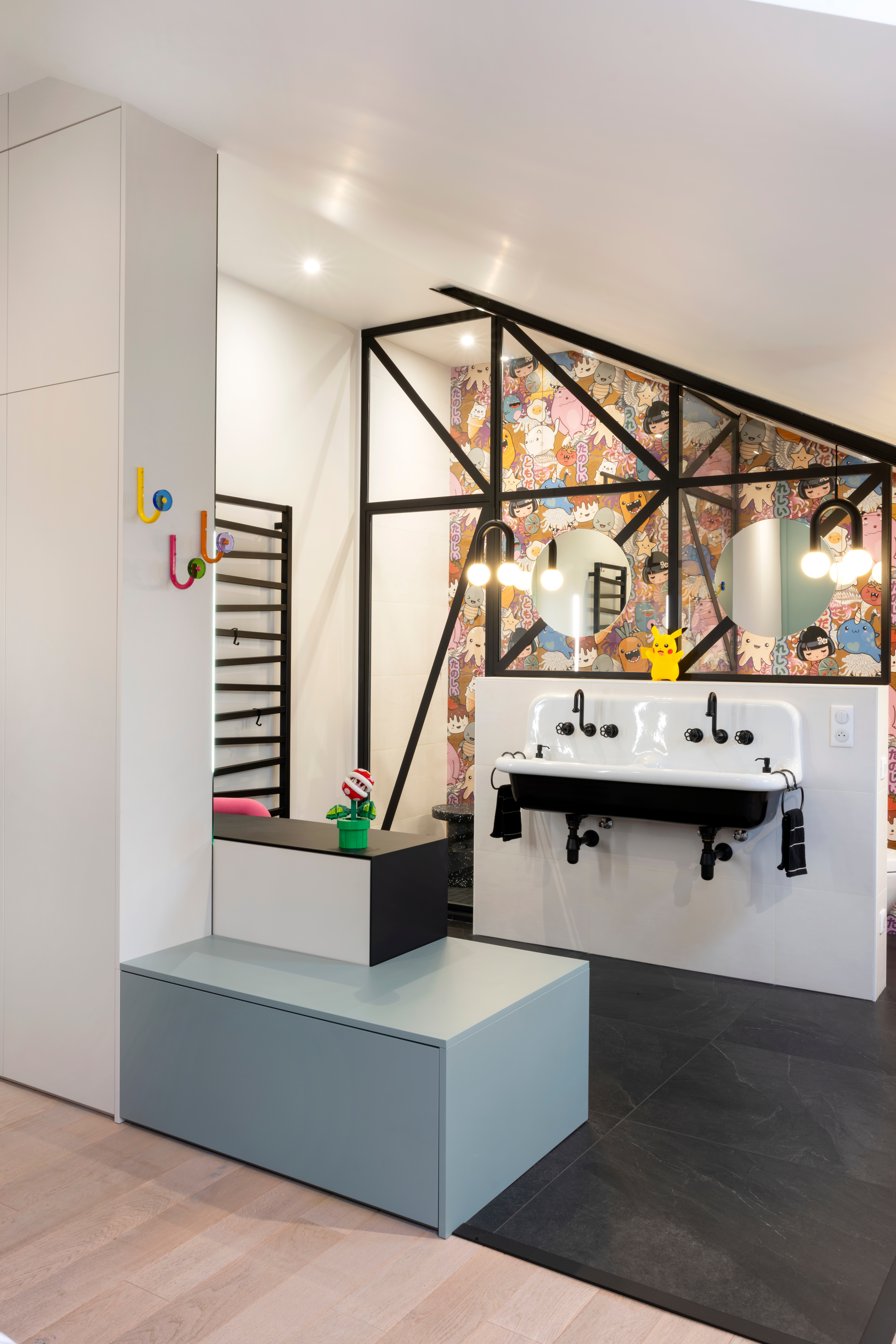 In questo progetto audace e giocoso, l’architetto Maud Pierrot ha creato una suite padronale unica, dove creatività e originalità si fondono. La collezione di piastrelle Kawaii di Novoceram veste la zona bagno con un tocco di allegria colorata, ispirata al mondo pop giapponese. Questo decoro vivace, abbinato a un’elegante palette monocromatica e a moderni elementi geometrici, porta una ventata di freschezza pur mantenendo un’estetica pulita. Questo progetto dimostra la capacità dell’architetto di progettare spazi che riflettono la personalità di chi li abita.