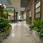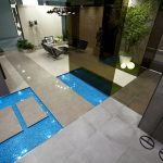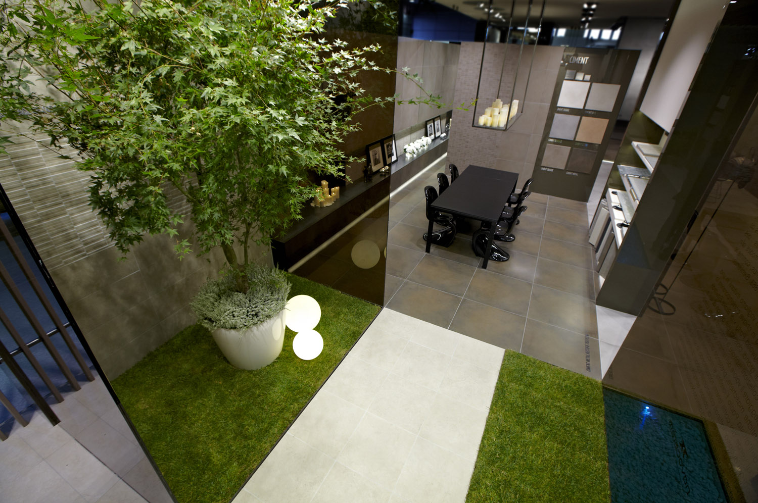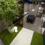 Il giardino interno, un angolo di verde che conduce al box Ciment.