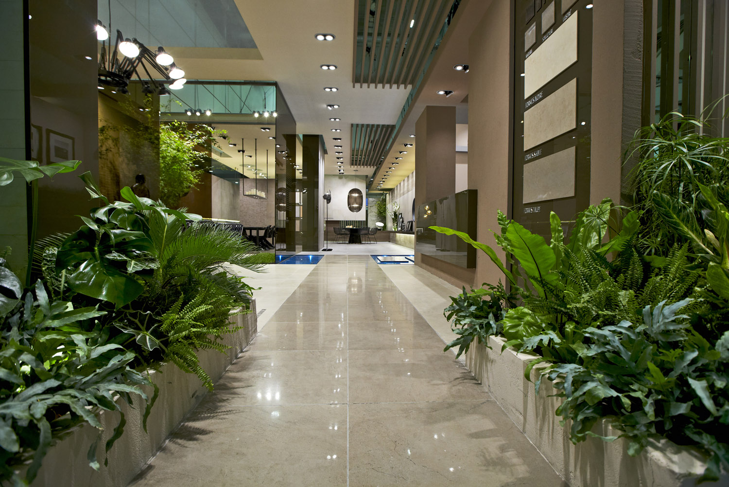 Formes Taupe Lustré forma una scintillante passerella d’ingresso allo stand.