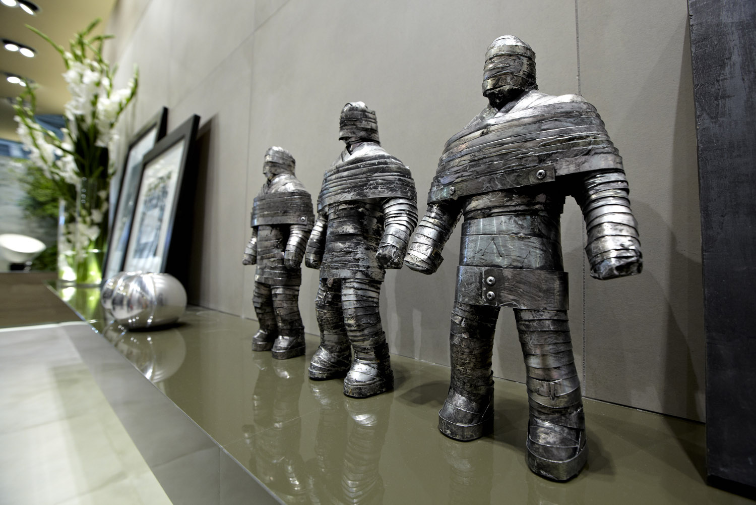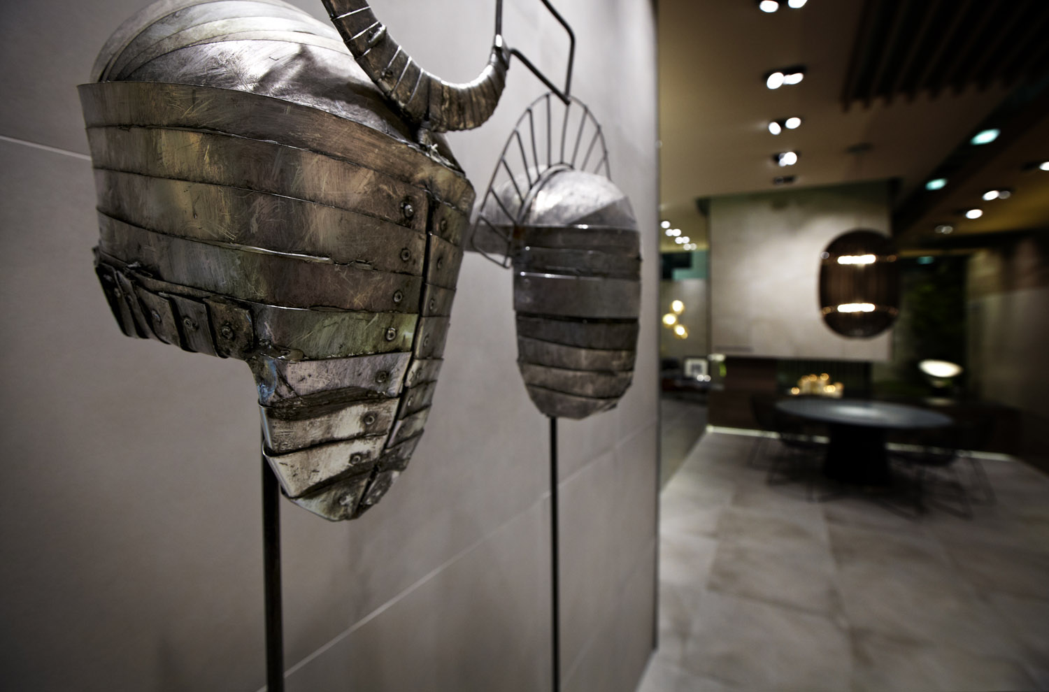 Antiche maschere da guerra, presenze arcane e armature visionarie di Paolo Fiorellini si rincorrono nelle stanze della villa Novoceram.